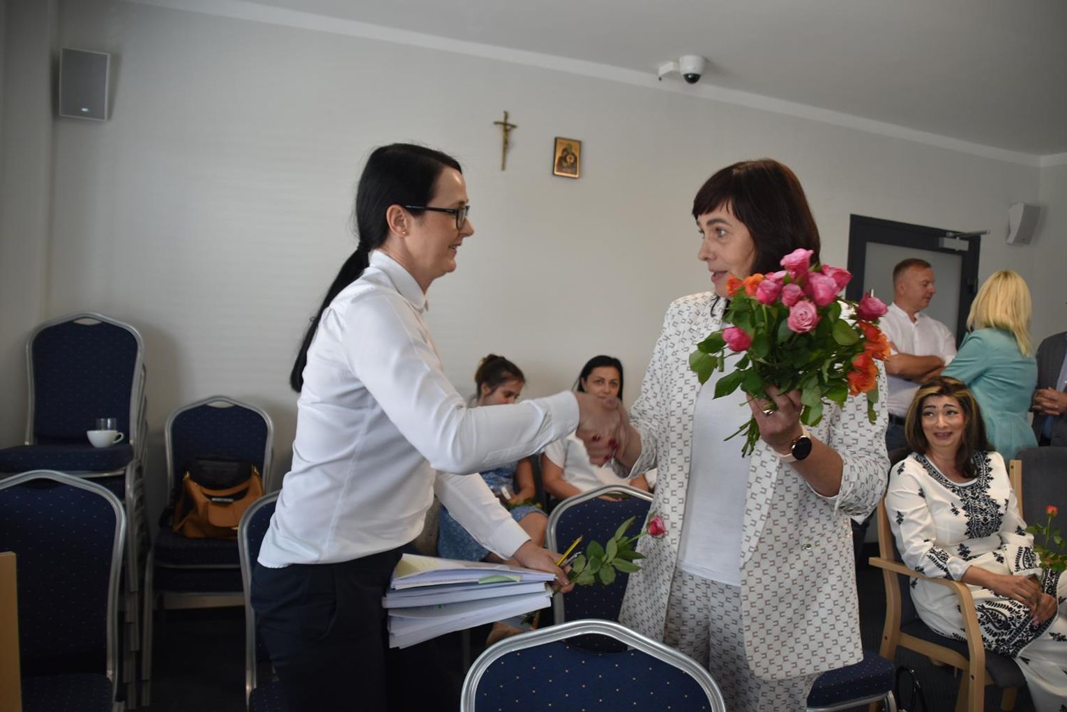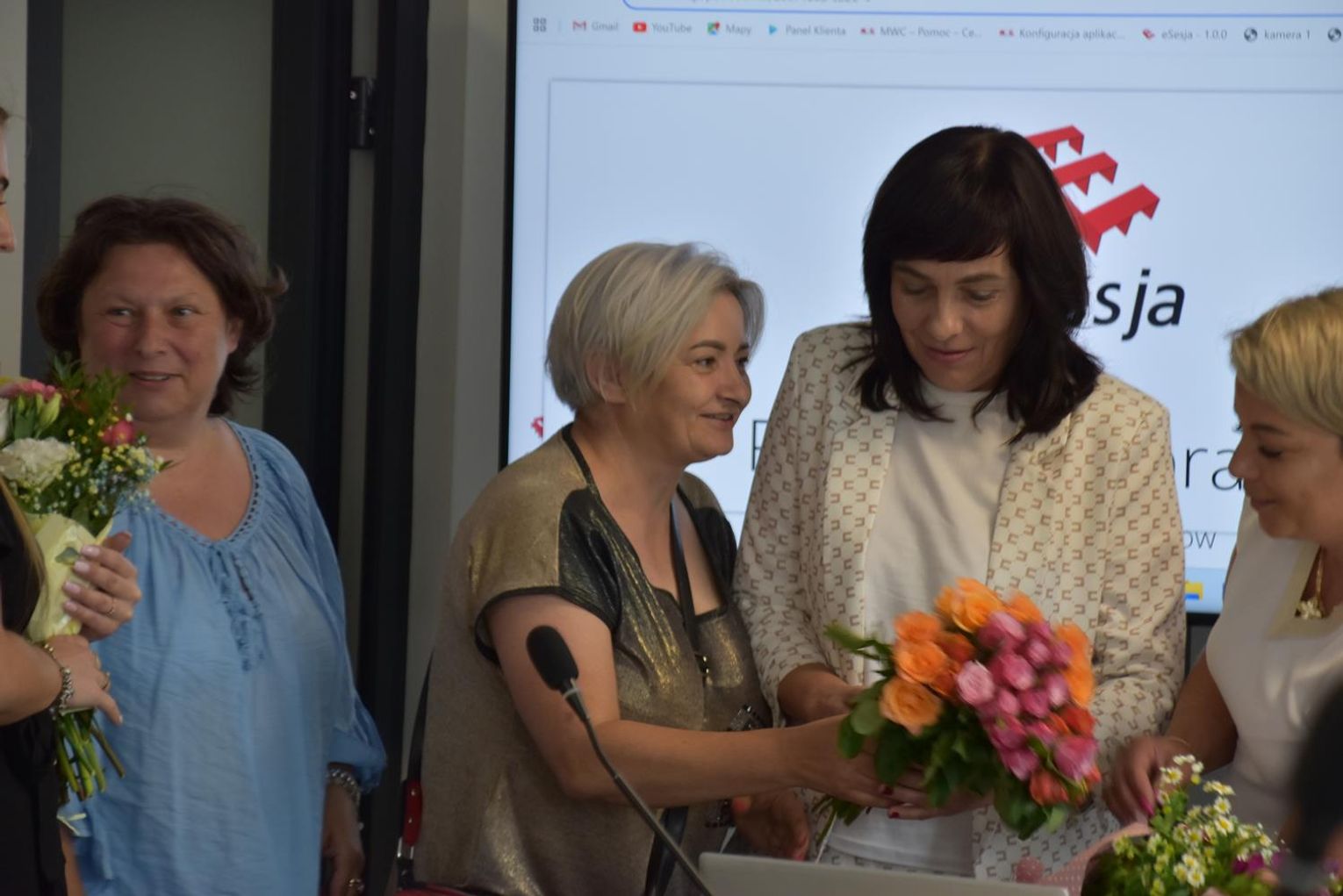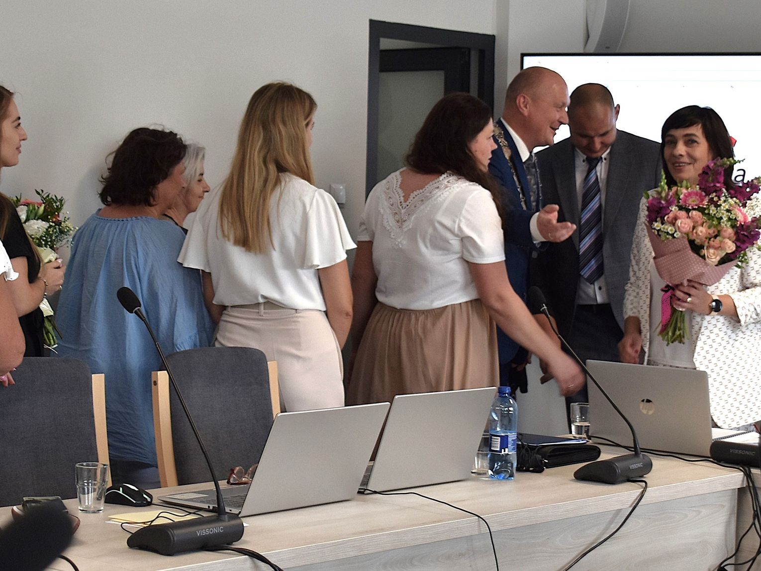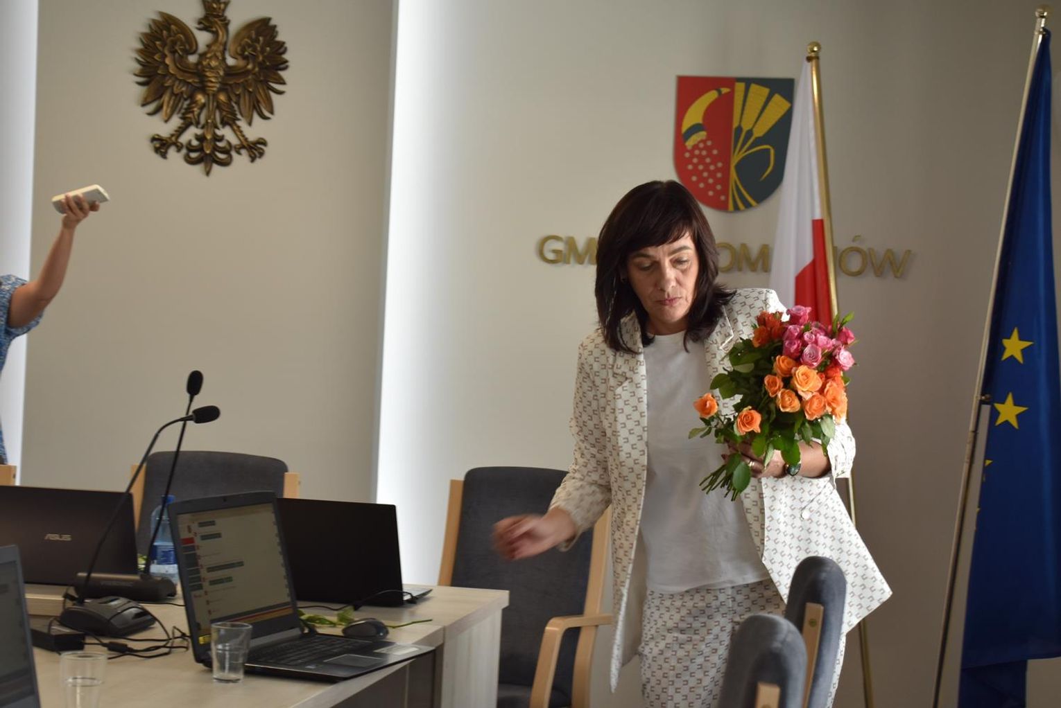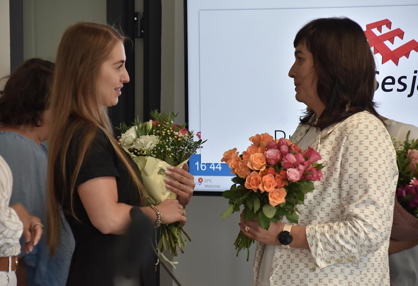 Po sesji radni, ale też kierownicy niektórych jednostek oraz sołtysi podeszli do wójt, by jej pogratulować. Ta natomiast podzieliła się kwiatami, które otrzymała z radnymi oraz obecnymi na sali, w tym z byłem wójtem gminy Wojciechem Głogulskim. Powtarzała, że "to kwiaty dla nas, a nie dla mnie, tak jak absolutorium".