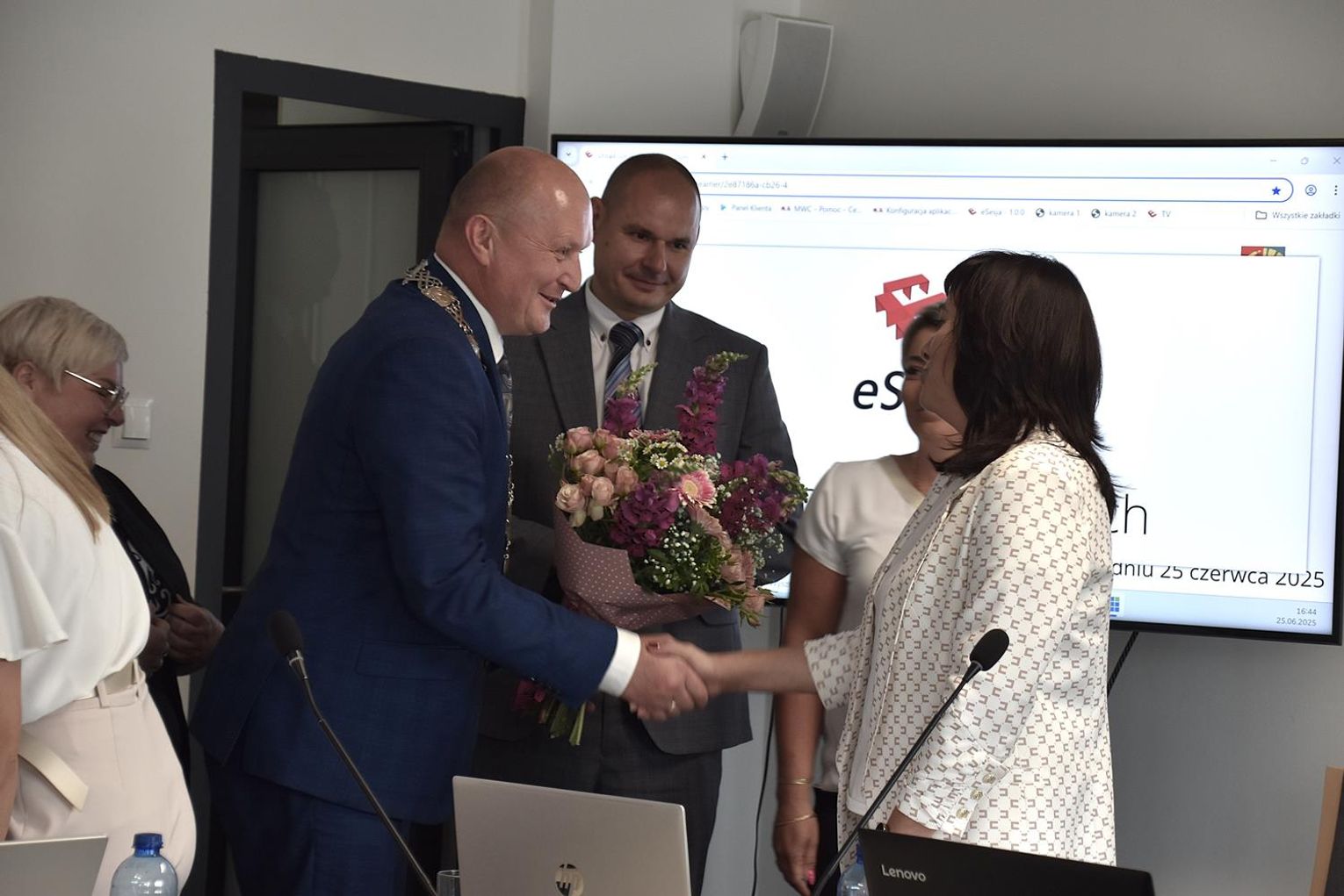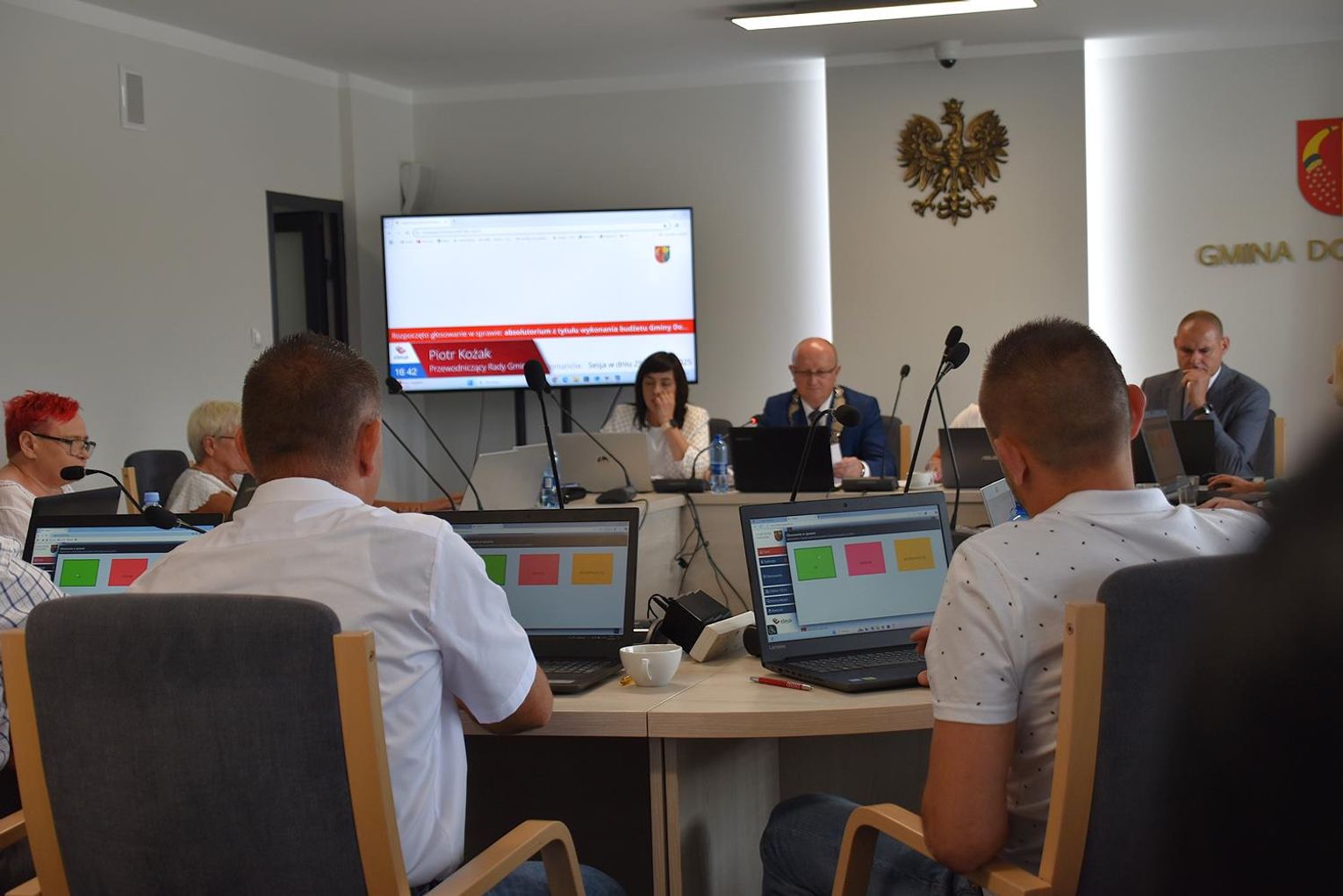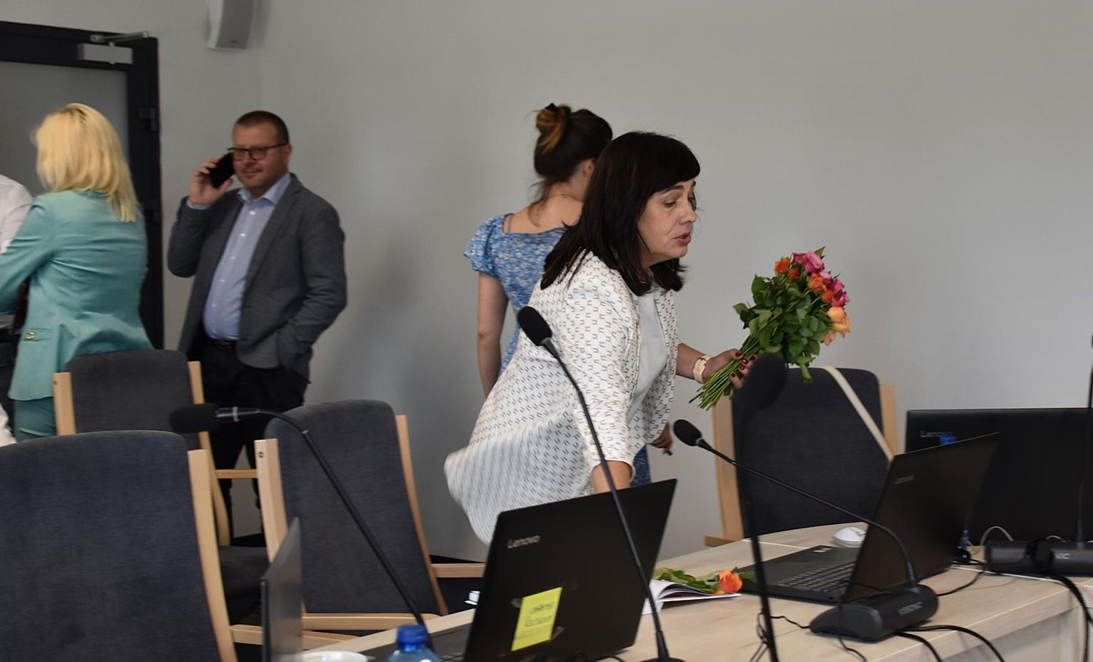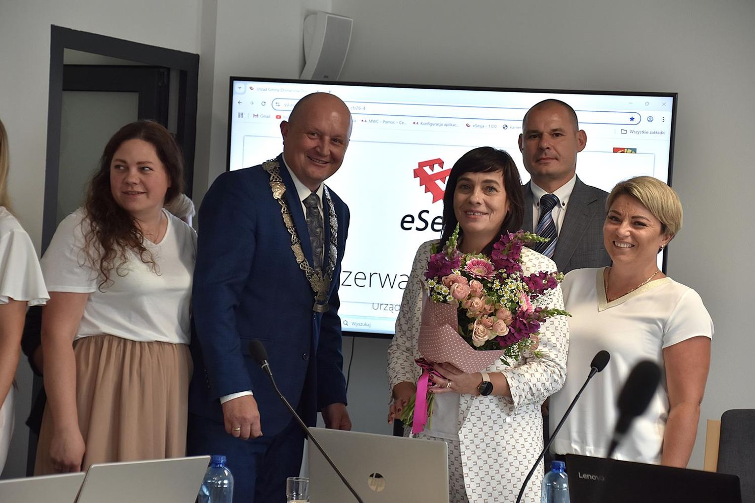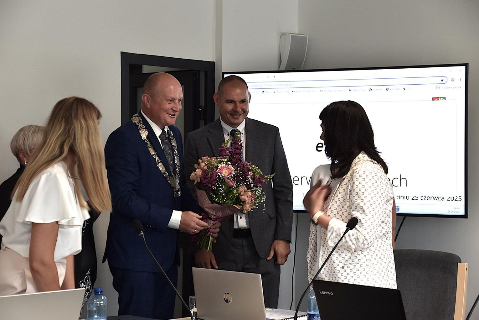 Po sesji radni, ale też kierownicy niektórych jednostek oraz sołtysi podeszli do wójt, by jej pogratulować. Ta natomiast podzieliła się kwiatami, które otrzymała z radnymi oraz obecnymi na sali, w tym z byłem wójtem gminy Wojciechem Głogulskim. Powtarzała, że "to kwiaty dla nas, a nie dla mnie, tak jak absolutorium".