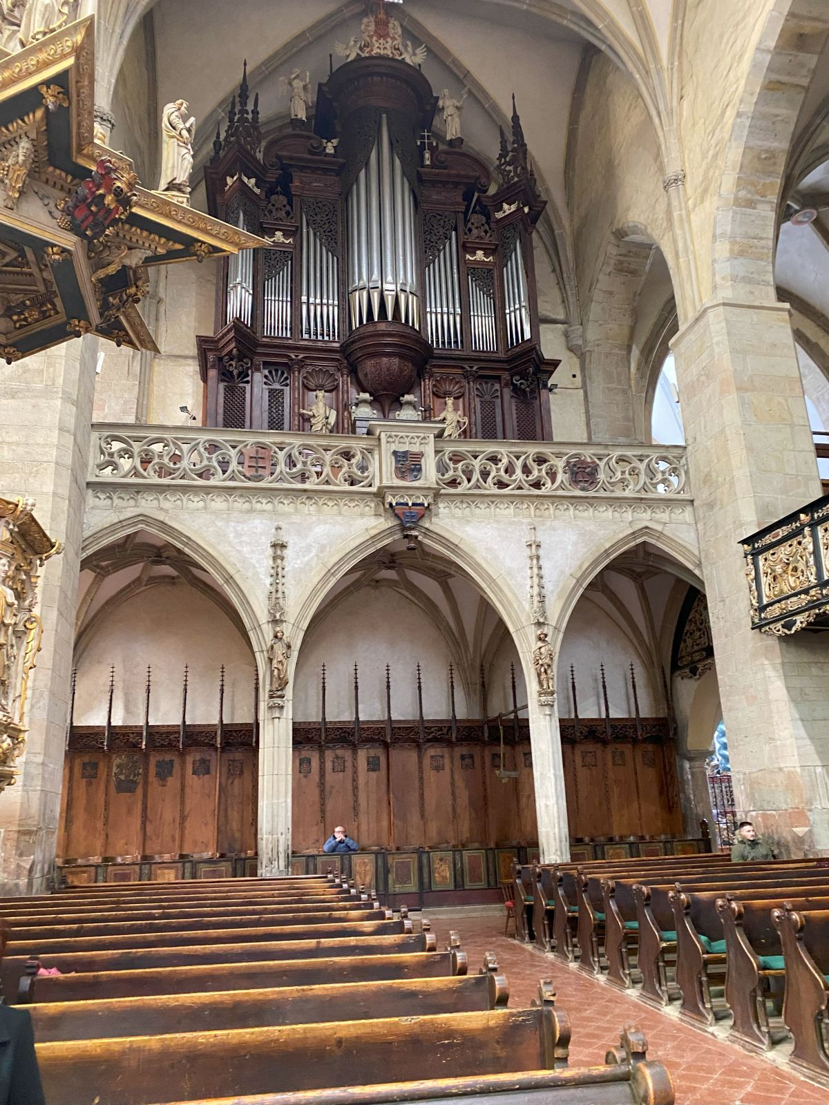 Gotycki kościół farny pw. świętego Jakuba w centrum rynku. Trójnawowy. Po katedrze koszyckiej jest to drugi co do wielkości kościół gotycki na Słowacji (dł. 49,5 m, szer. 27,4 m, wys. wieży 60,7 m). Wewnątrz znajduje się siedem ołtarzy szafowych.