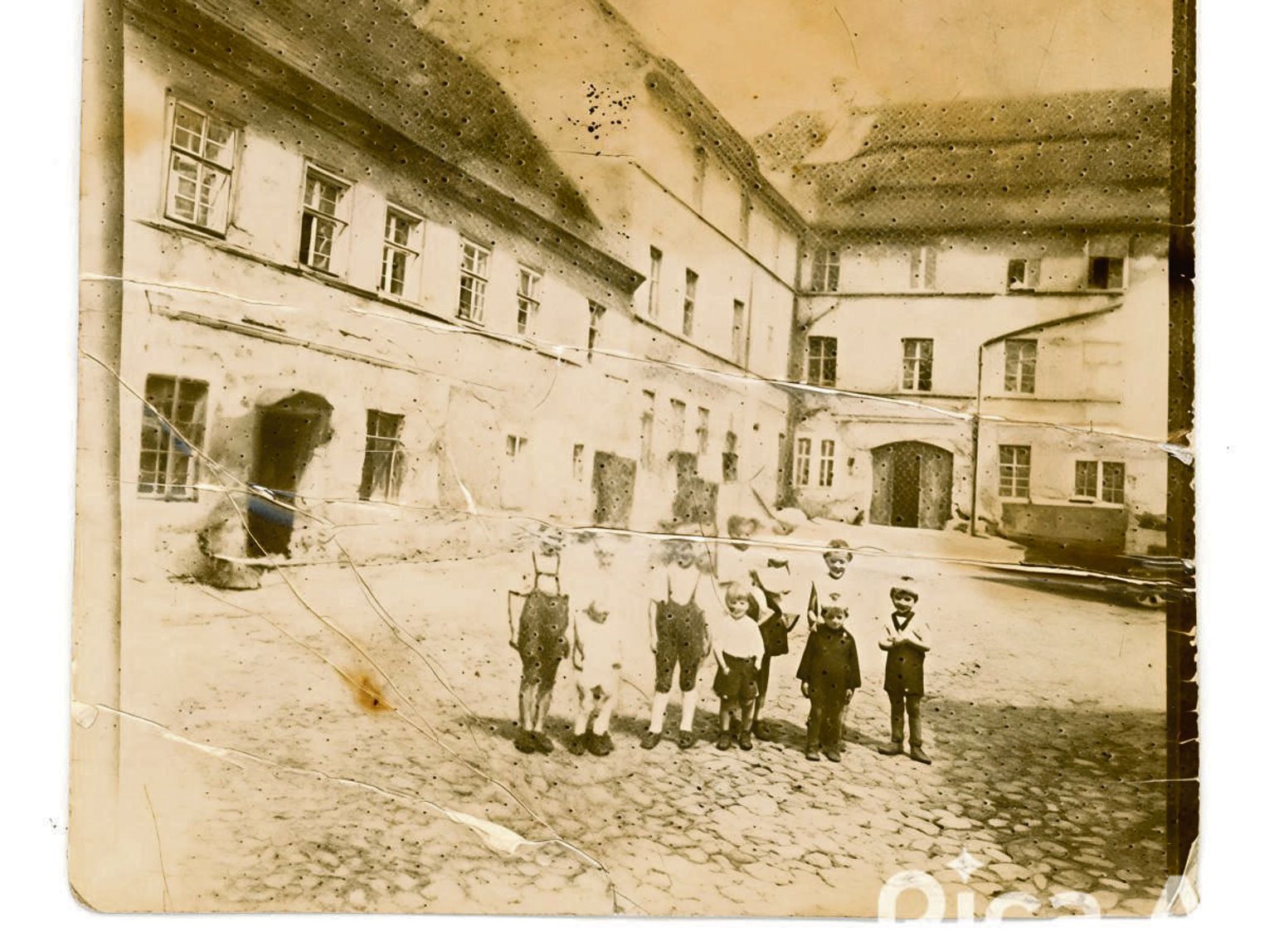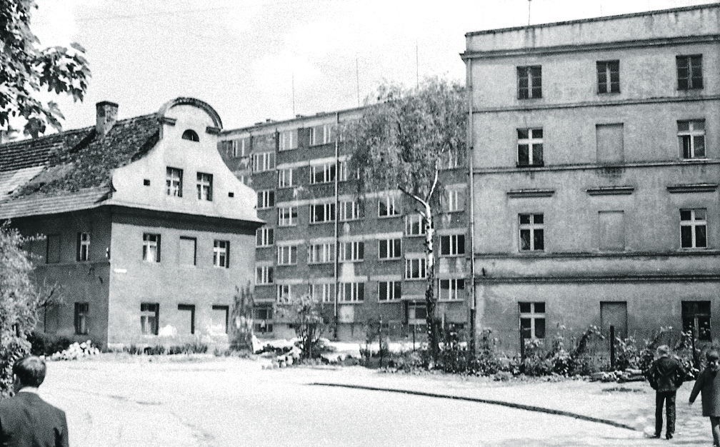 Zdjęcie 4 zrobiłem w 2025 roku mniej więcej w miejscu, gdzie zostało zrobione zdjęcie nr 1. Po lewej nie ma jednego budynku mieszkalnego, który był na zdjęciu nr 1 - dzięki temu widać budynek z podcieniami, w którym mieści się dziś Przychodnia Rodzinna.