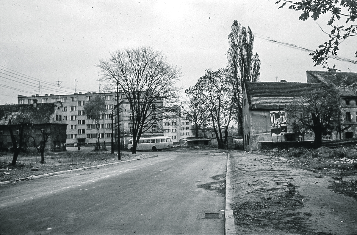 Zdjęcie nr 3 zrobiłem w 1972 - to też ulica Lumumby (wcześniej Ogrodowa) już po remoncie. Tu była nawierzchnia z kostki brukowej - na zdjęciu mamy szeroki pas asfaltu. Stare budynki mieszkalne widoczne na zdjęciu dziś już nie istnieją. W głębi widać 3 bloki mieszkalne przy ulicy 11 Listopada. Na zakręcie stoi autobus jelcz powszechnie znany jako "Ogórek" .