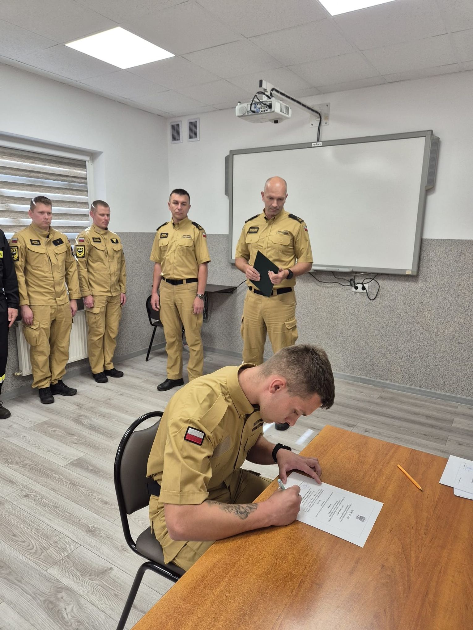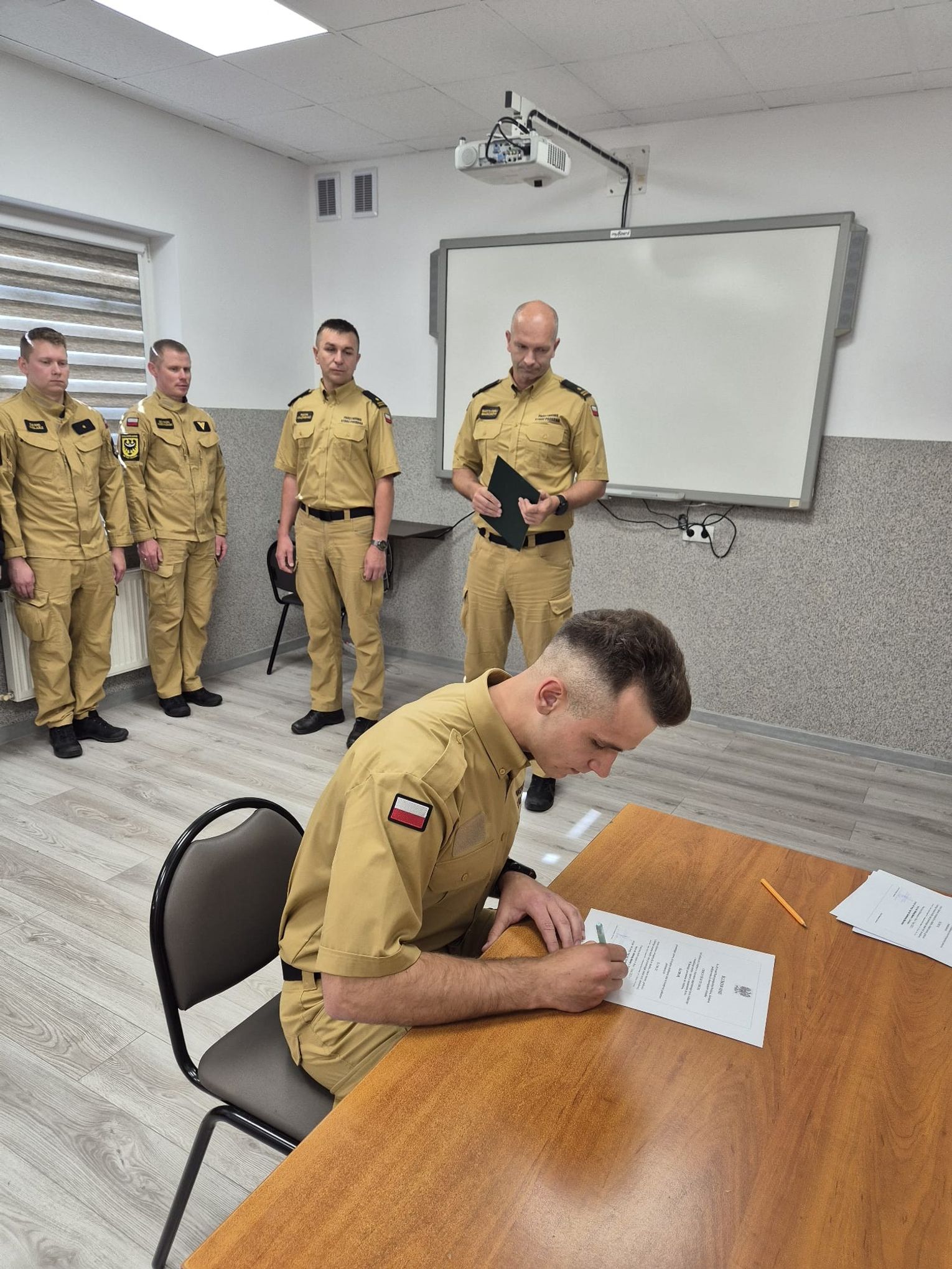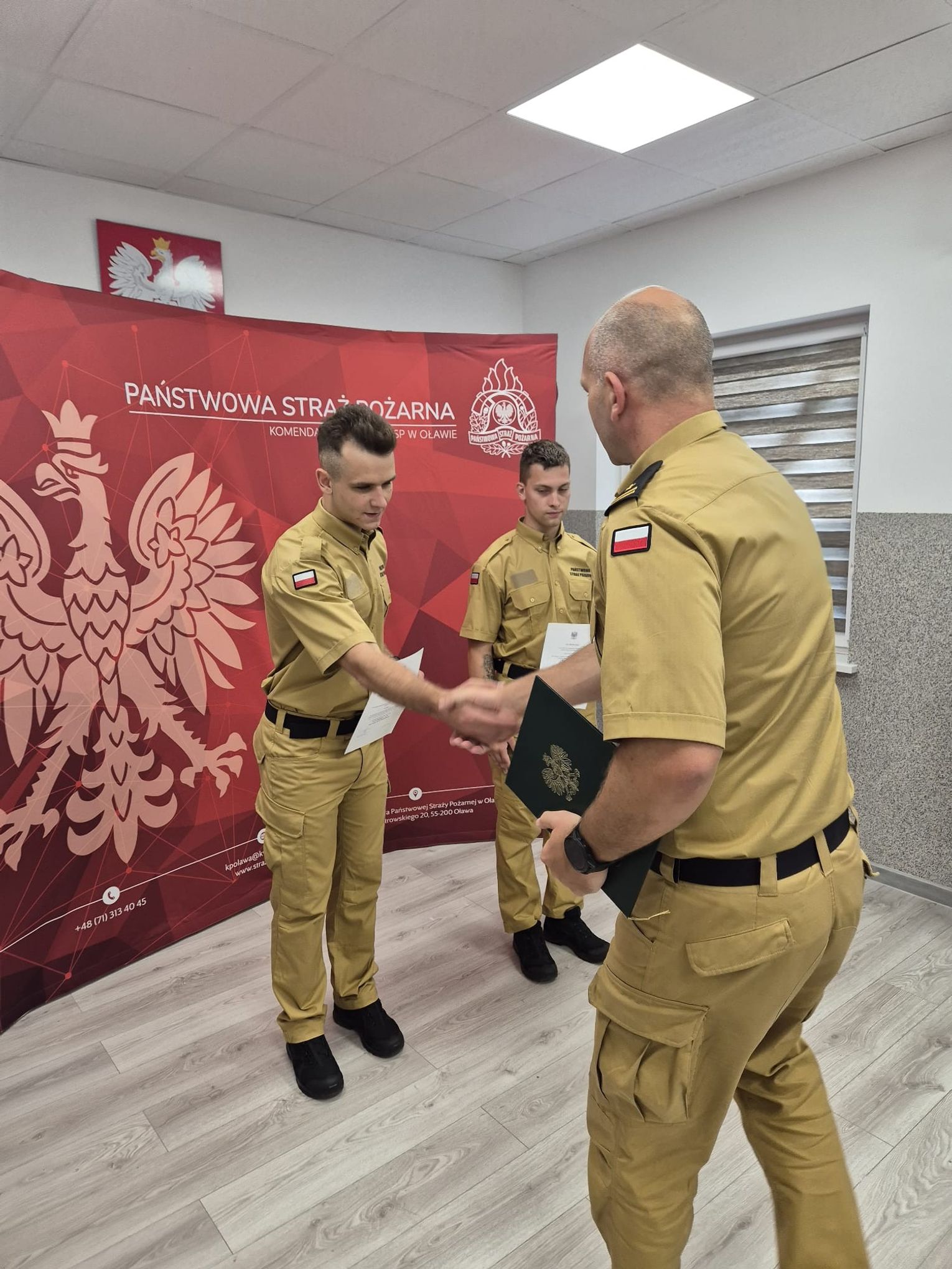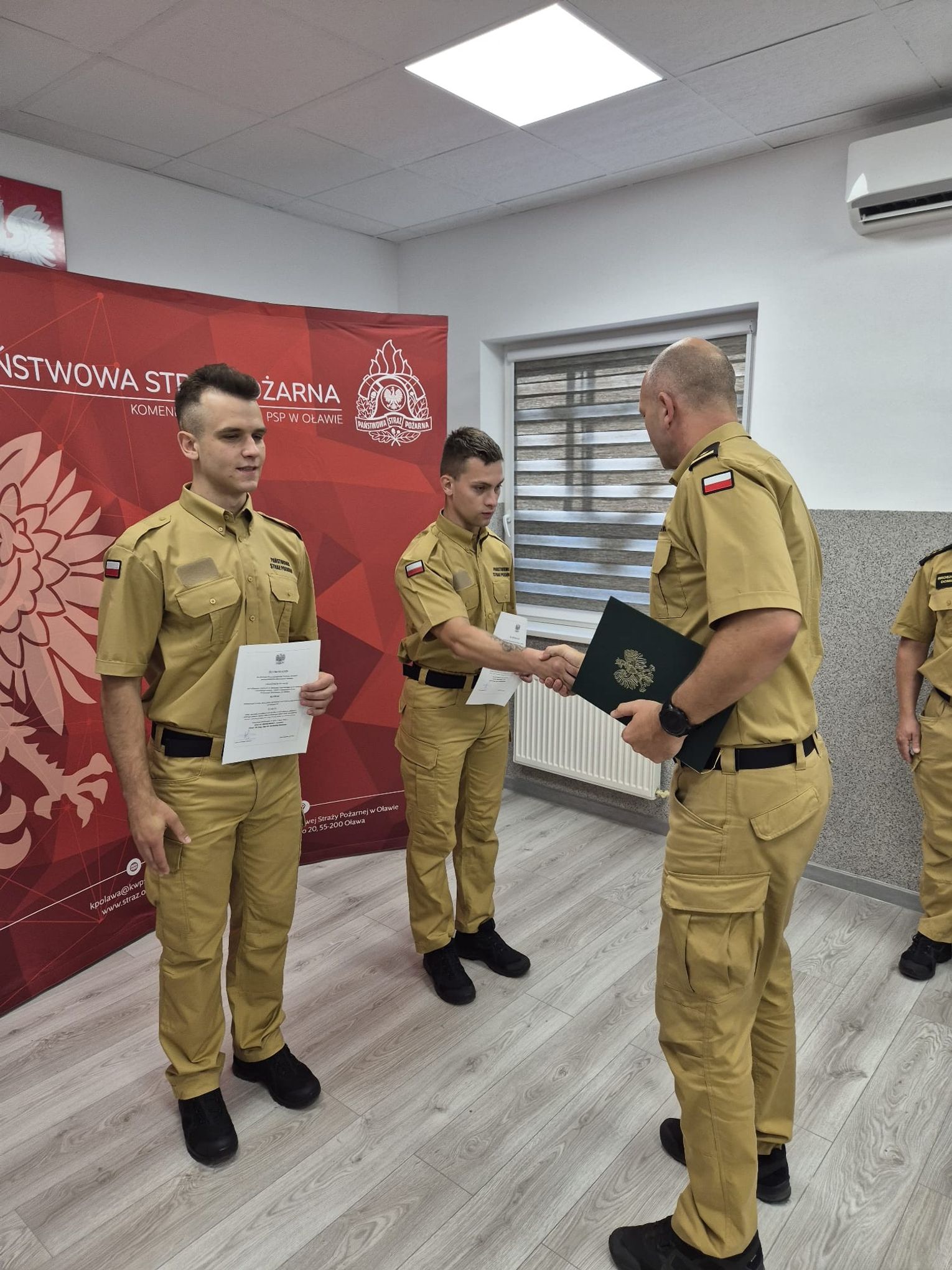 Uroczystość odbyła się w obecności kierownictwa JRG Oława oraz funkcjonariuszy pierwszej zmiany służbowej. Ślubowanie przyjął Komendant Powiatowy PSP w Oławie mł. bryg. mgr inż. Bartłomiej Marcinów.