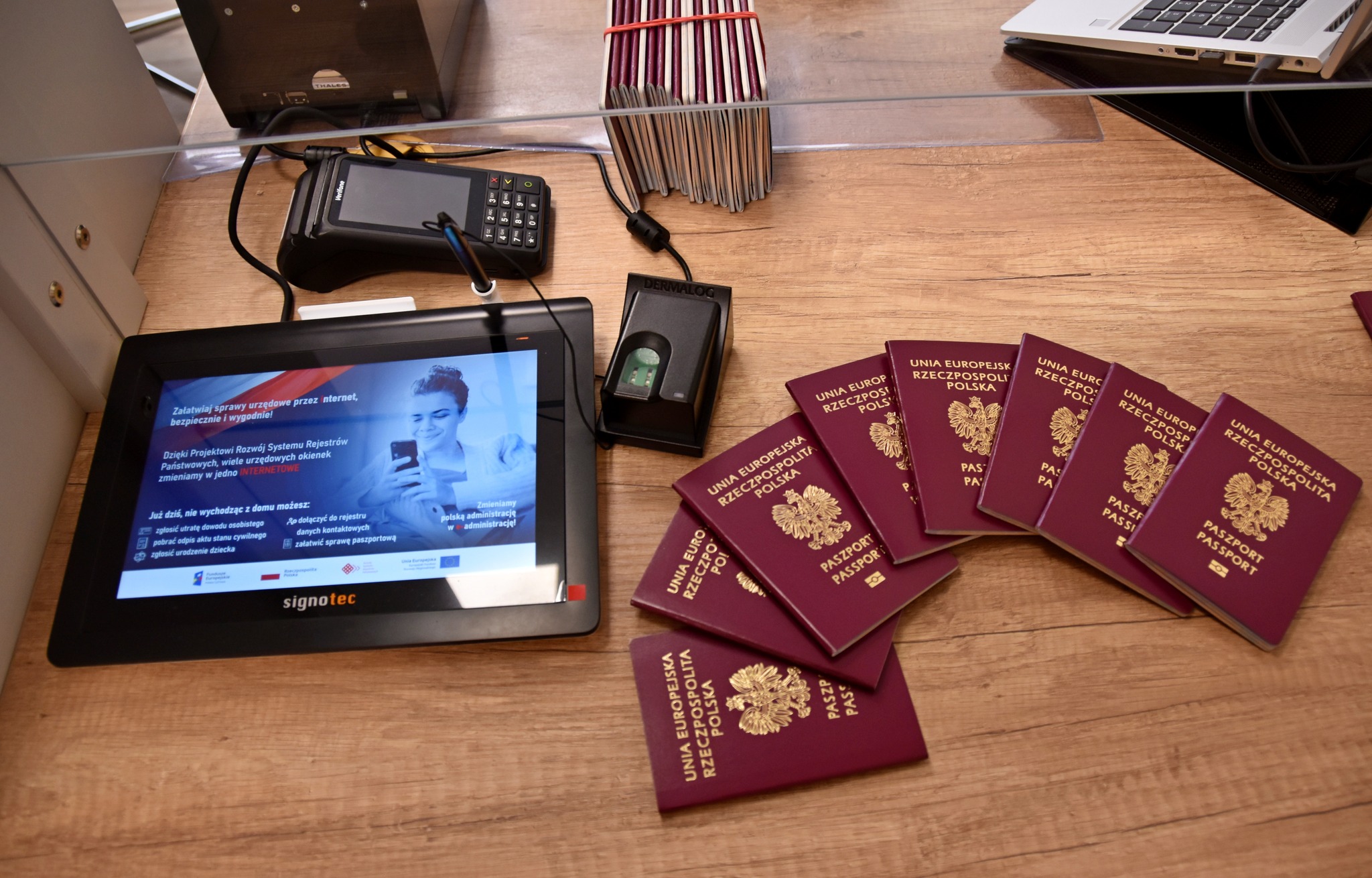 Do oławskiego starostwa trafiła pierwsza partia licząca około 150 paszportów. Łącznie do dzisiaj w nowym punkcie paszportowym złożono już ponad 300 wniosków. Kolejni klienci naszego urzędu otrzymują SMS-y z powiadomieniem o możliwości odbioru gotowych paszportów.