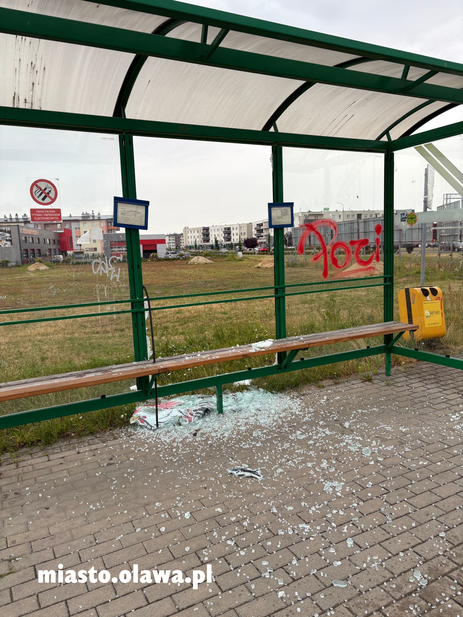 Tym razem zdewastowana została wiata na przystanku przed rondem (wyjazd na Wrocław). Sprawca miał szansę na uniknięcie odpowiedzialności karnej, gdyby pokrył koszty naprawy zniszczonego mienia. Miał