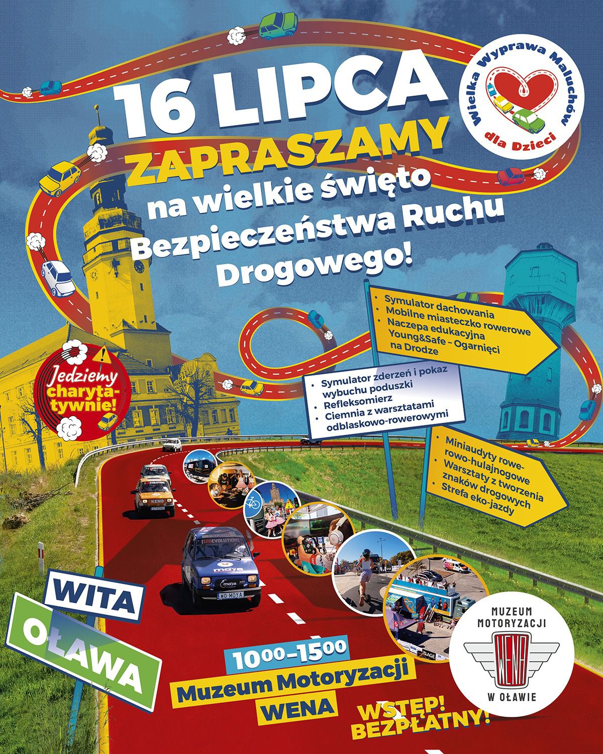 W środę 16 lipca do Oławy przyjedzie Wielka Wyprawa Maluchów dla Dzieci, a wraz z nią strefa bezpieczeństwa w ruchu drogowym. Odbywać się w niej będą liczne warsztaty poświęcone chociażby odblaskom rowerowym, czy działaniom poduszek powietrznych. Będą również warsztaty w symulatorach wypadku samochodowego, czy dachowania, a także wykłady z przepisów, kończące się testem dla uczestników.