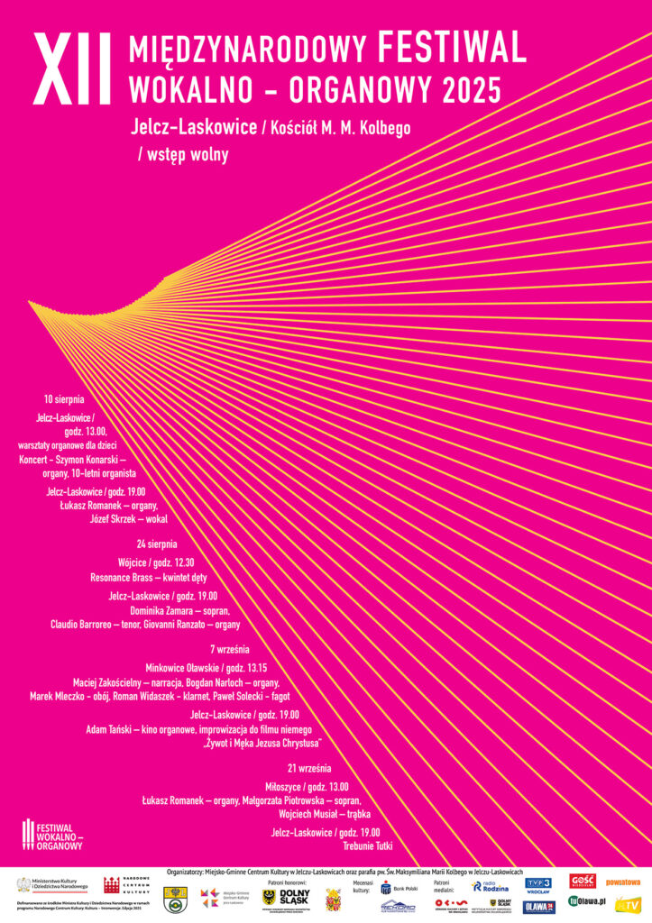 Wśród zaproszonych artystów są m.in. sopranistka Dominika Zamara, tenor Claudio Barroreo, wybitni instrumentaliści z Trio Stroikowego, a także legendarny Józef Skrzek i zespół Trebunie-Tutki. Nie lada gratką będzie dla publiczności popularny aktor Maciej Zakościelny, który przeczyta bajki ks. Mieczysława Malińskiego, będącymi opowieściami z morałem. W programie także kino organowe, koncert najmłodszego organisty w Polsce-Szymona Konarskiego, warsztaty dla dzieci. Szczegółowy program znajdą Państwo TU: