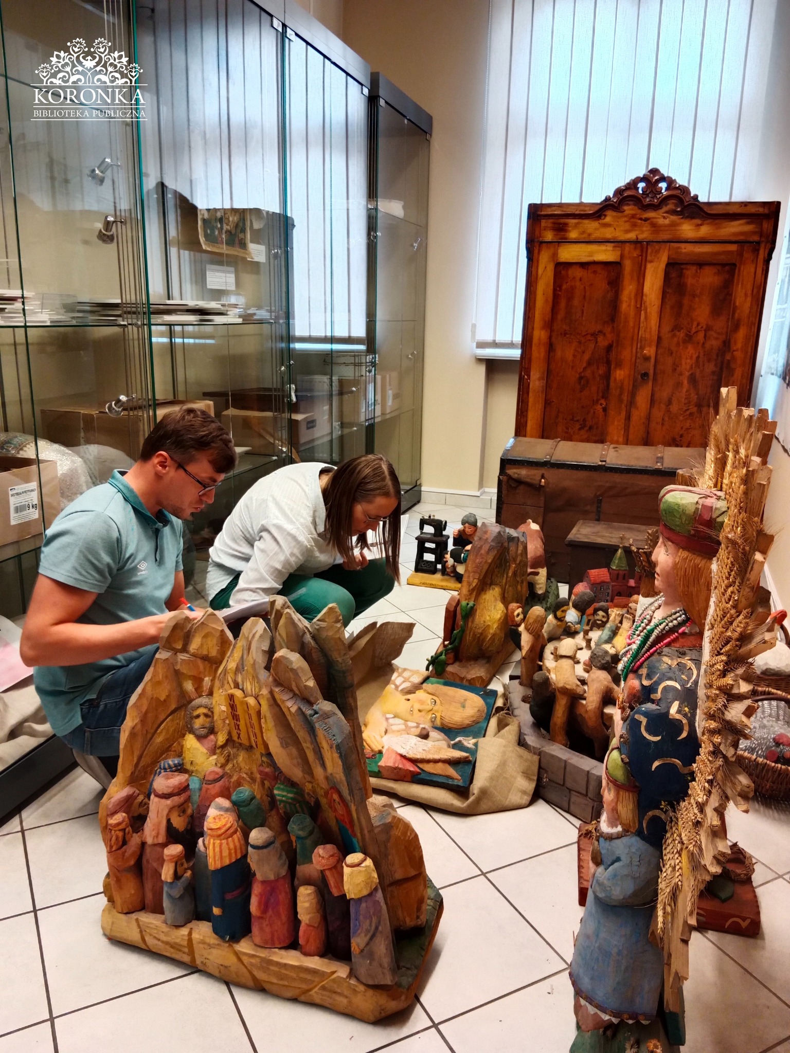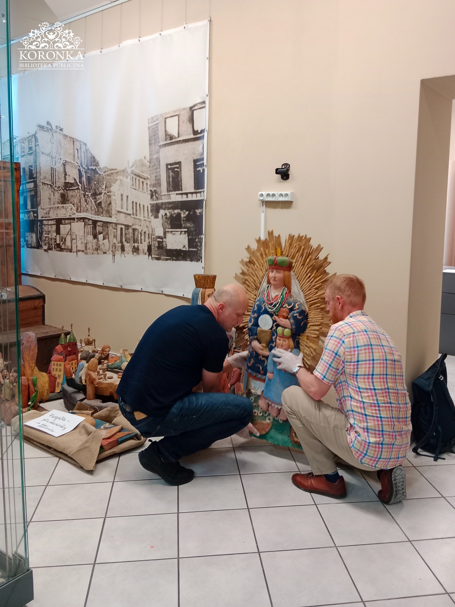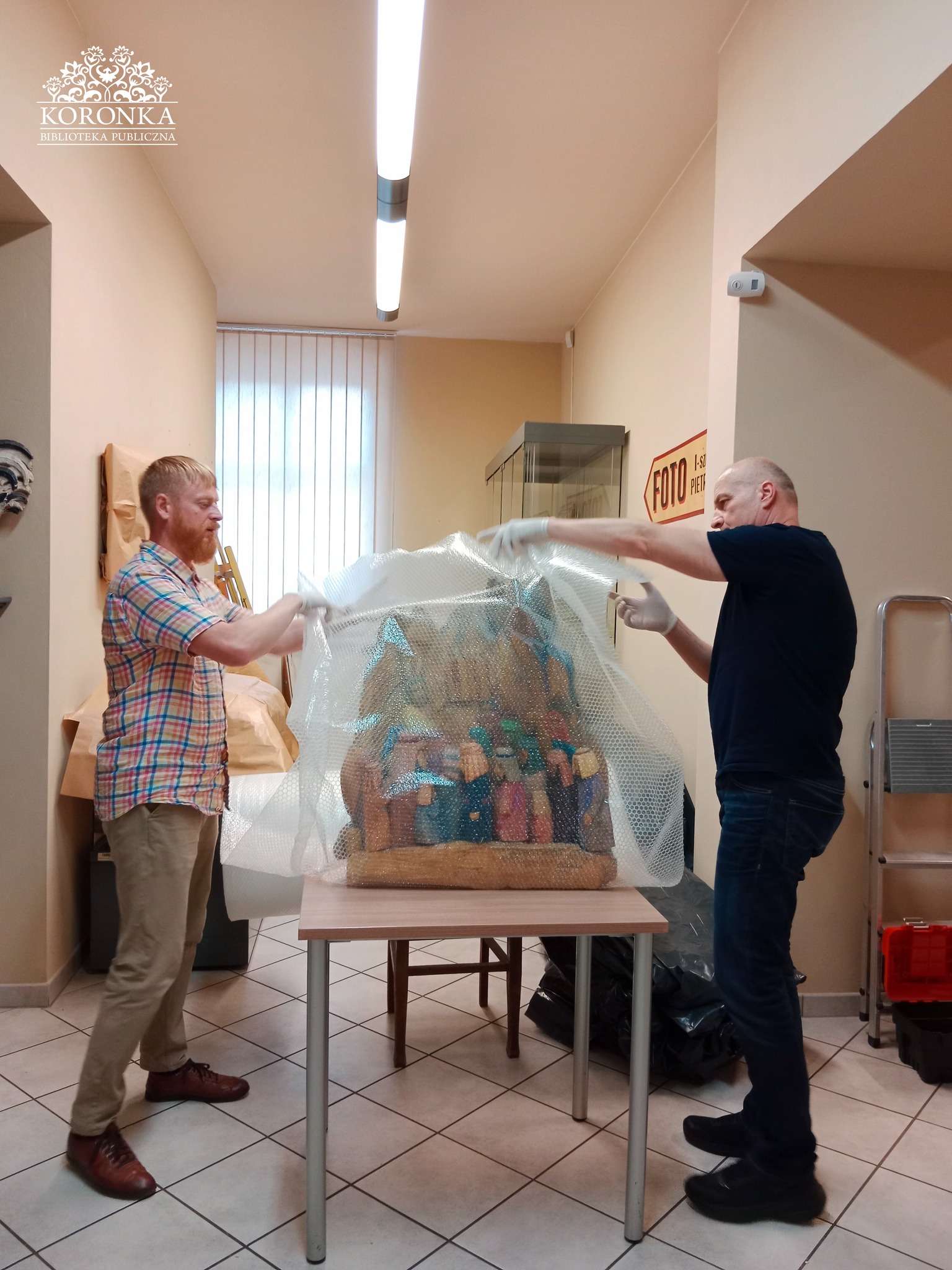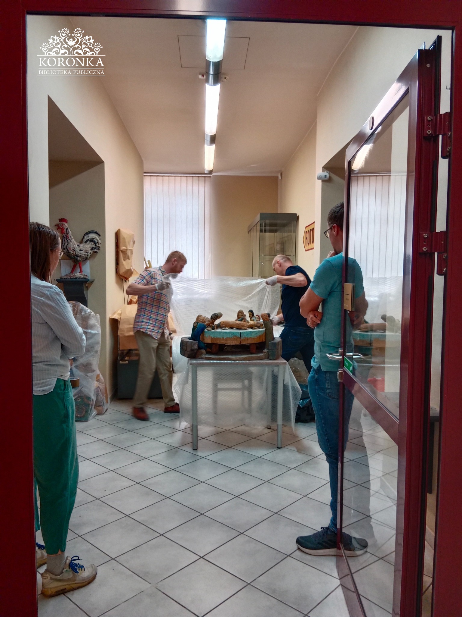 Na zdjęciach niże możecie zobaczyć kulisy przygotowań - zabezpieczanie obiektów do transportu, którym zajęli się specjaliści z Muzeum Narodowe we Wrocławiu. Wśród wypożyczonych prac znalazły się m.in.: Królowa żniwiarzy, Królowa urodzaju, Maszyna do szycia „Singer”, Mojżesz z dekalogiem, Rzeź Pragi, Turoń i Rzeczywiście pachnie.