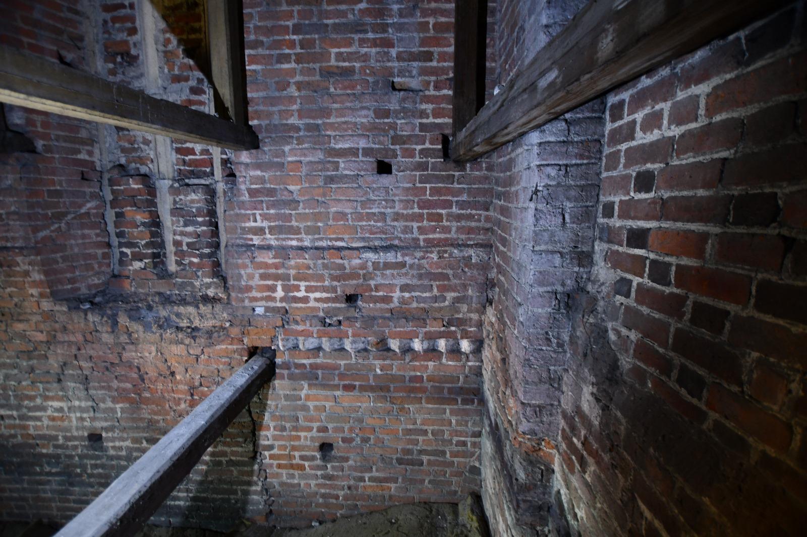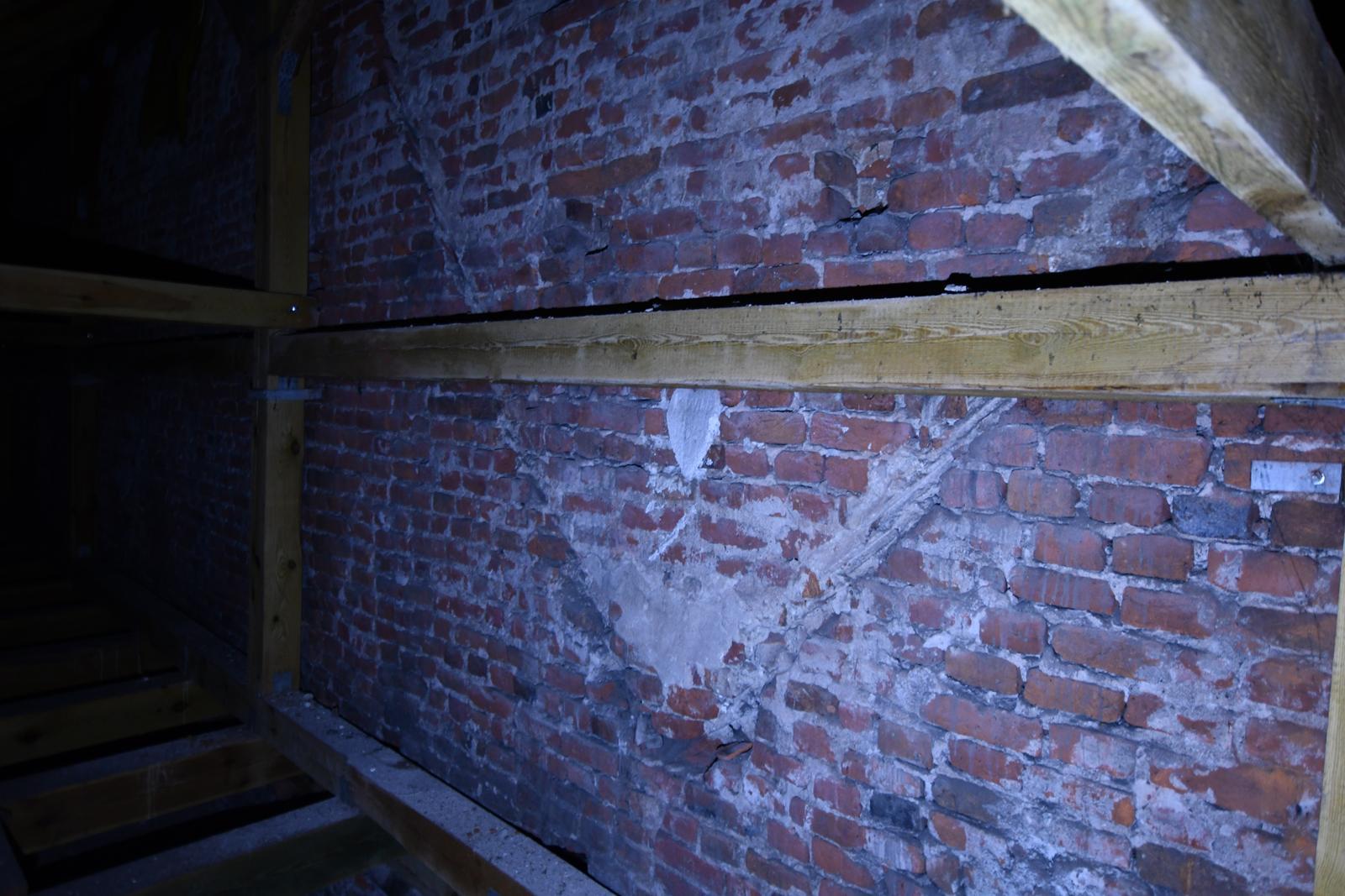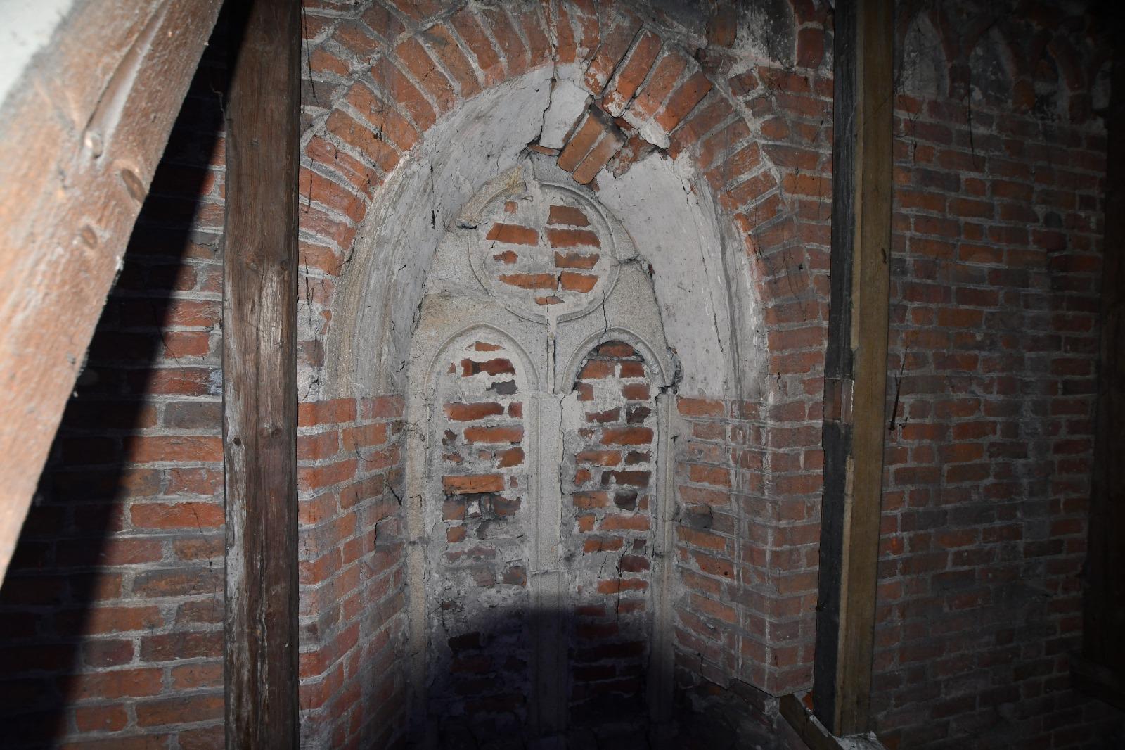 Zamurowane okno prezbiterium, widok z poddasza zakrystii