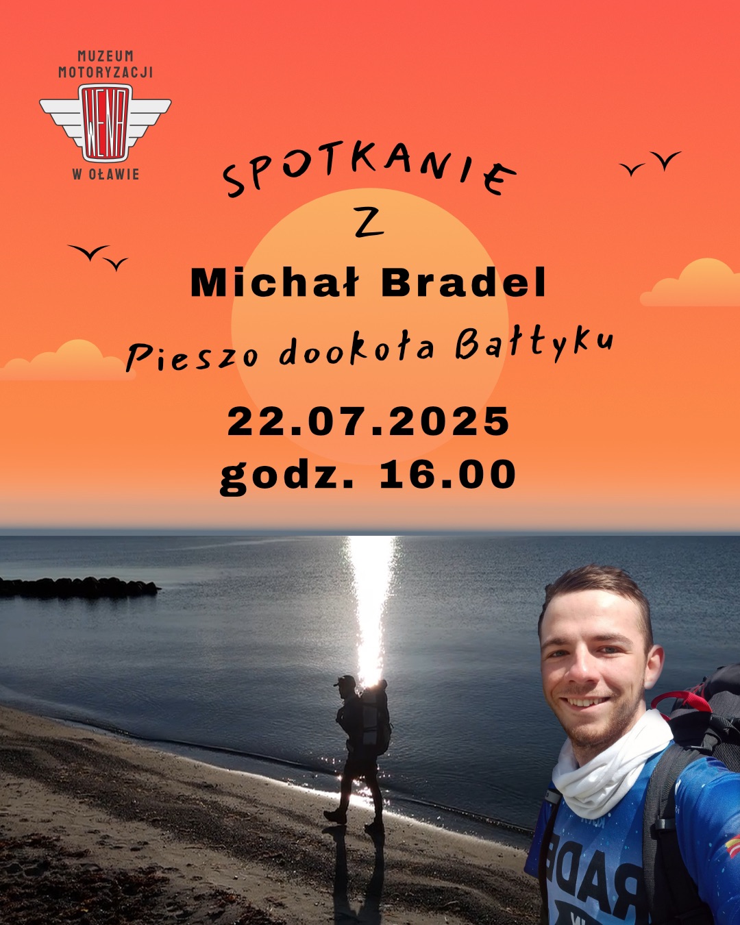 Motoryzacja to przemieszczanie się, to podróżowanie. Nic więc dziwnego, że właśnie w Muzeum Motoryzacji odbędzie się wyjątkowe spotkanie z wyjątkowym człowiekiem. Oto on - Michał Bradel - który przeszedł dookoła Bałtyku