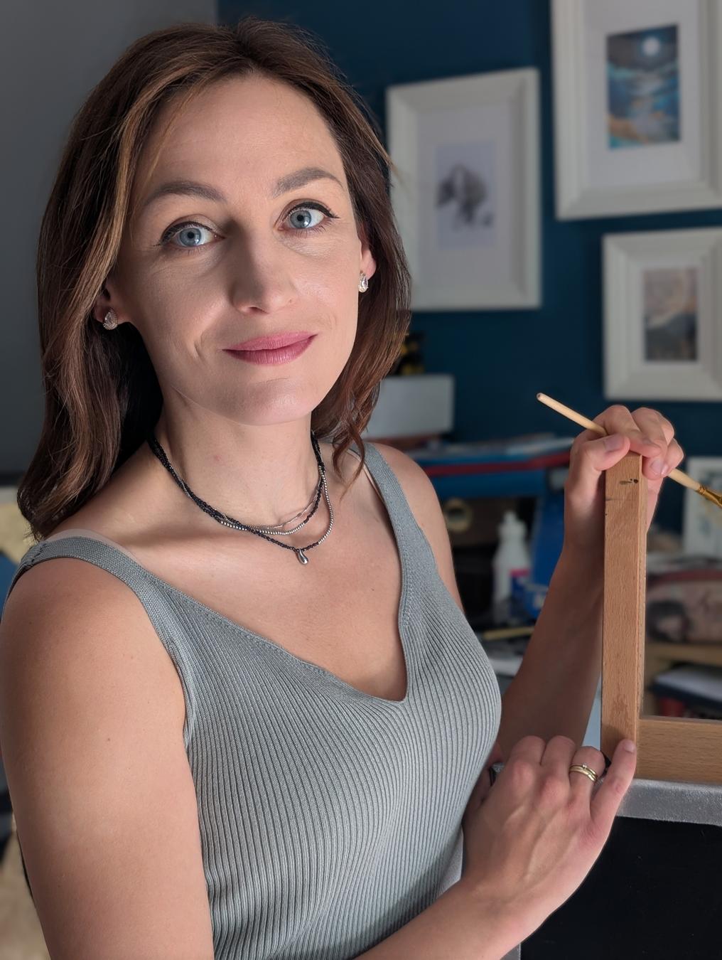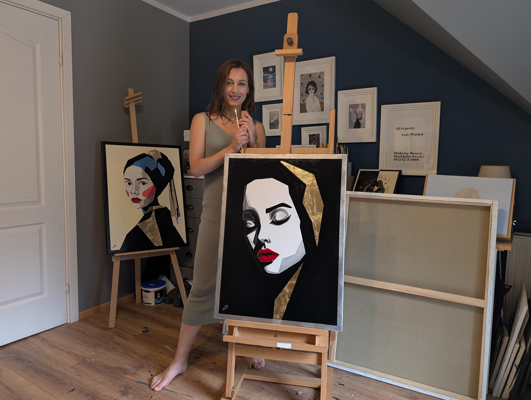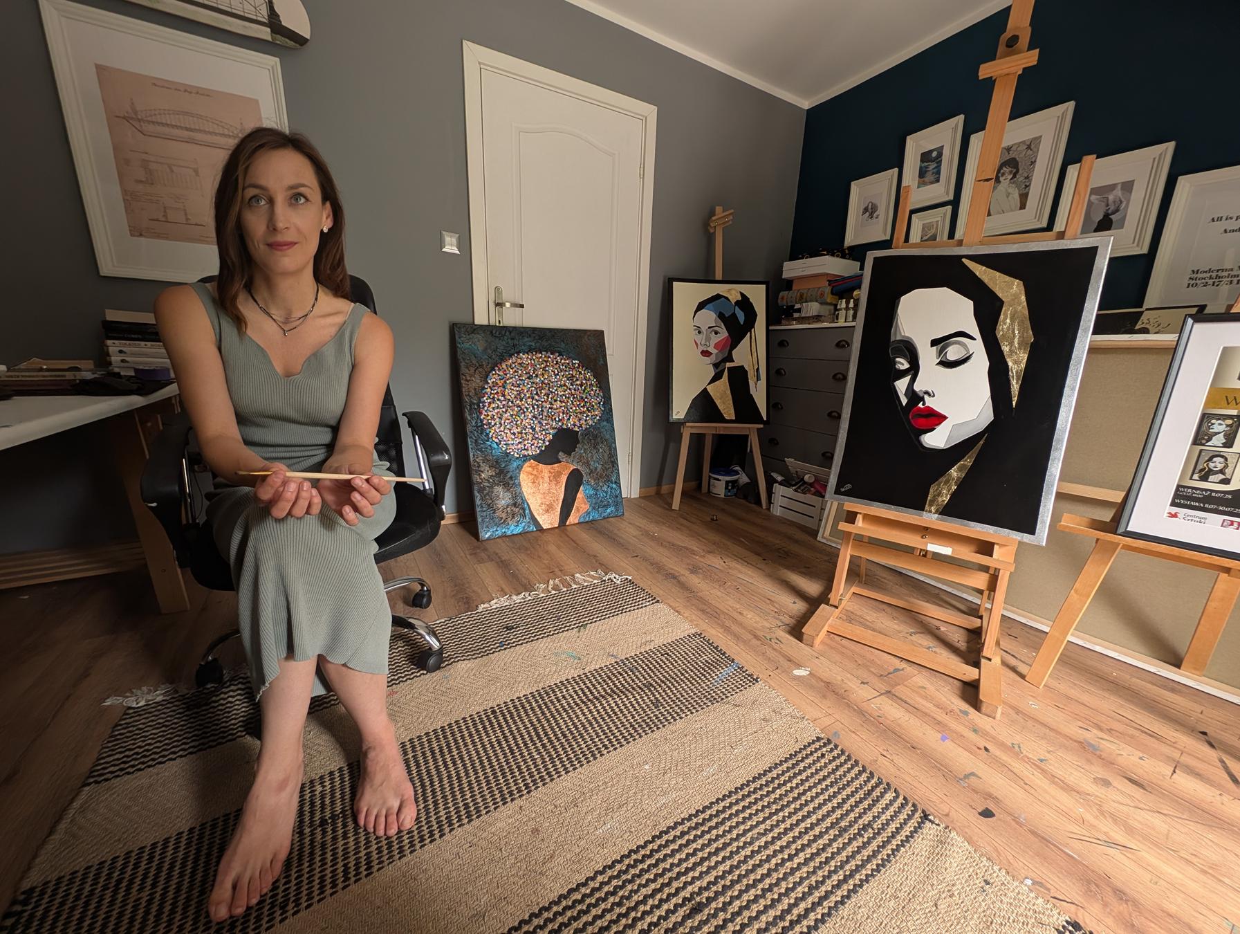 - Takie wykształcenie w ogóle w tym nie pomaga, nawet wręcz przeciwnie, w pewnym momencie zabiło moją kreatywność i wymusiło na mnie, że skupiłam się na innych rzeczach, bardziej przyziemnych. Był jednak pewien epizod ważny dla mnie artystycznie, nie tylko w kontekście malowania, ale w ogóle działalności twórczej, bo także gram na instrumentach, na pianinie i na perkusji... W pewnym momencie wyjechałam na rok na Kretę. Miałam tę możliwość, że nie musiałam tam pracować, a że nie potrafię bezczynnie siedzieć za długo, zaczęłam zbierać na plaży kamienie i na nich malować mandale. Potem poznałam grupę miejscowych artystów i to oni byli punktem zapalnym, który na nowo uruchomił drzemiące we mnie pokłady kreatywności. Obudzili we mnie ponownie to, co było, co kiedyś znałam, co czułam. Zaczęłam malować, a w międzyczasie na uniwersytecie w Salonikach zaczęłam uczyć się greki, ukończyłam też dwa kursy nurkowania, co było związane z podróżami po świecie, byłam na przykład dwa miesiące w Meksyku. Po tym roku na Krecie wróciłam do Polski i zaczęłam eksperymentować ze sztuką, nie tylko malować na płótnie, ale wykonywać różne rzeczy, np. obrazy na drewnie. Gdy udawało mi się coś stworzyć, to często lądowało potem u kogoś w domu, początkowo w formie prezentów. Z Grecji wróciłam w 2016 roku, a moja pracownia powstała w 2021. Ten moment przełomowy przyszedł bowiem dopiero parę lat później. Urodziłam w międzyczasie moją pierwszą córkę, Jaśminę, która ma teraz 5 lat. Druga - Sara – prawie 2. Gdy byłam na urlopie macierzyńskim, dostałam przypływ niesamowitej energii. Namalowałam parę obrazów, które pokazałam w social mediach, i wtedy zaraz pojawiły się osoby, które się nimi zainteresowały. To dało mi potężnego kopa, aby dalej to robić, tworzyć. Malowałam wtedy bardzo dużo. Mając pracę etatową do 16.00 i dwie córki, znajdowałam w sobie siłę, aby codziennie jeszcze malować, co się kończyło tak, że dopiero po 23.00 szłam do wanny. A tam zawsze mam najlepsze pomysły.