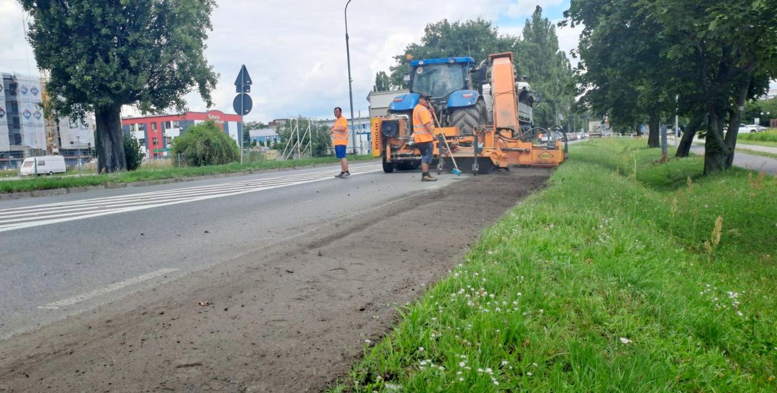 W ramach robót wykonywana jest ścinka poboczy, której celem jest przywrócenie prawidłowego przekroju drogi, poprawa odwodnienia nawierzchni oraz zwiększenie bezpieczeństwa uczestników ruchu. Tego typu działania, choć często postrzegane jako prace o charakterze porządkowym, mają istotny wpływ na trwałość jezdni oraz komfort użytkowania drogi.