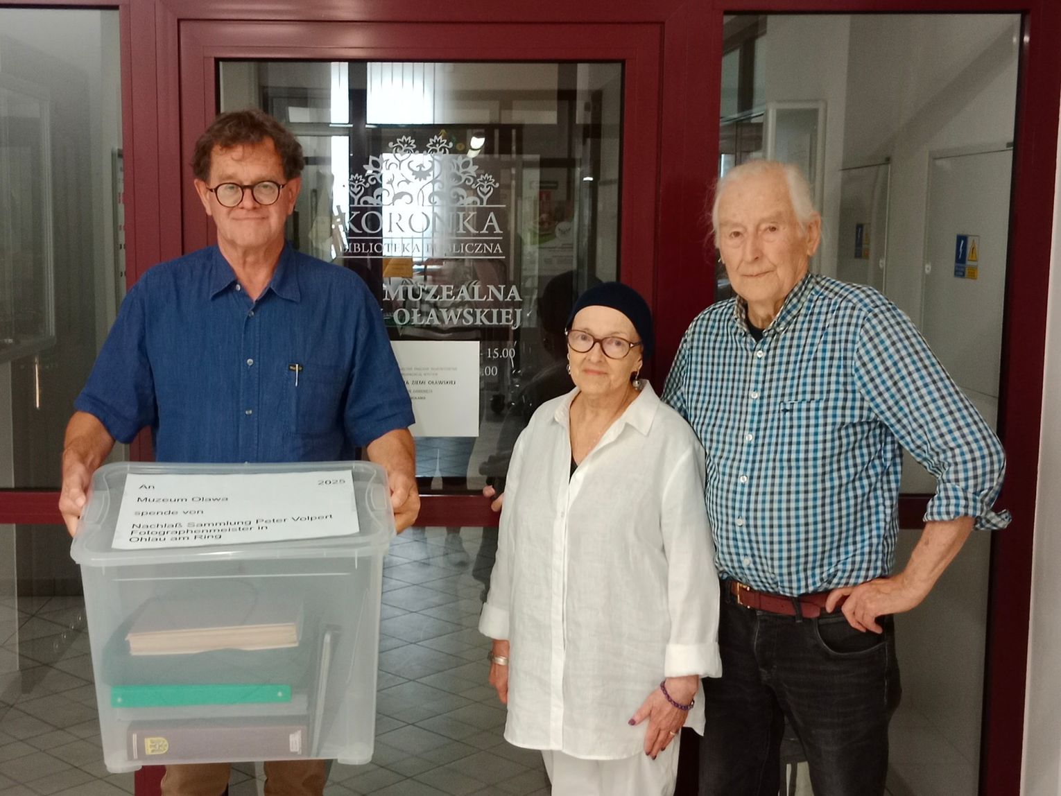 - Na zdjęciu: Hans-Georg Bräuer, Janina Kordys i Jacek Pilawa z pudełkiem, które już stało się dla nas bezcennym skarbem - informuje Biblioteka Publiczna w Oławie-Izba Muzealna Ziemi Oławskiej. - Dziękujemy za ten piękny gest pamięci i współpracy ponad granicami! Albumy wzbogacą nasze zbiory, a ich zawartość z pewnością wykorzystamy podczas wystaw czasowych i spotkań Klubu Poszukiwaczy Zaginionej Historii Oławy. Już nie możemy się doczekać, by podzielić się tym dziedzictwem z Wami!