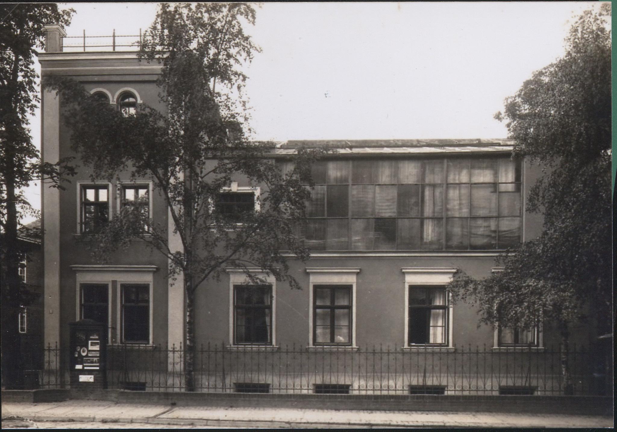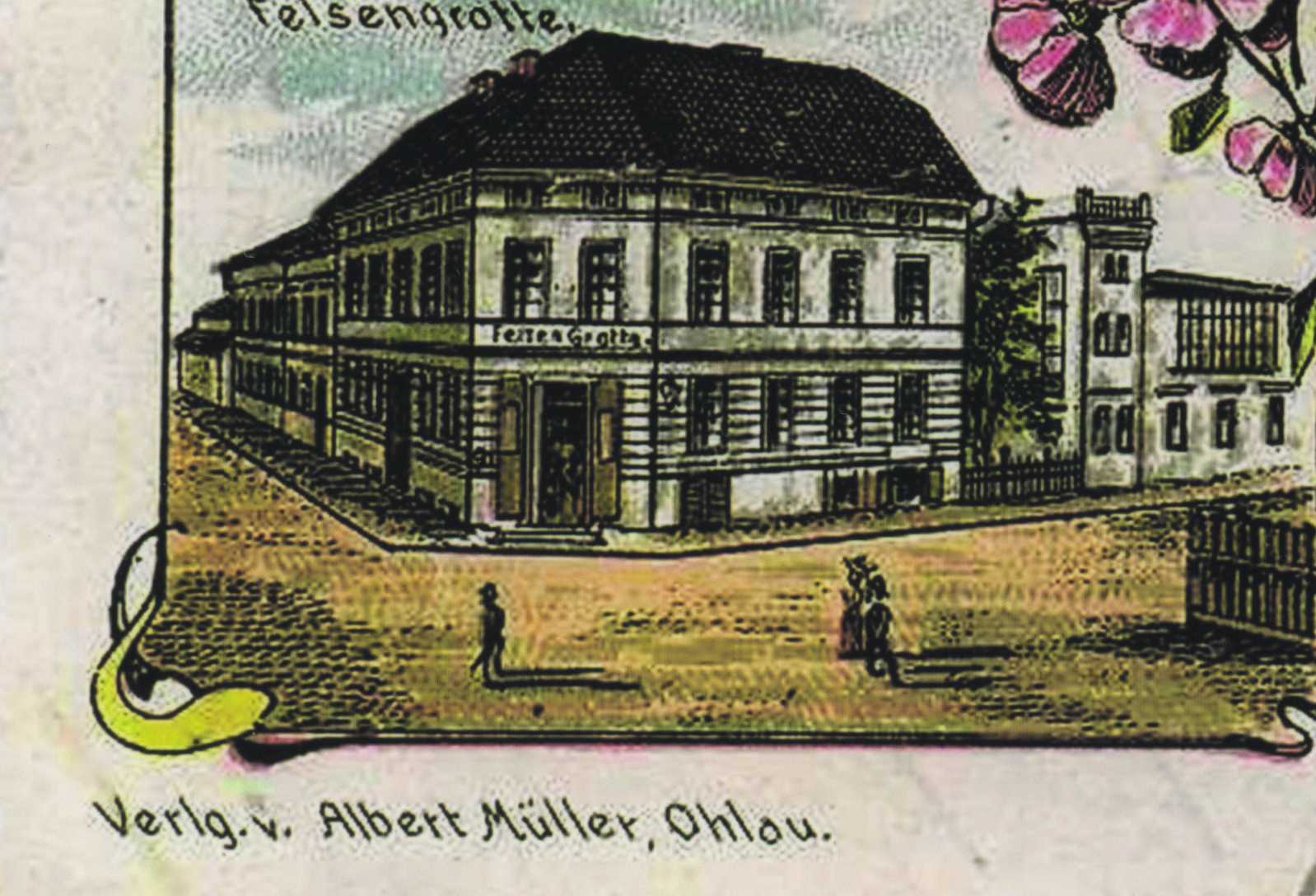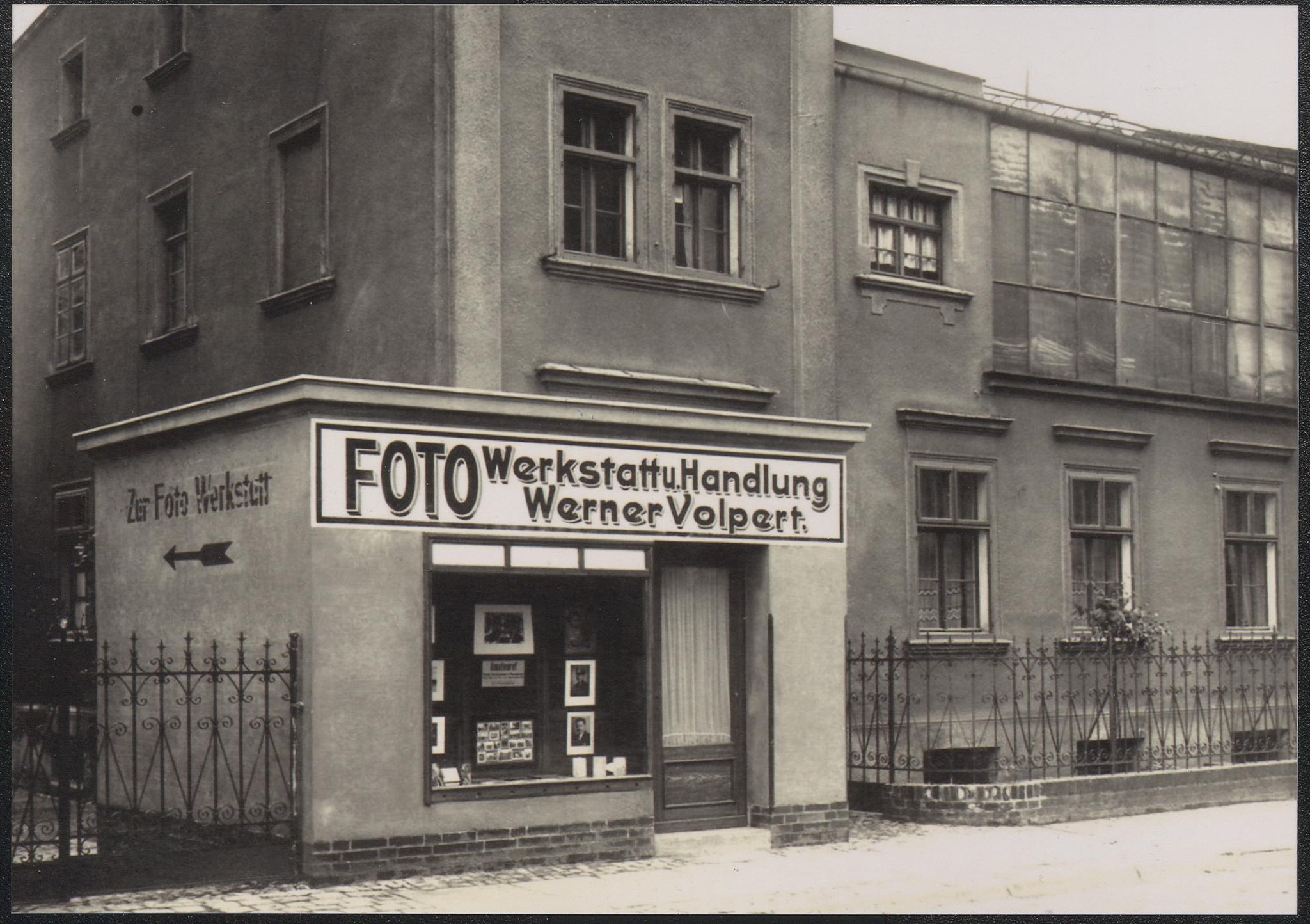 W tym budynku po prawej (rys. z przedwojennej pocztówki) mieściło się studio fotograficzne Volpertów (dziś to skrzyżowanie ul. Chrobrego z ul. Piotra Własta)