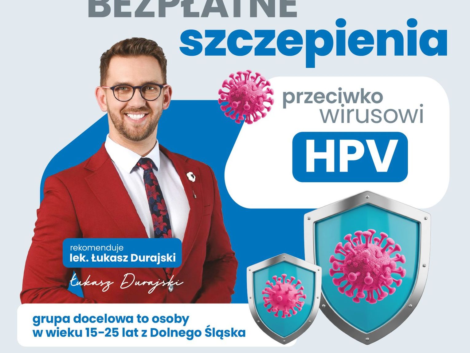 Objęte nimi zostaną osoby w wieku 15-25 lat. Możesz zadzwonić i umówić się wcześniej tel. 800 805 100 albo przyjść bezpośrednio w dniu szczepień. Akcja odbywać się będzie w ramach programu polityki zdrowotnej „Program polityki zdrowotnej w zakresie profilaktyki zakażeń wirusem brodawczaka ludzkiego (HPV) dla mieszkańców województwa dolnośląskiego na lata 2025-2027”, który zainaugurował Samorząd Województwa Dolnośląskiego. Celem programu jest zwiększenie świadomości społecznej oraz poprawa dostępu do szczepień ochronnych przeciw HPV w regionie. Realizatorem programu szczepień na Dolnym Śląsku jest firma Cogito Med, która odpowiada za organizację szczepień. Pamiętaj, profilaktyka to inwestycja w zdrowie przyszłych pokoleń.