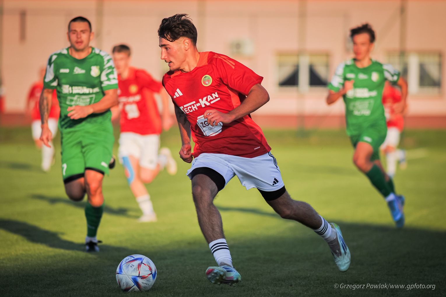 Strzelanie w meczu otwierającym 2. kolejkę IV ligi "Koleje Dolnośląskie" rozpoczęło się bardzo szybko. Już w 5. minucie, po dośrodkowaniu Damiana Miska, na piłkę nabiegł Jan Kozioł i głową skierował ją do siatki Patryka Janiczaka.