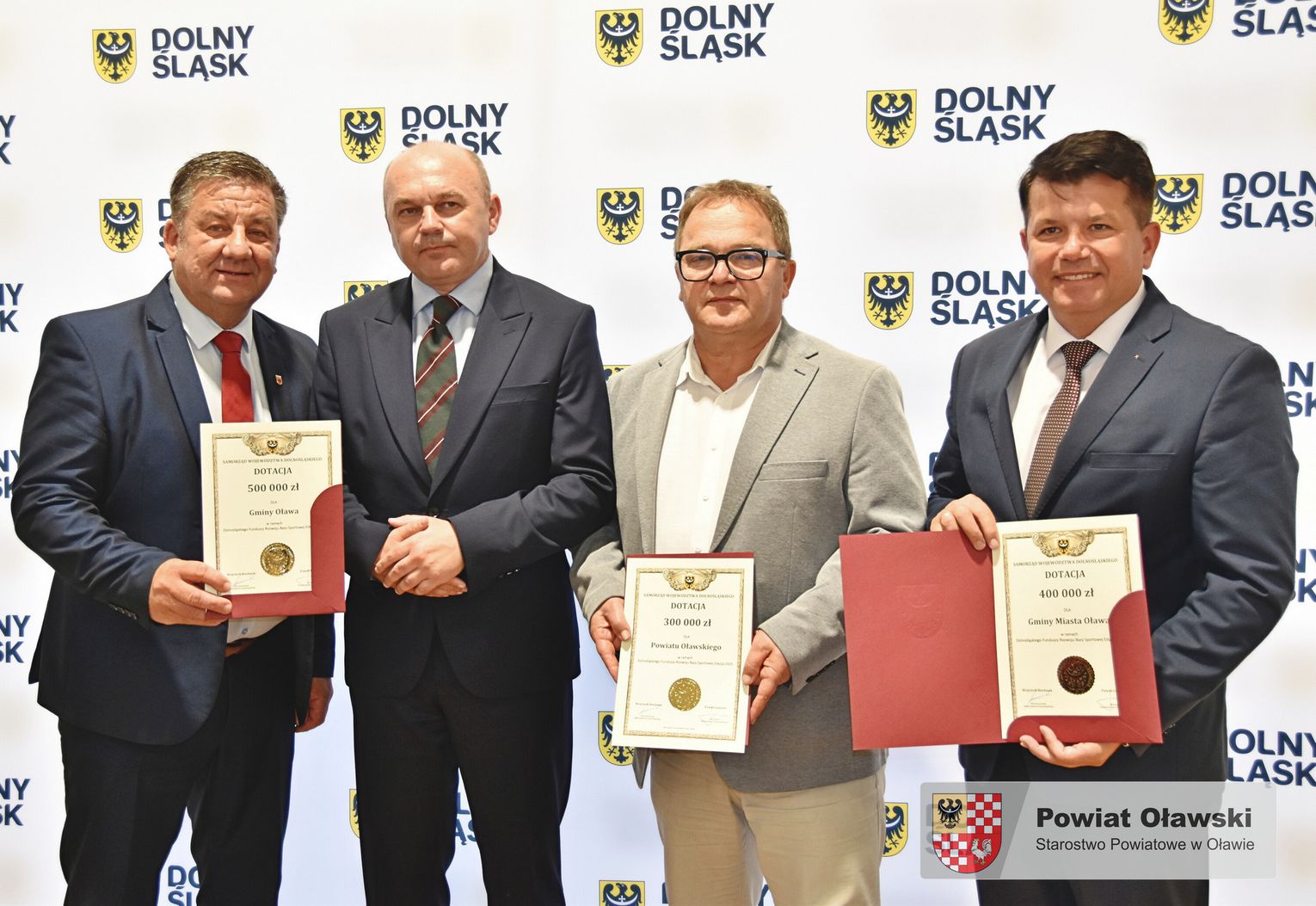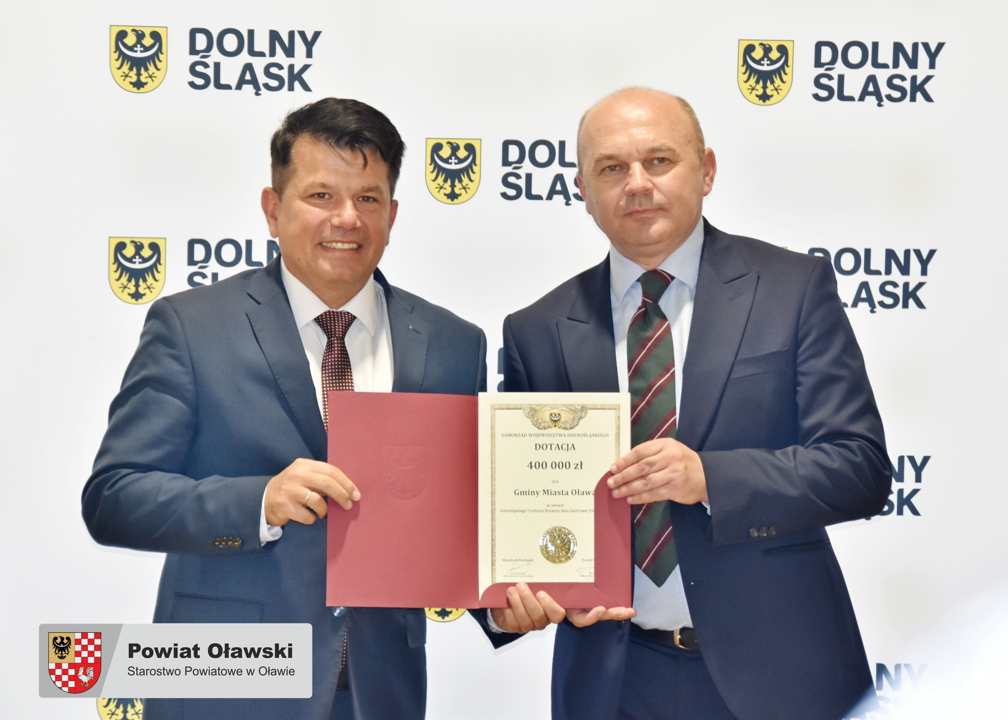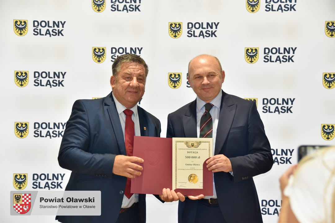 Z kolei 500 tys. pójdzie dla gminy Oława - w takiej wysokości dotację otrzymał gmina w ramach Dolnośląskiego Funduszu Rozwoju Bazy Sportowej - Edycja 2025. Środki zostaną przeznaczone na modernizację kompleksu sportowego w Gaci oraz budowę kortu tenisowego w Bystrzycy. Czek na taką kwotę odebrał dziś od wicemarszałka Bochnaka wójt Artur Piotrowski.