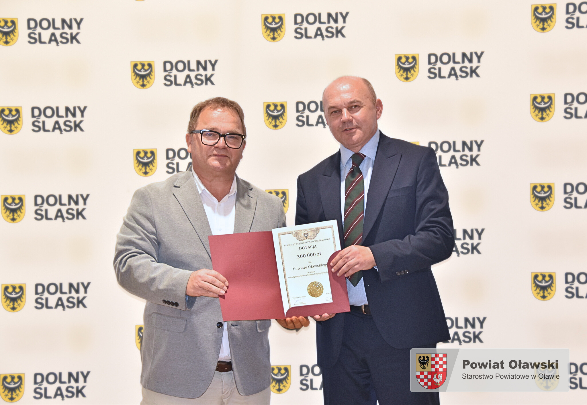 Powiat Oławski otrzymał 𝟯𝟬𝟬 𝘁𝘆𝘀. 𝘇ł na modernizację boiska wielofunkcyjnego przy Centrum Kształcenia Zawodowego i Ustawicznego w Oławie. Obiekt zostanie dostosowany do gry w siatkówkę i zyska nowoczesne zaplecze sportowe. Dotację z rąk wicemarszałka odebrał starosta Marek Szponar, który podkreślił znaczenie inwestycji: - Modernizacja boiska przy CKZiU sprawi, że uczniowie zyskają dostęp do nowoczesnej i bezpiecznej infrastruktury sportowej, dostosowanej do różnych dyscyplin. To nie tylko poprawi komfort zajęć wychowania fizycznego, ale także stworzy lepsze warunki do organizacji zawodów i zajęć pozalekcyjnych. Inwestycja ta będzie sprzyjać popularyzacji aktywności fizycznej wśród młodych ludzi i przyczyni się do promowania zdrowego stylu życia w naszym powiecie.