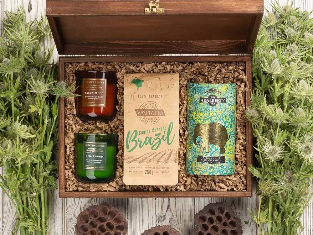 Coraz większą popularnością cieszą się również boxy prezentowe – elegancko zapakowane zestawy, które wyglądają nowocześnie i stylowo. To świetna propozycja dla osób ceniących minimalistyczną, a jednocześnie elegancką formę podarunku. Ale boxy prezentowe to nie wszystko – wyjątkową alternatywą są drewniane skrzynki z grawerem, które dodają prezentowi unikalnego charakteru. Taki detal sprawia, że upominek staje się nie tylko praktyczny, ale także pamiątką na lata. Grawerowane skrzynki prezentują się niezwykle elegancko, a po rozpakowaniu mogą służyć jako stylowy element wystroju lub praktyczny organizer.
