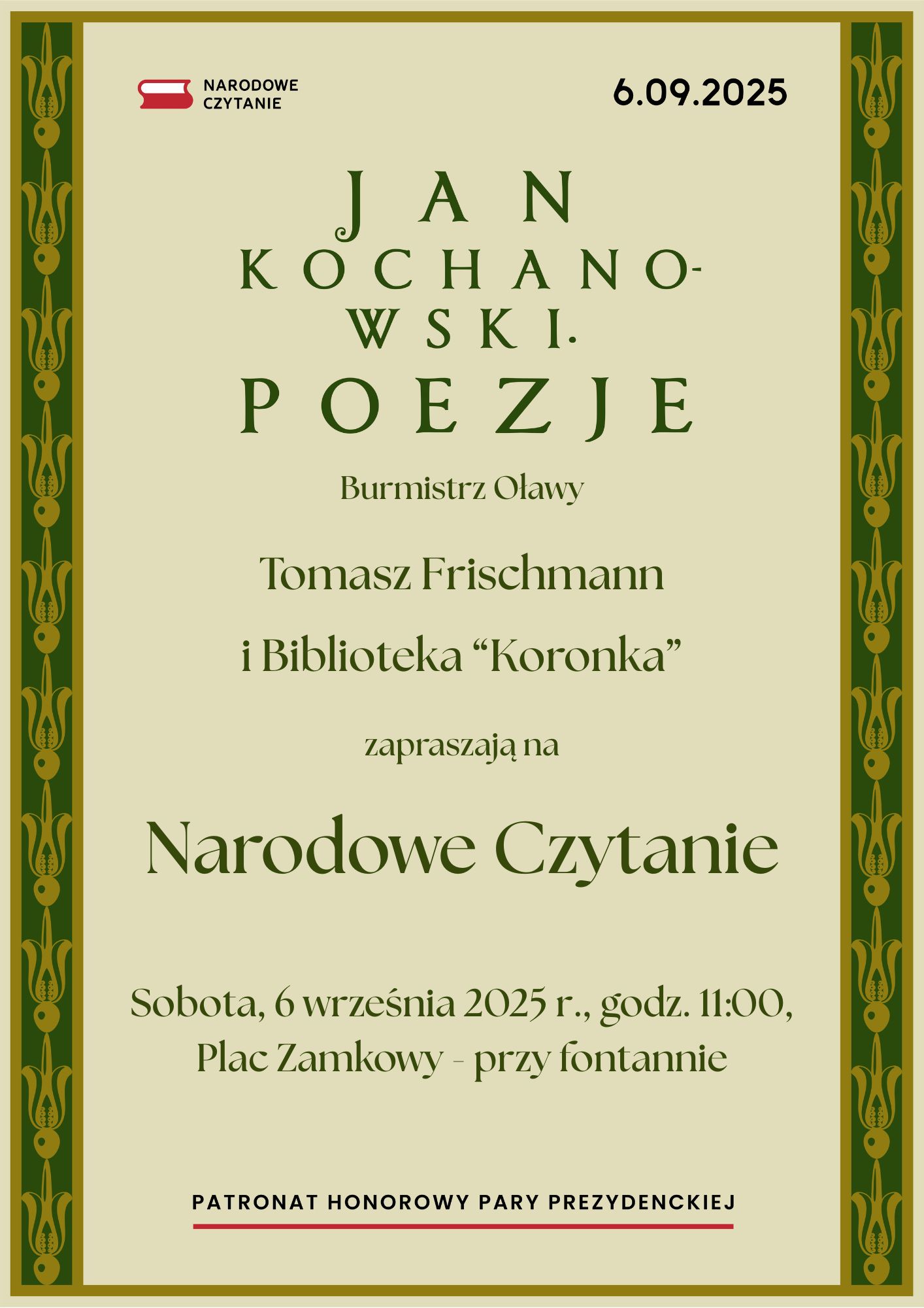 Tym razem czytane będą dzieła Jana Kochanowskiego. Zapraszamy