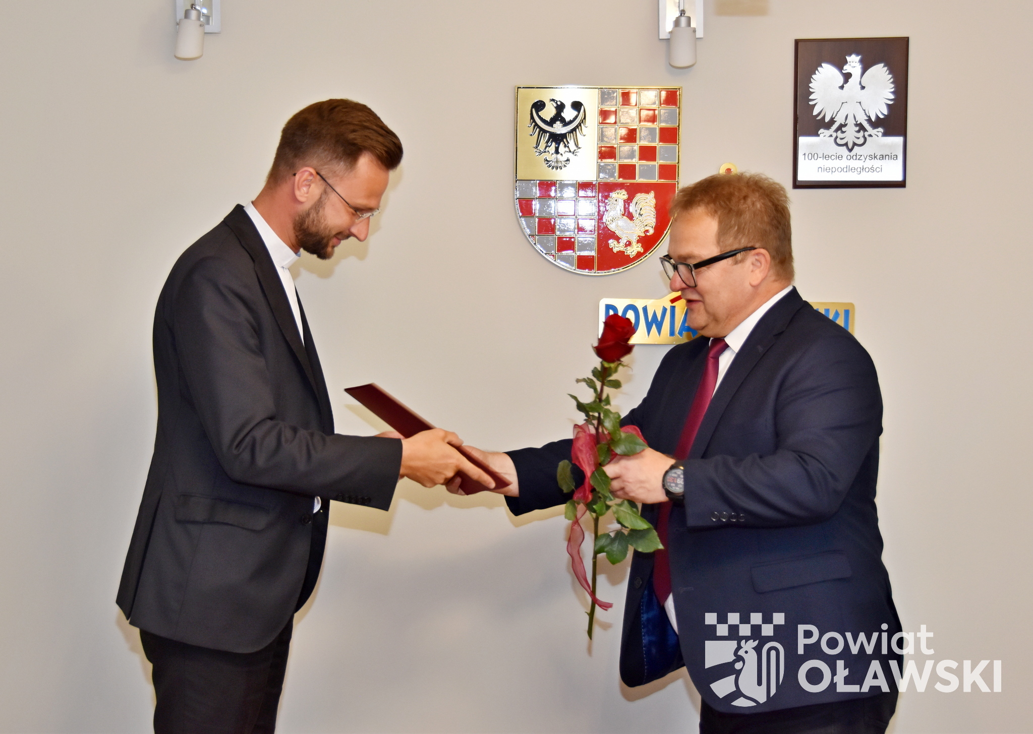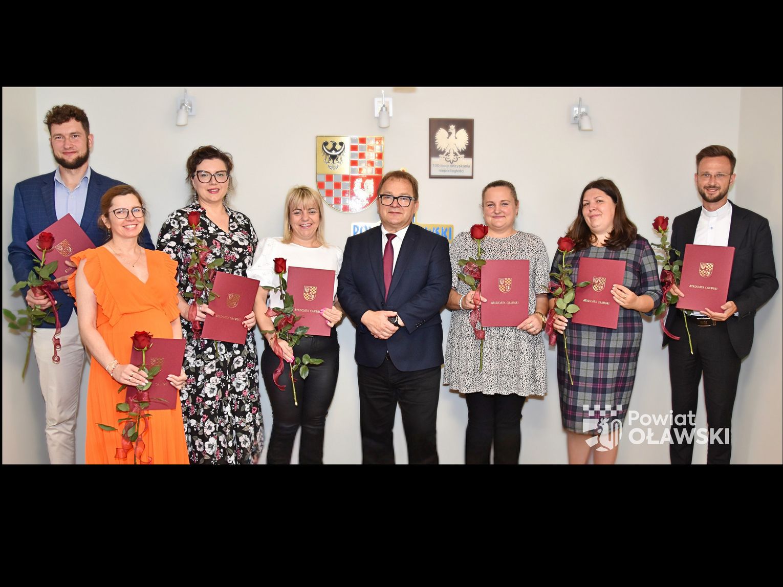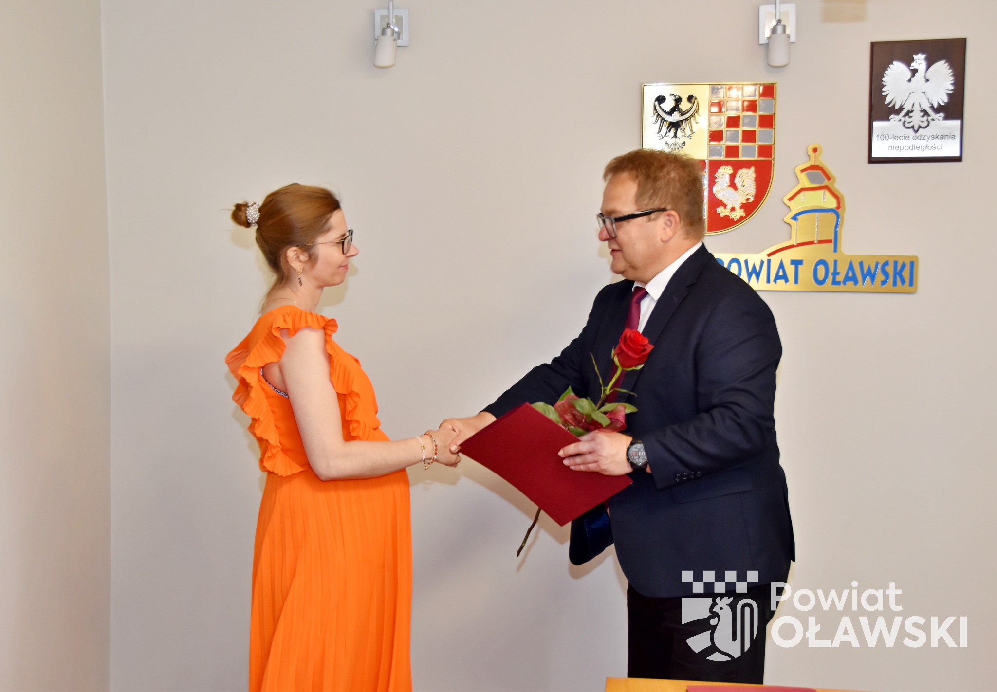 Dokumenty potwierdzające awans zawodowy wręczył starosta oławski 𝗠𝗮𝗿𝗲𝗸 𝗦𝘇𝗽𝗼𝗻𝗮𝗿.