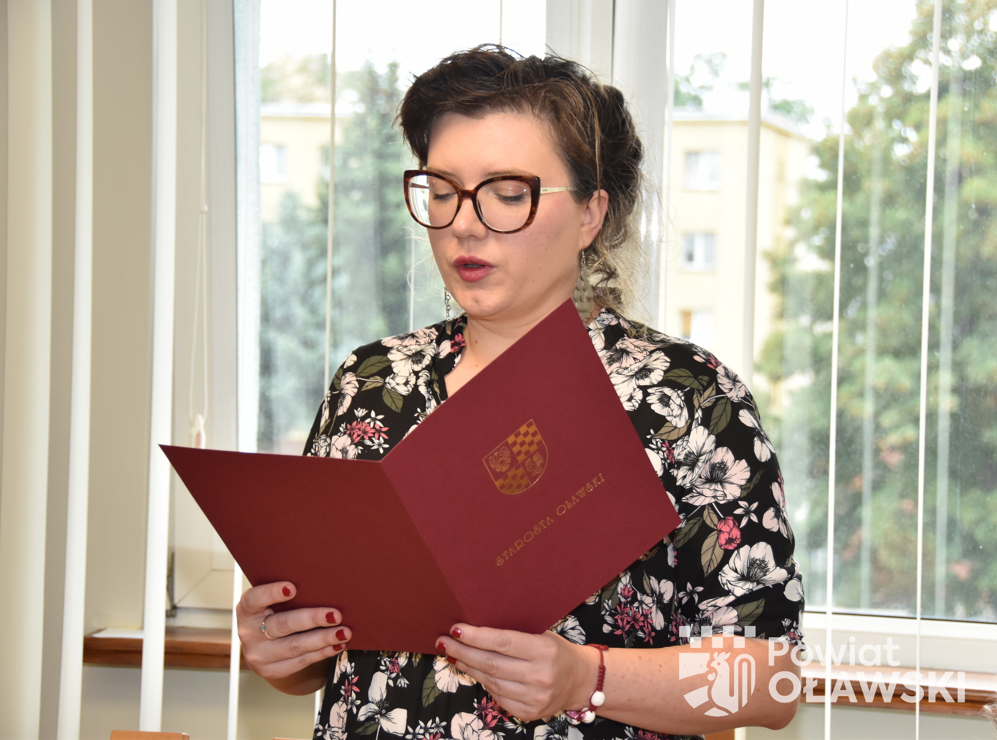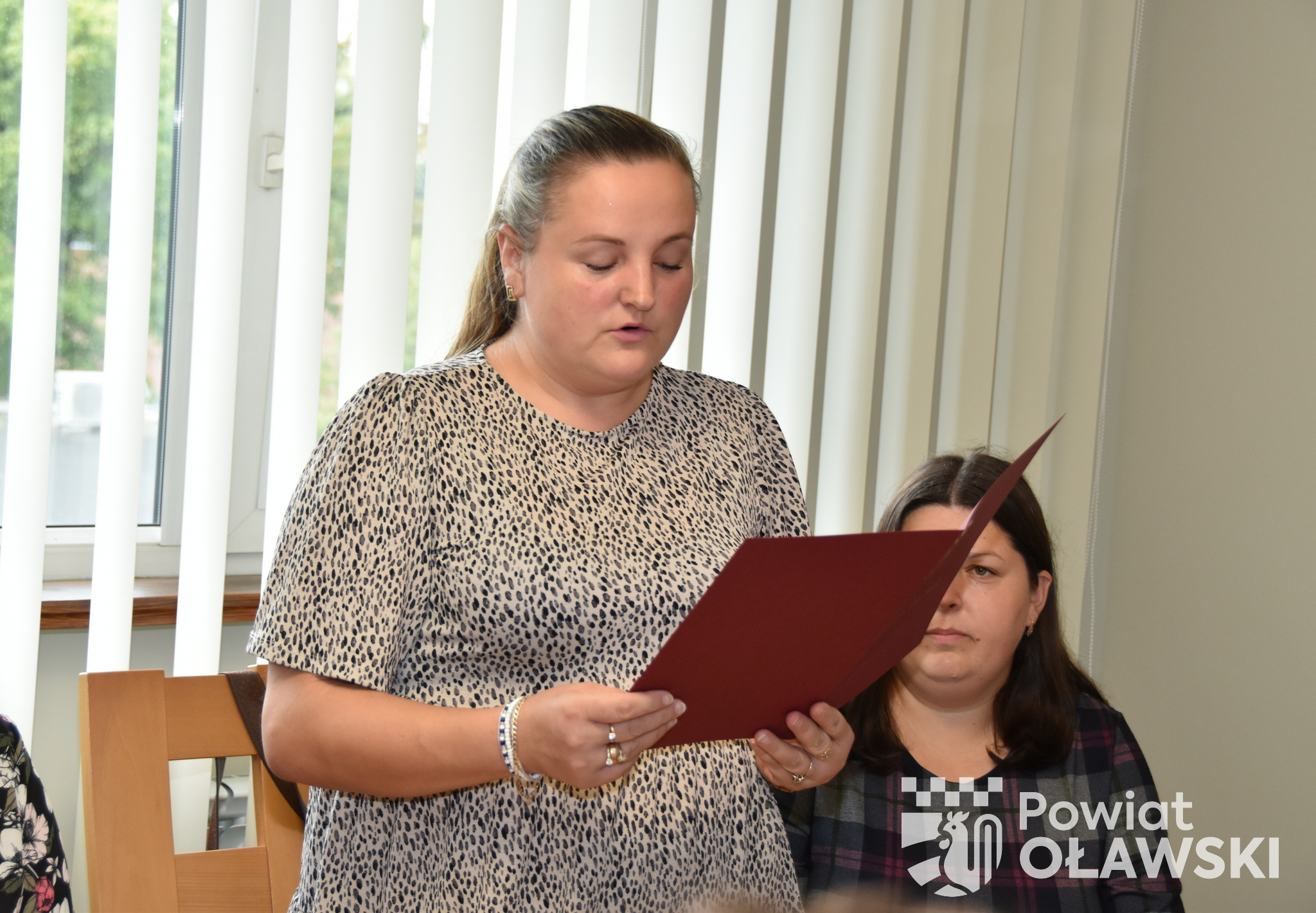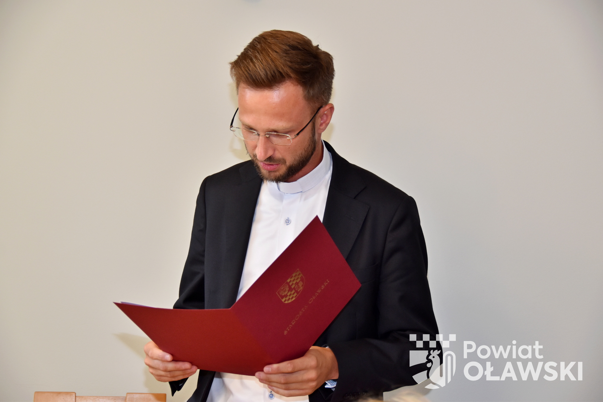 Dokumenty potwierdzające awans zawodowy wręczył starosta oławski 𝗠𝗮𝗿𝗲𝗸 𝗦𝘇𝗽𝗼𝗻𝗮𝗿.