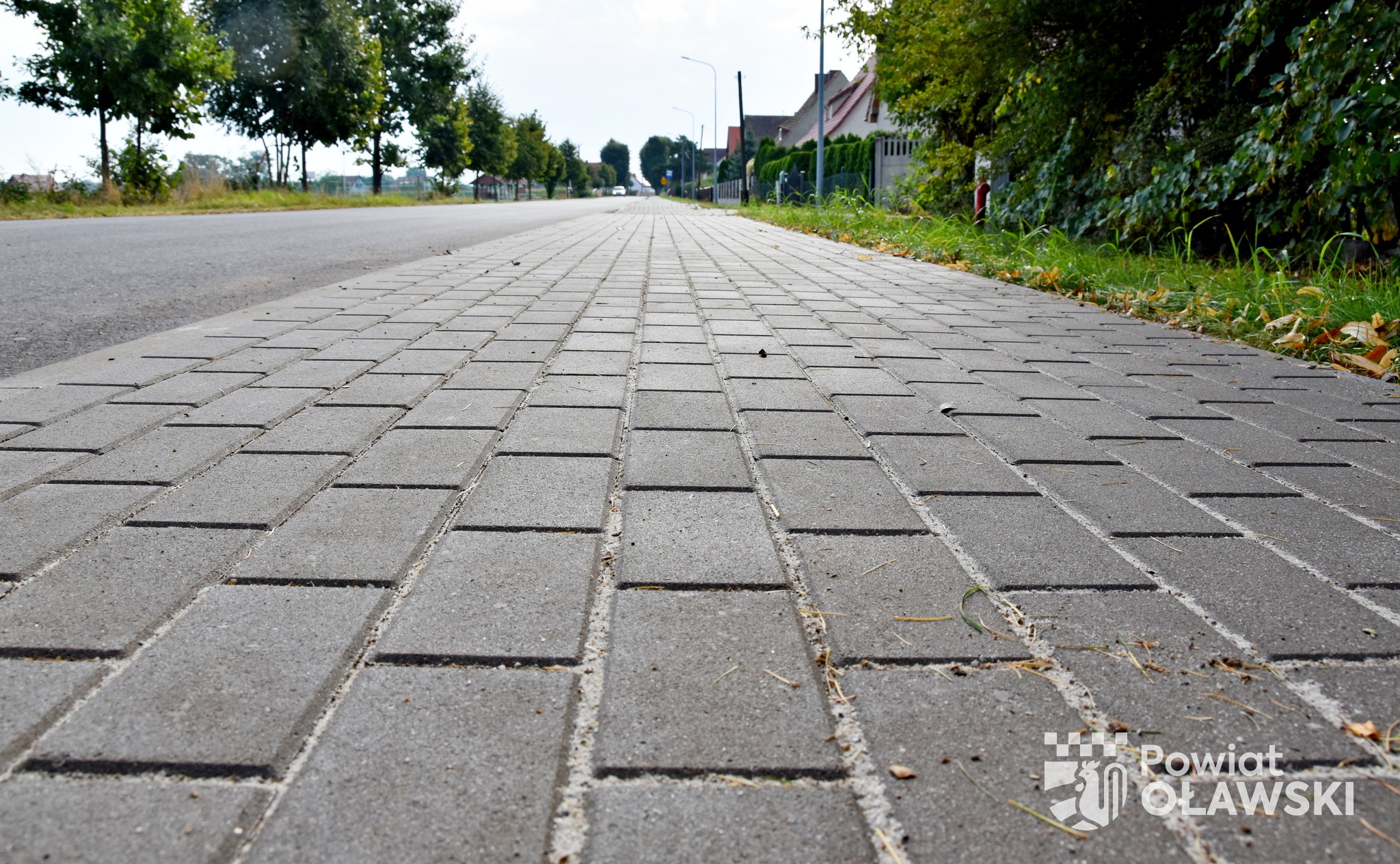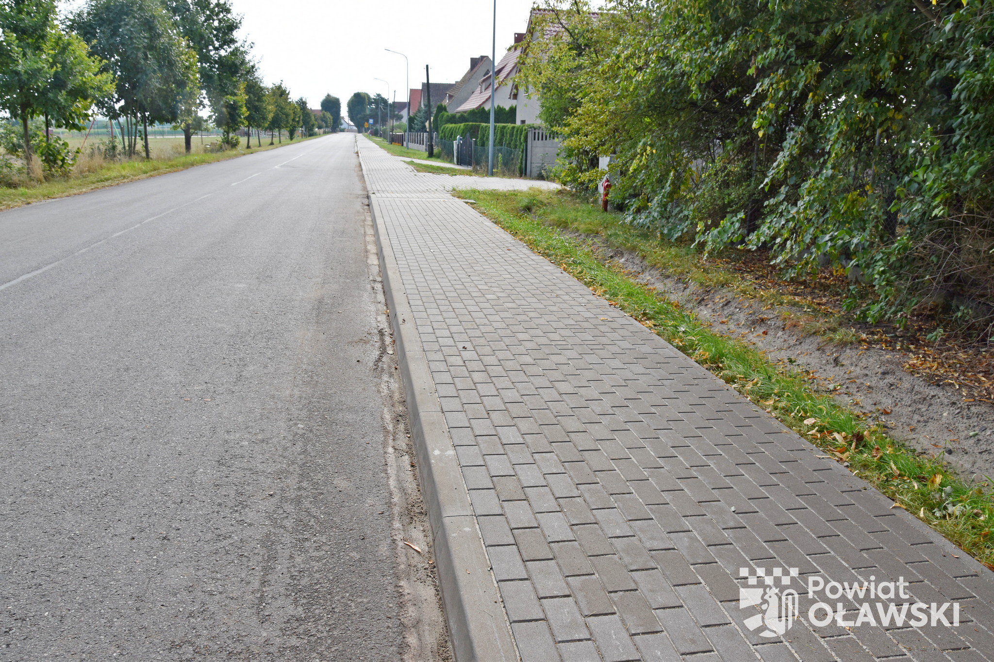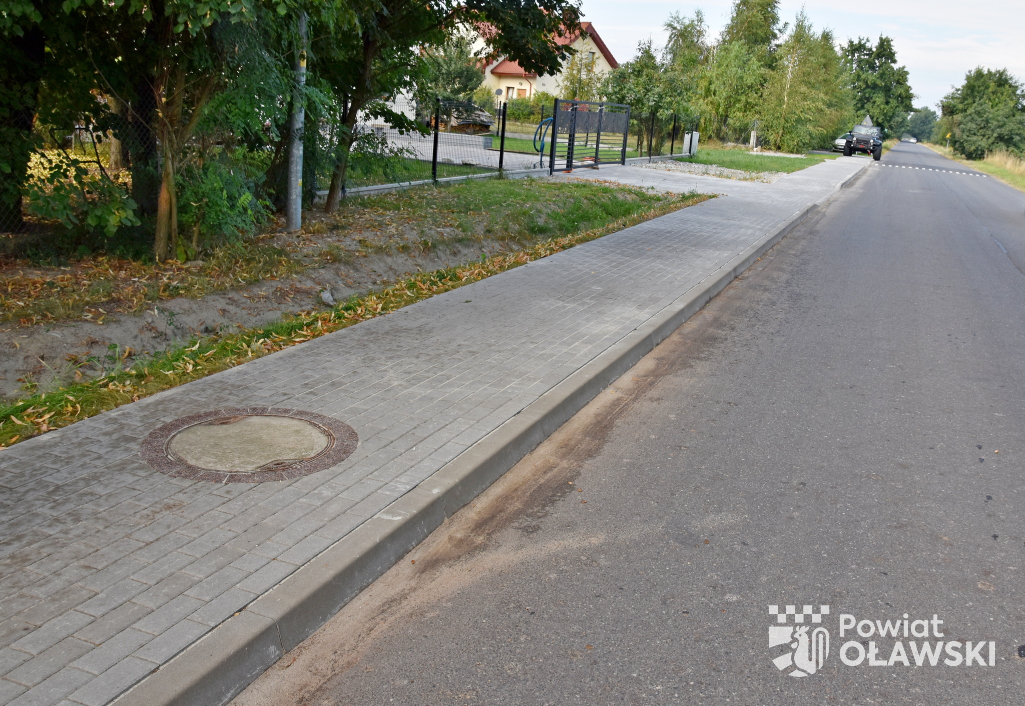 Wykonano nowy odcinek chodnika o długości 100 m oraz naprawiono część uszkodzonych chodników i poprawiono odwodnienie jezdni.