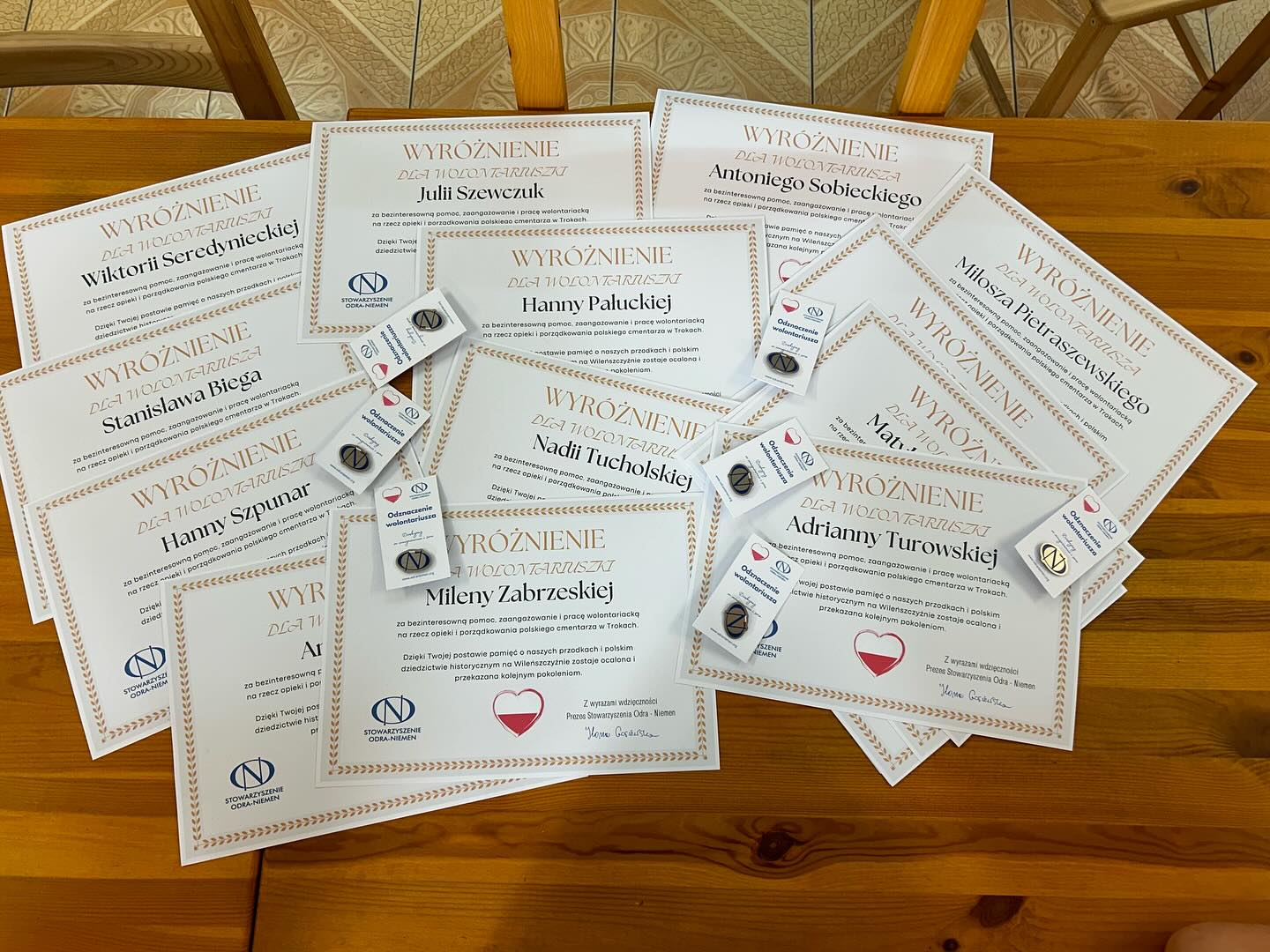 W uznaniu zaangażowania młodzież została uhonorowana dyplomami oraz odznaczeniami wolontariusza Odry-Niemen.