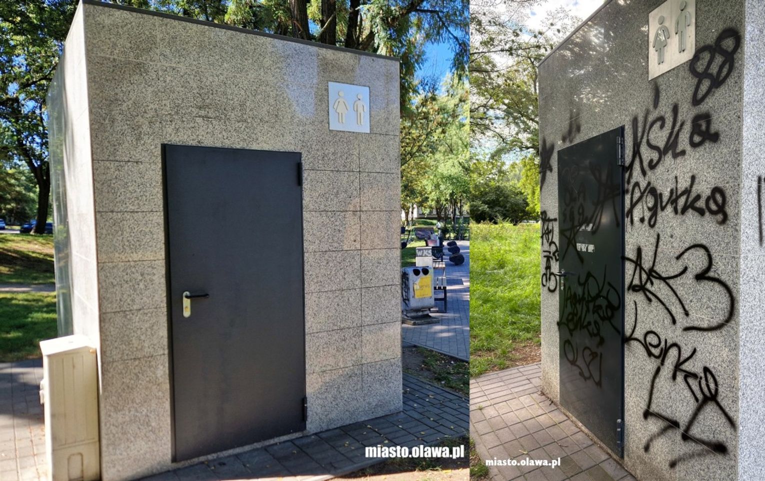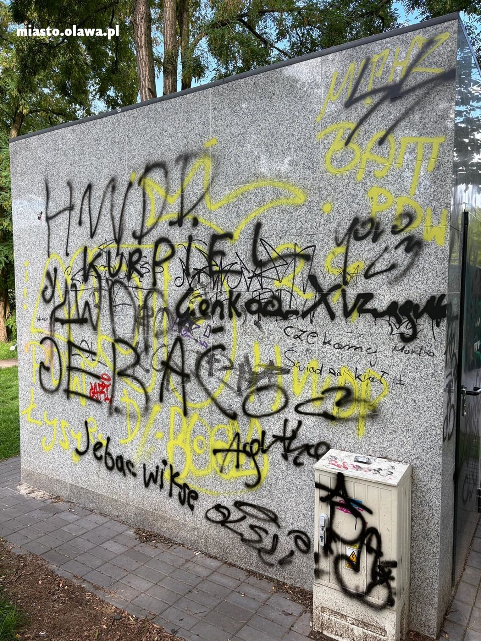 Po tym, jak opublikowaliśmy informację na profilu Miasto Oława zgłosiła się mama 14-latki, podpisała oświadczenie, że szkody zostaną naprawione, a jeśli to się nie uda, usunięciem bazgrołów zajmie się specjalistyczna firma, koszty pokryje mama nastolatki. Wydział Gospodarki Komunalnej i Mieszkaniowej wyznaczył termin na usunięcie szkody do końca sierpnia. Nastolatka i jej znajomi podołali zadaniu, usunęli wszystkie napisy, również te, które ktoś zrobił wcześniej. Odmalowano też zniszczone drzwi do pomieszczenia technicznego. Mamy nadzieję, że takie wybryki więcej się nie powtórzą