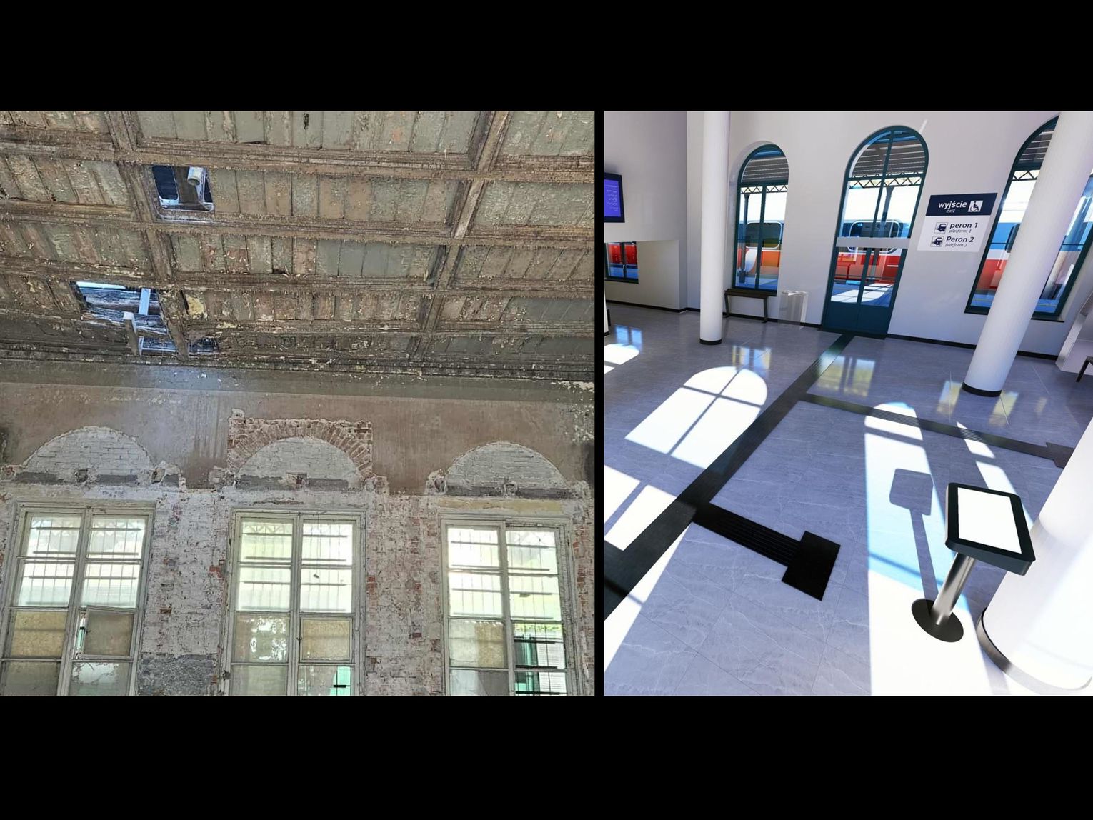We wschodniej części dworca przywrócone zostanie historyczne wejście do budynku. Tu znajdą się poczekalnia dla pasażerów oraz toalety. Część istniejącej stolarki okiennej i drzwiowej dworca jest stolarką historyczną, która zostanie poddana renowacji. Główny korpus budynku zostanie przeznaczony na potrzeby samorządu Oławy.
