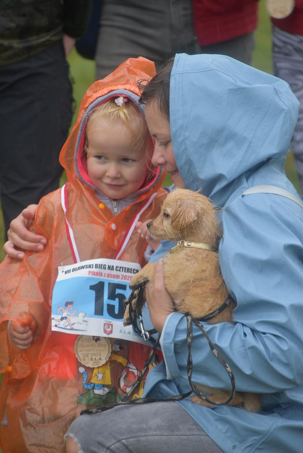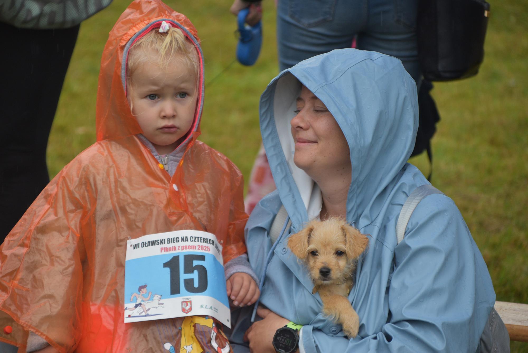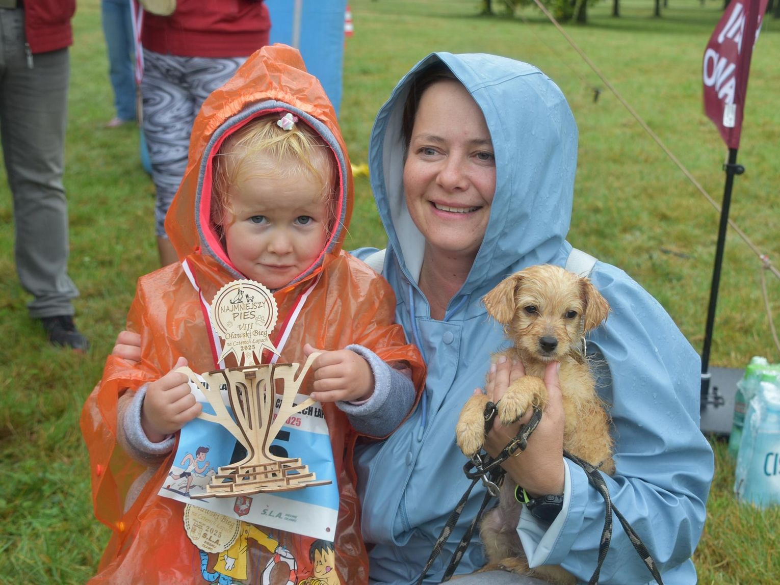 Pieska na start biegu przyprowadziły trzyletnia Antola z mamą Olą - obie z Jaczkowic w gminie Oława. Ididi to malutki piesek, który ma dopiero cztery miesiące.