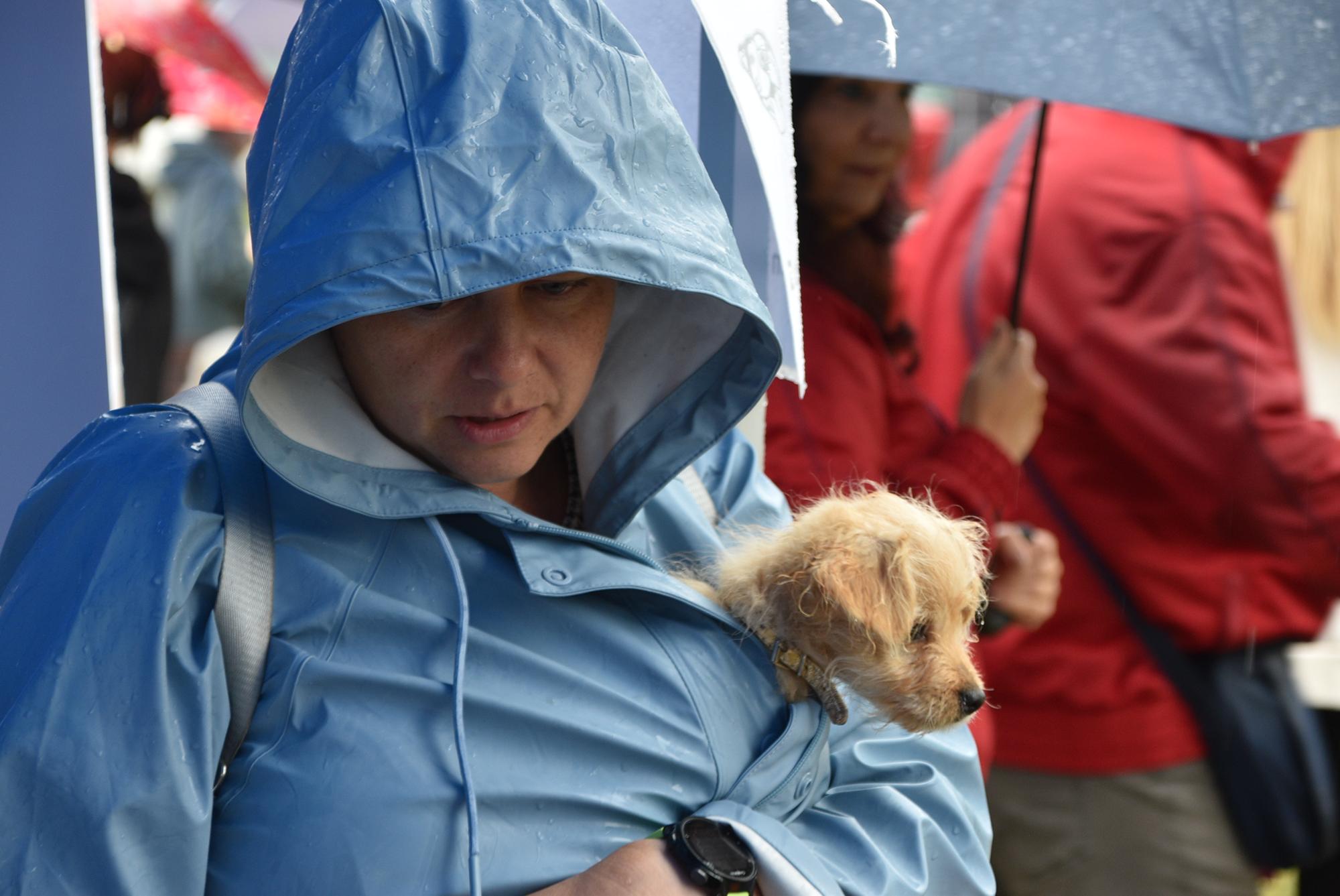 Włosy na razie ma bardziej od pudla, bo - gdy wyschną - kręcą się, czego wczoraj podczas deszczowej imprezy nie był widać.