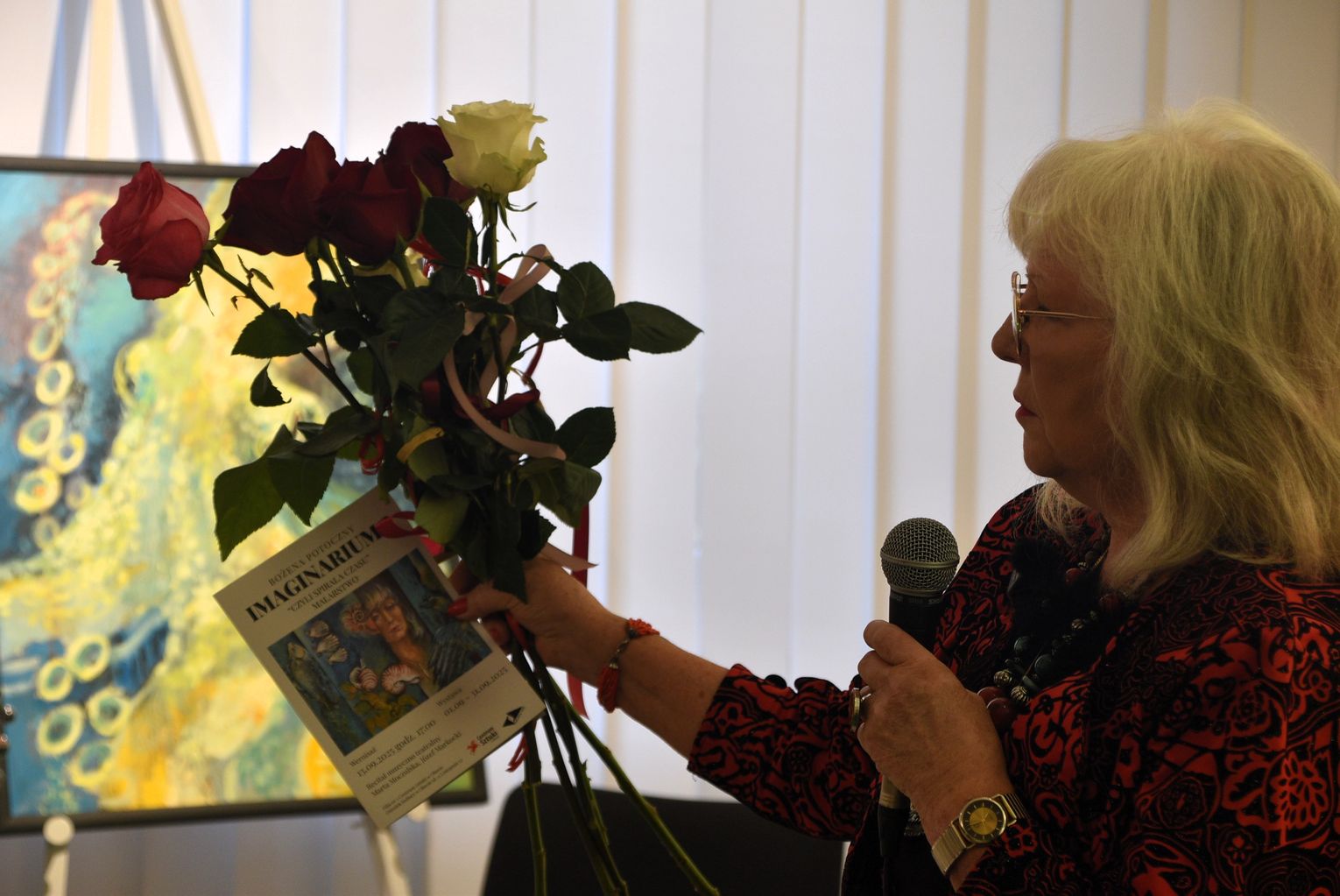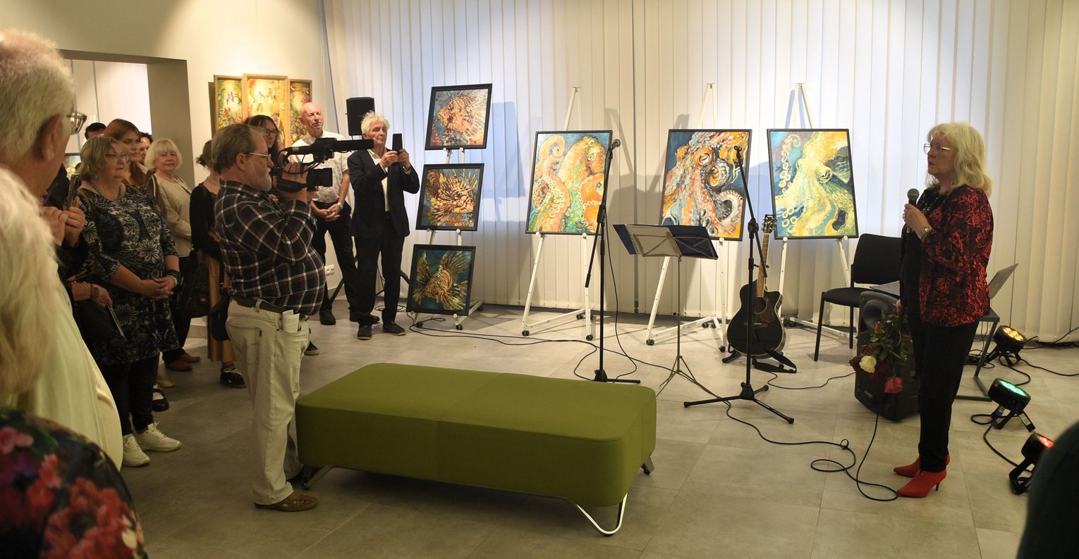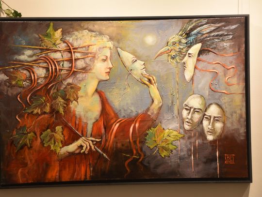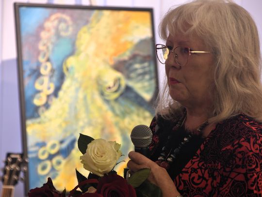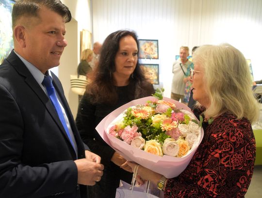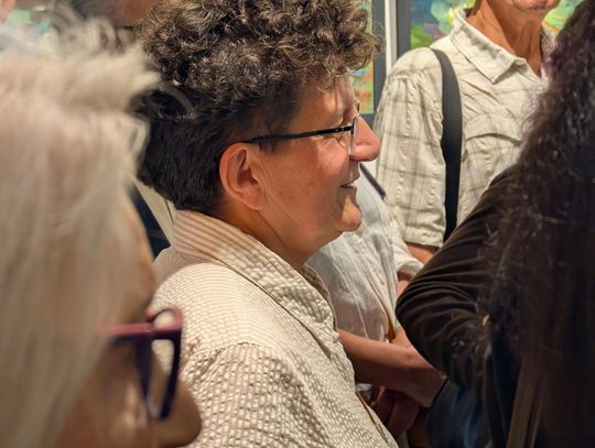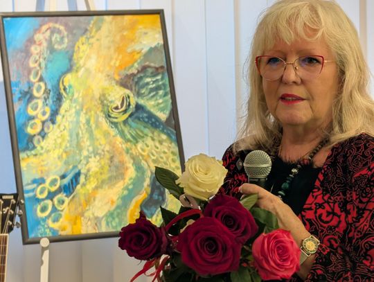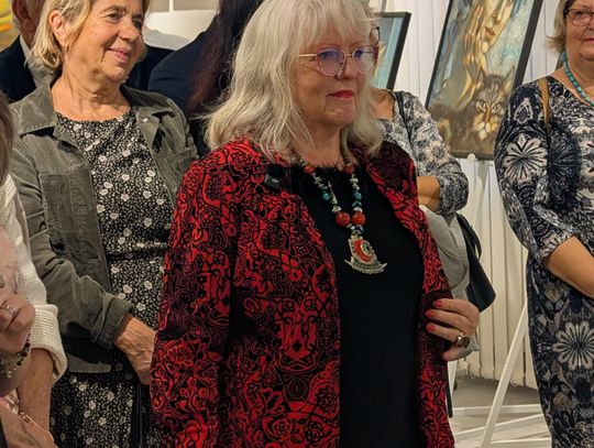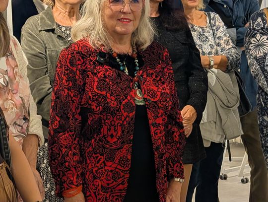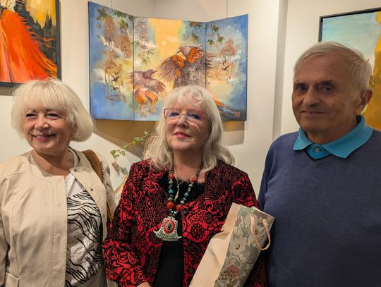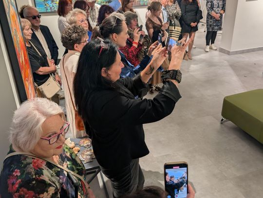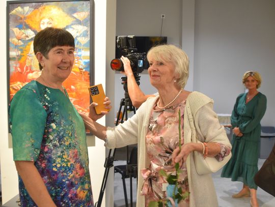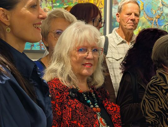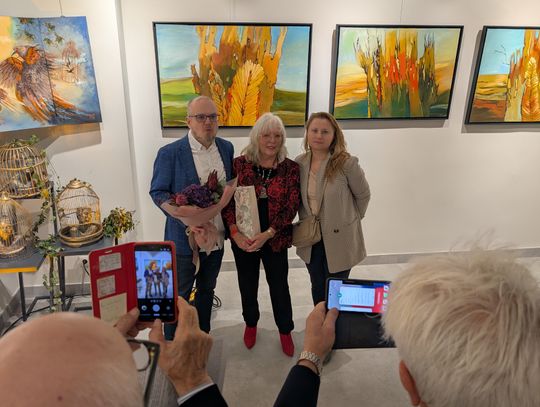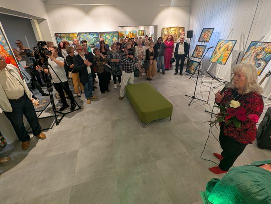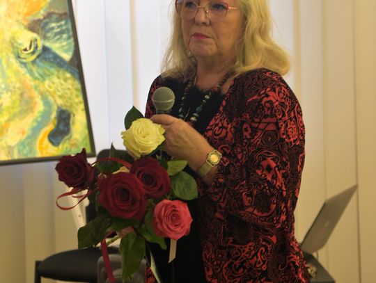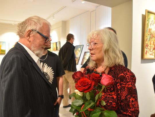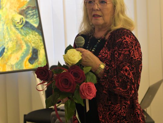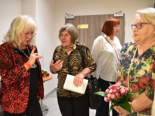 Pani Bożena mówiła, że maluje cyklami, a podstawowym tematem jest upływający czas. - Czas ima się nas wszystkich, ja odczuwam to szczególnie, bo sporo lat już za mną - powiedziała. - Za tydzień kończę osiemdziesiątkę, więc się bardzo cieszę z tego, że mogę przez cały tydzień obchodzić z Wami swój jubileusz. Dziękuję Wam za obecność.