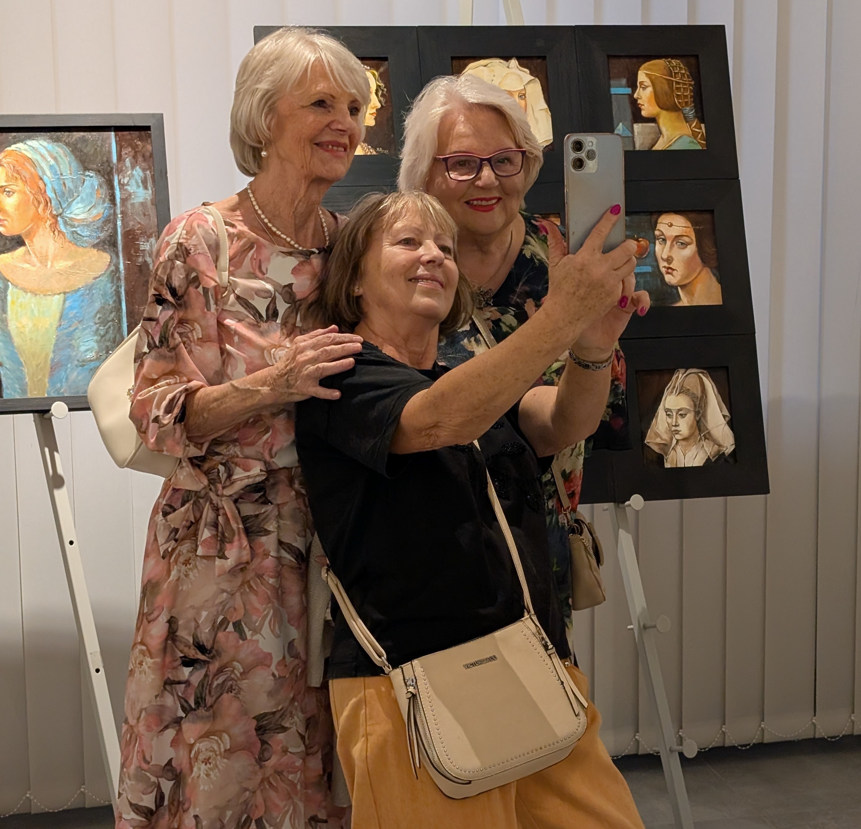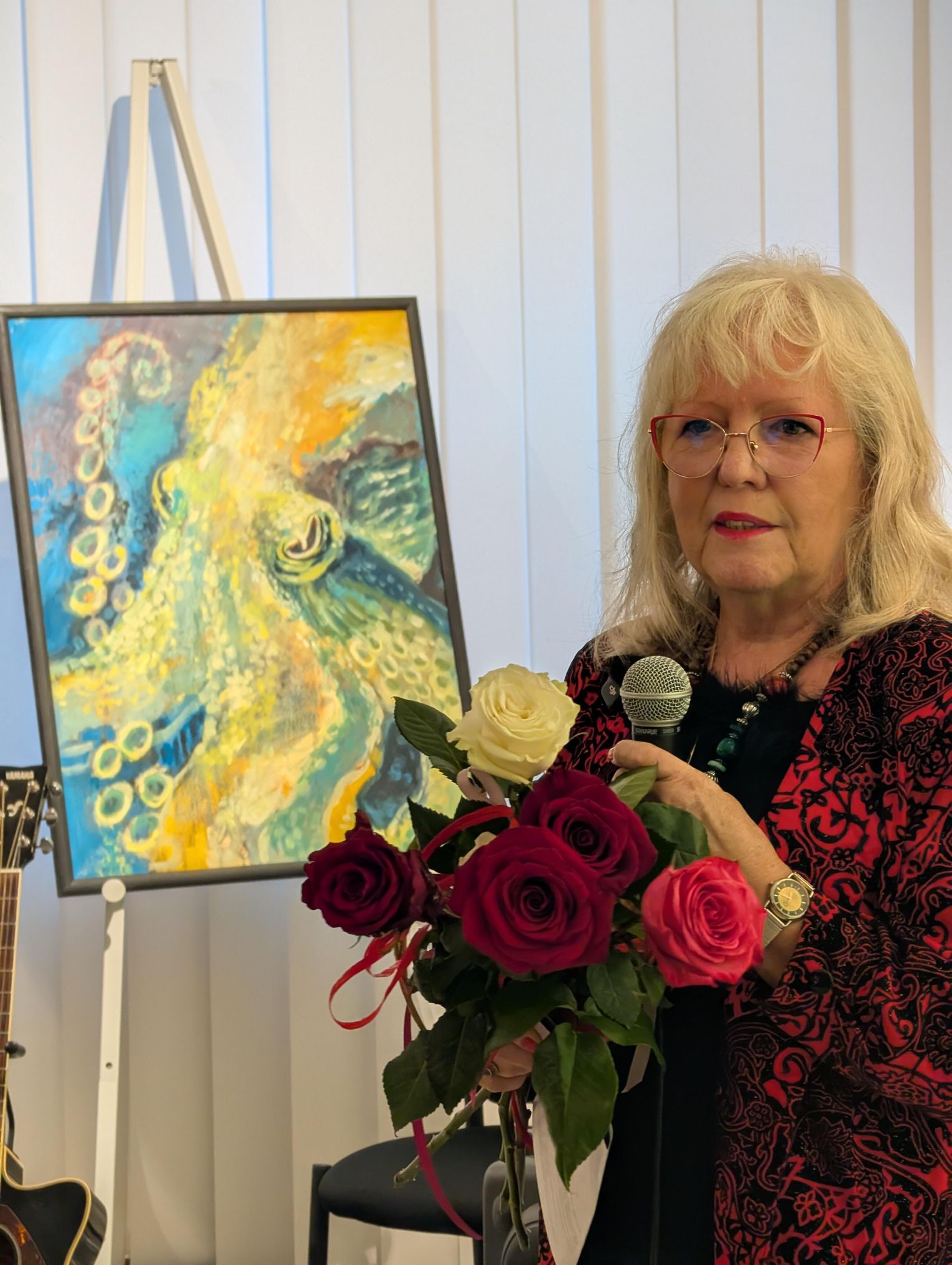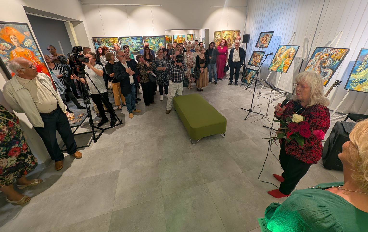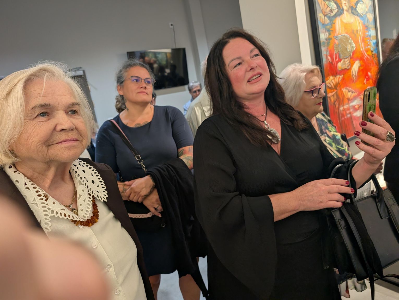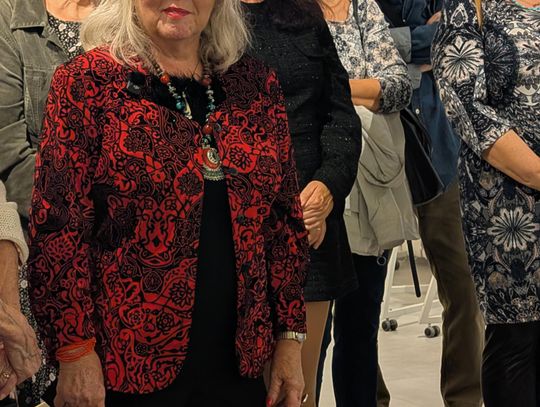 Pani Bożena mówiła, że maluje cyklami, a podstawowym tematem jest upływający czas. - Czas ima się nas wszystkich, ja odczuwam to szczególnie, bo sporo lat już za mną - powiedziała. - Za tydzień kończę osiemdziesiątkę, więc się bardzo cieszę z tego, że mogę przez cały tydzień obchodzić z Wami swój jubileusz. Dziękuję Wam za obecność.