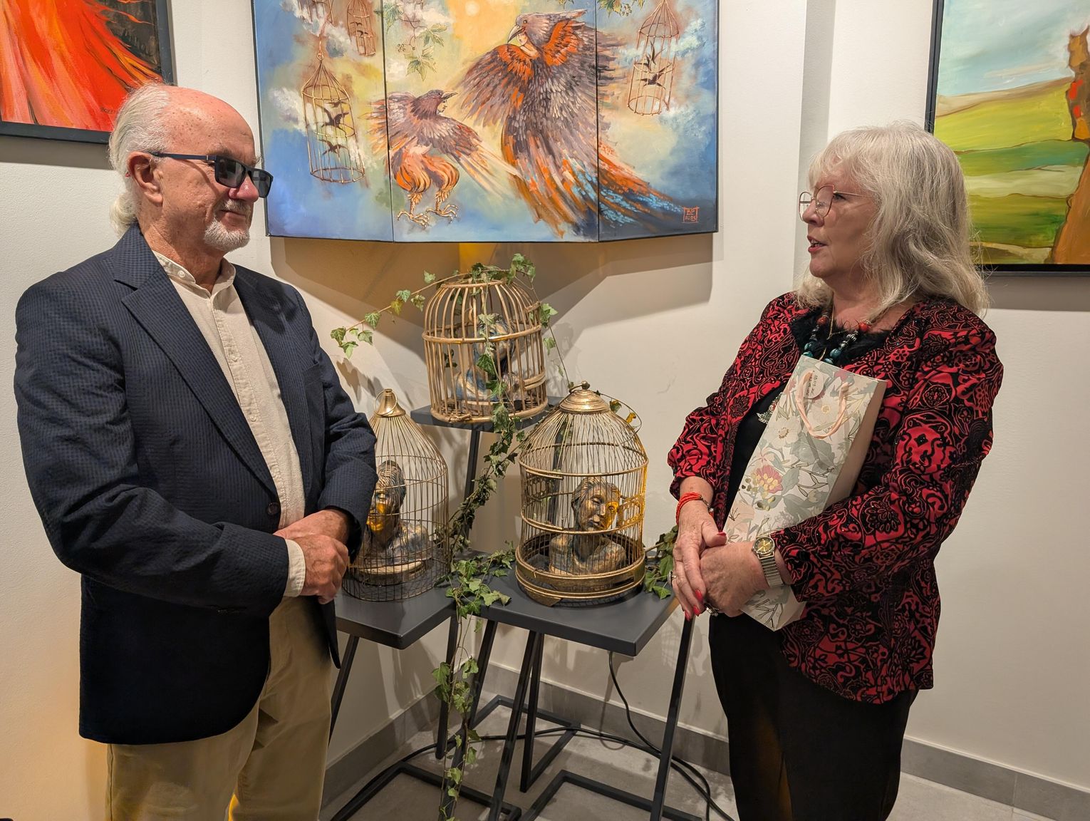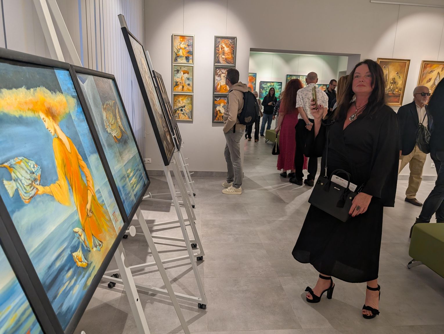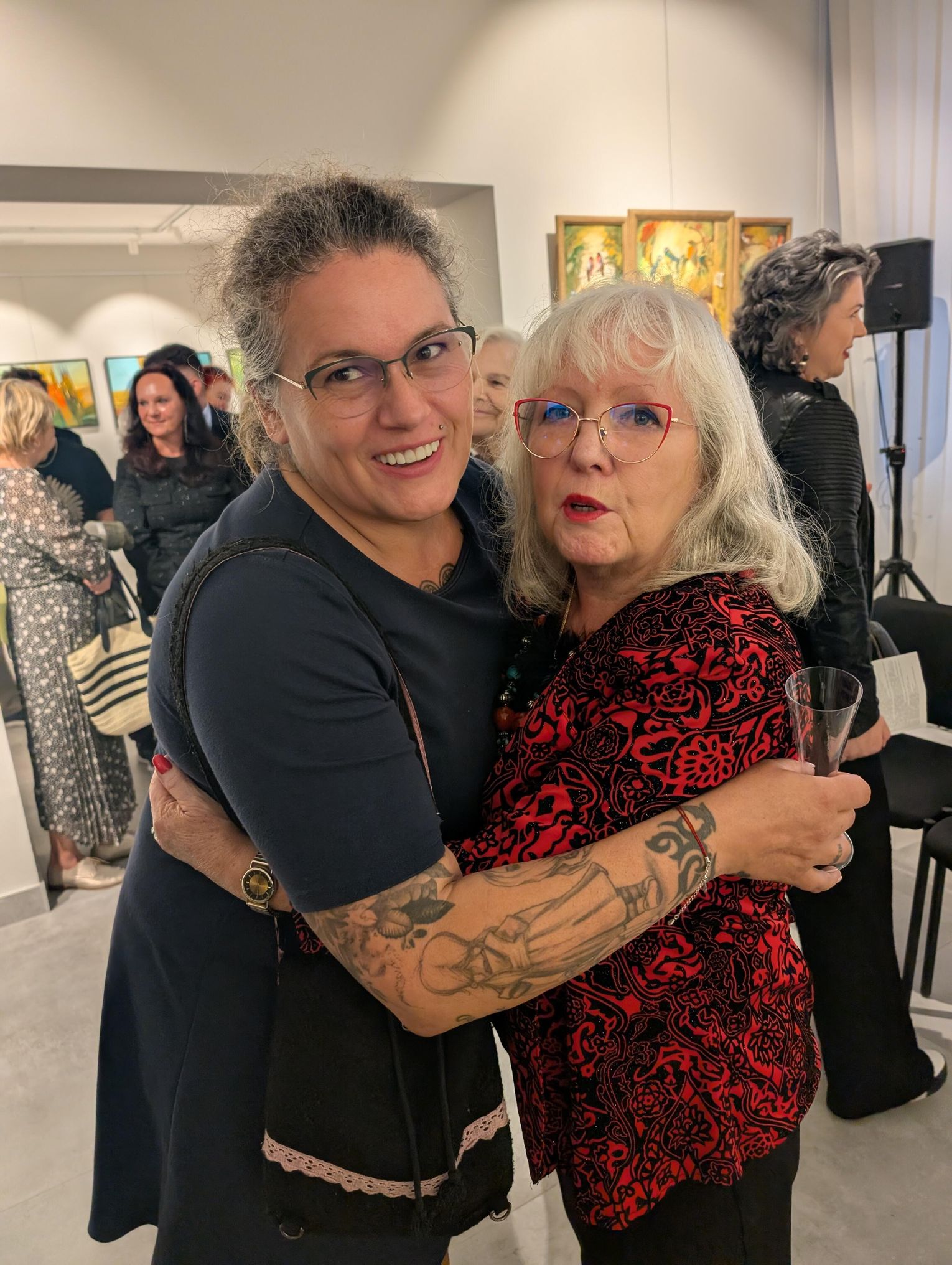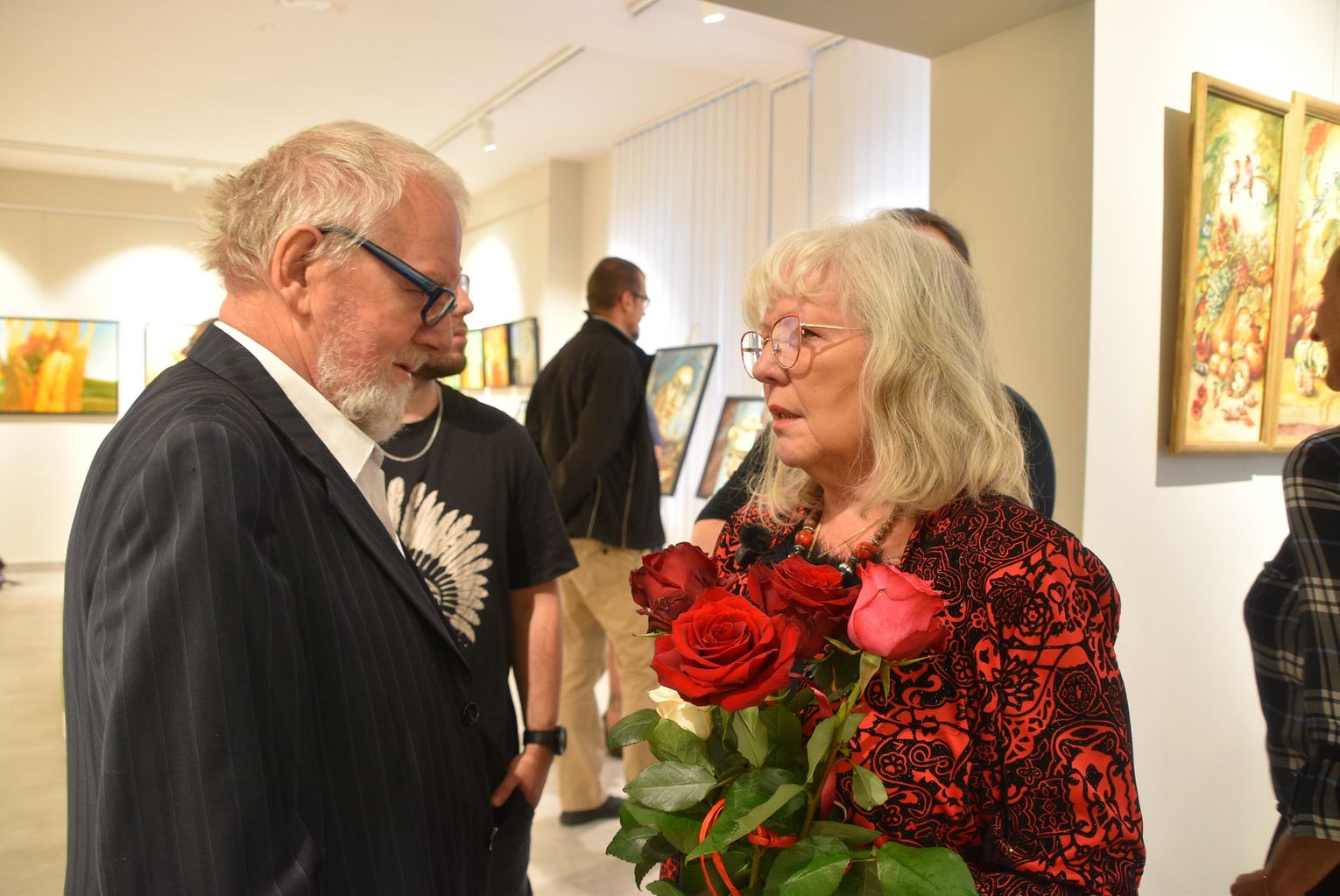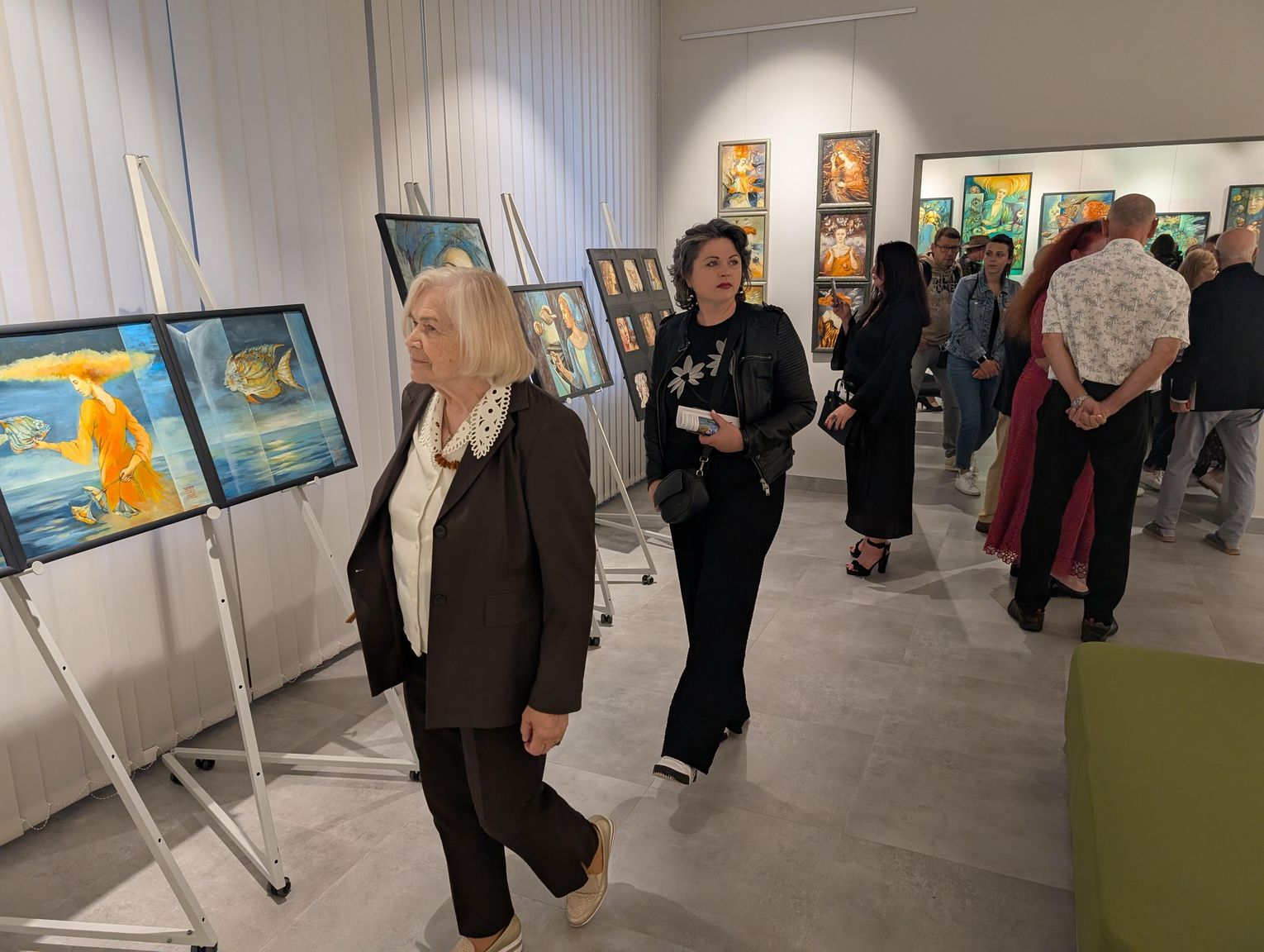 Pani Bożena mówiła, że maluje cyklami, a podstawowym tematem jest upływający czas. - Czas ima się nas wszystkich, ja odczuwam to szczególnie, bo sporo lat już za mną - powiedziała. - Za tydzień kończę osiemdziesiątkę, więc się bardzo cieszę z tego, że mogę przez cały tydzień obchodzić z Wami swój jubileusz. Dziękuję Wam za obecność.
