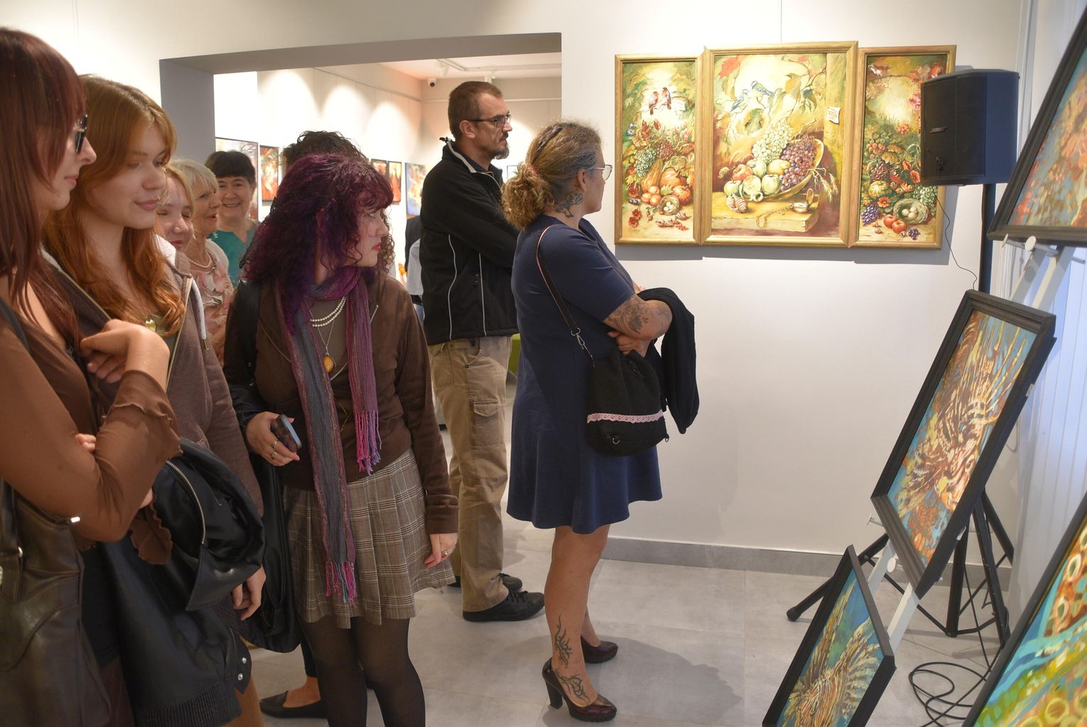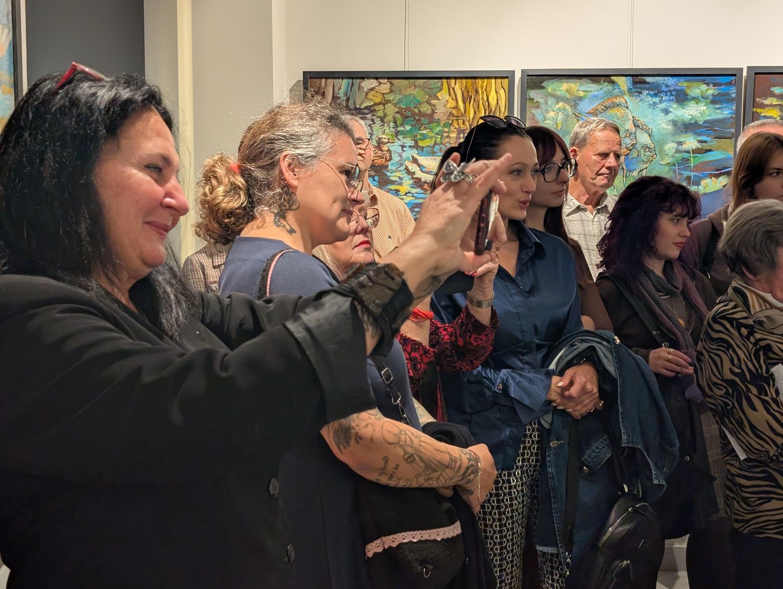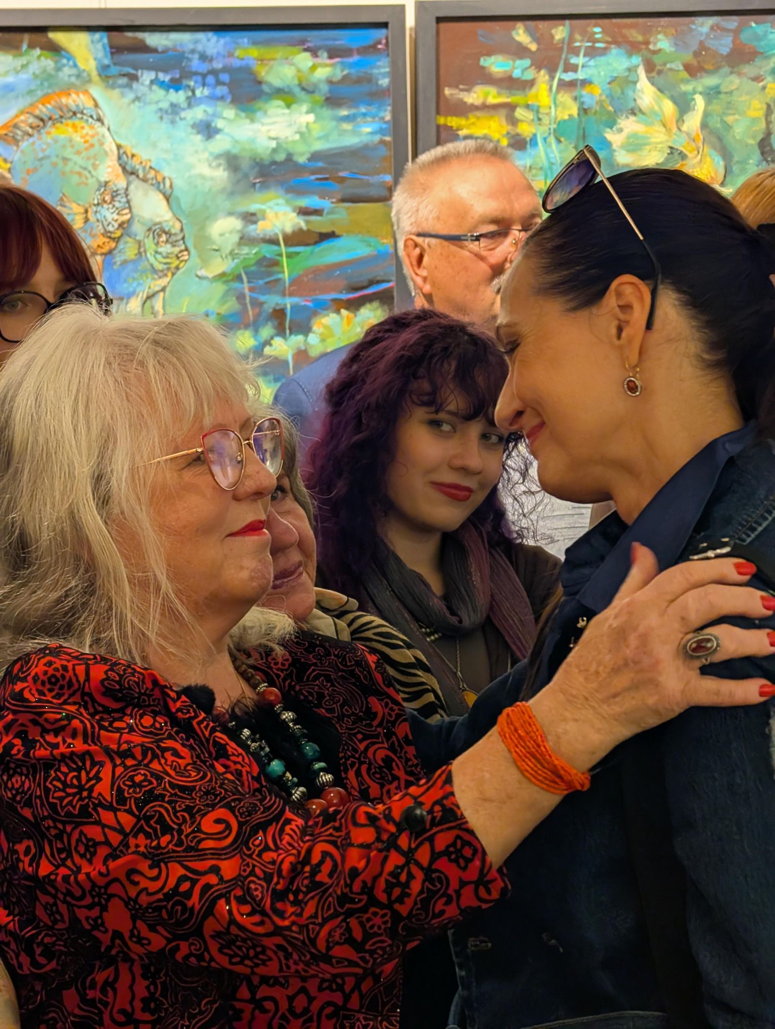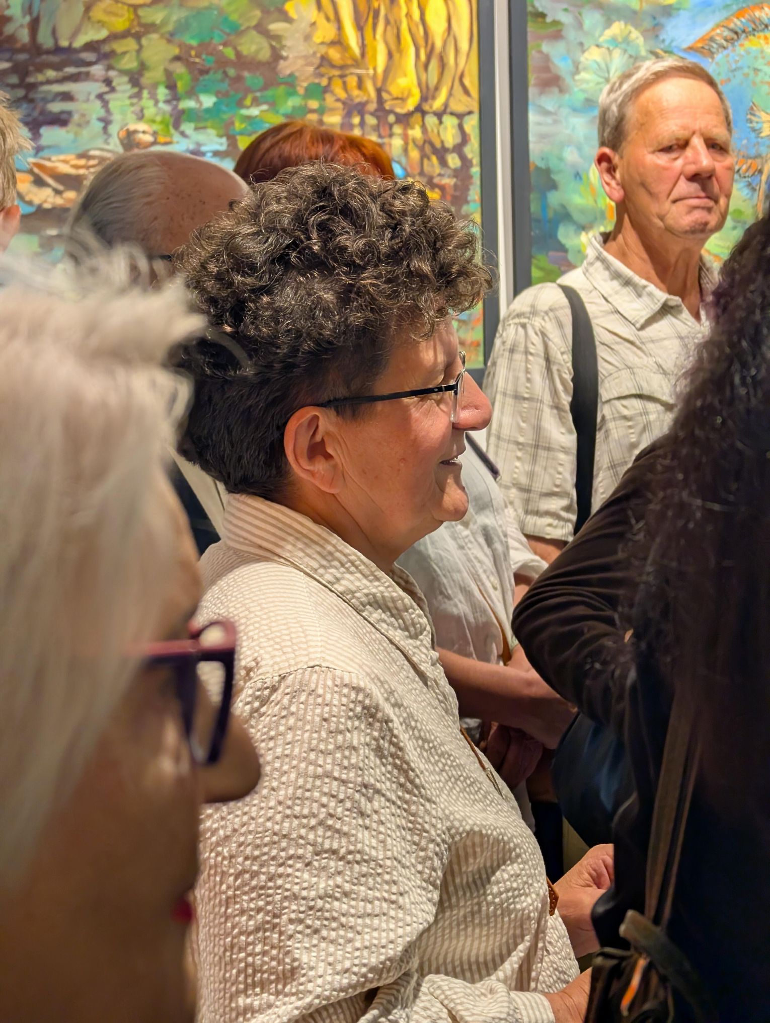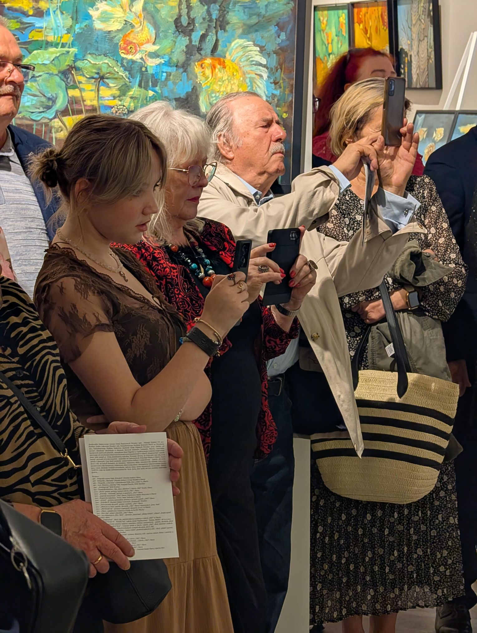 Pani Bożena mówiła, że maluje cyklami, a podstawowym tematem jest upływający czas. - Czas ima się nas wszystkich, ja odczuwam to szczególnie, bo sporo lat już za mną - powiedziała. - Za tydzień kończę osiemdziesiątkę, więc się bardzo cieszę z tego, że mogę przez cały tydzień obchodzić z Wami swój jubileusz. Dziękuję Wam za obecność.