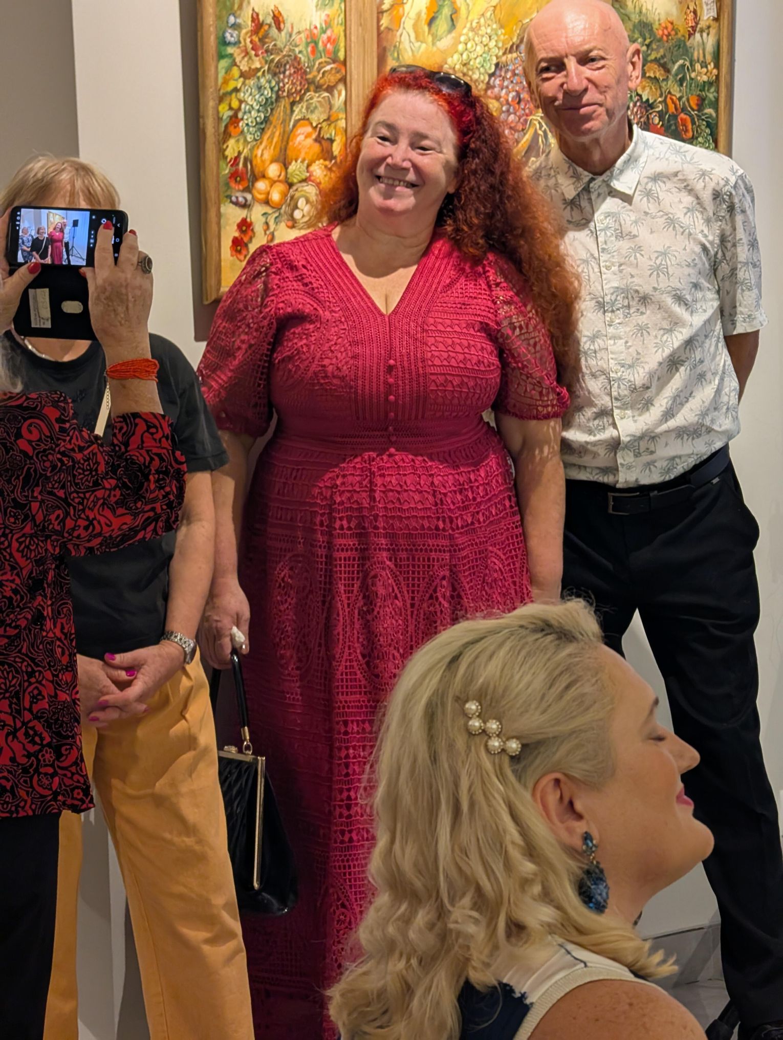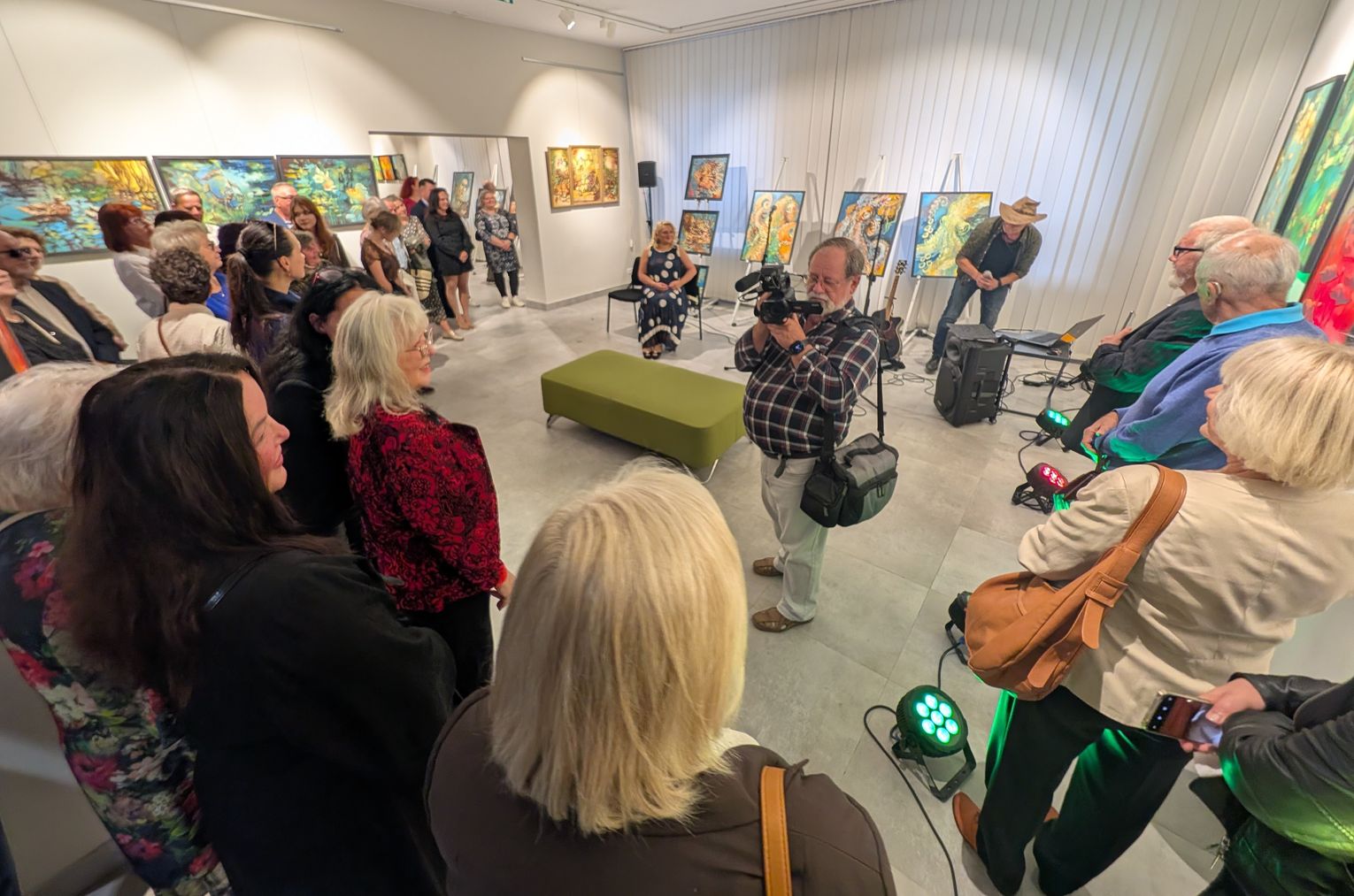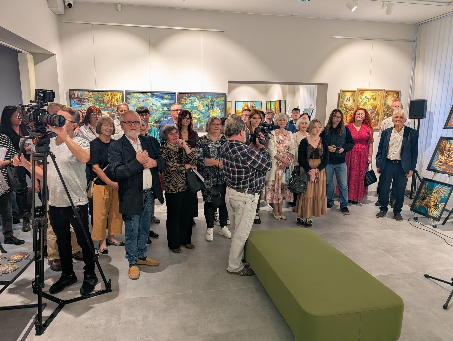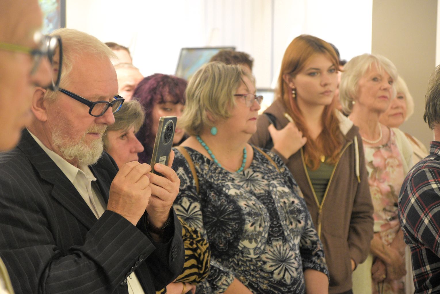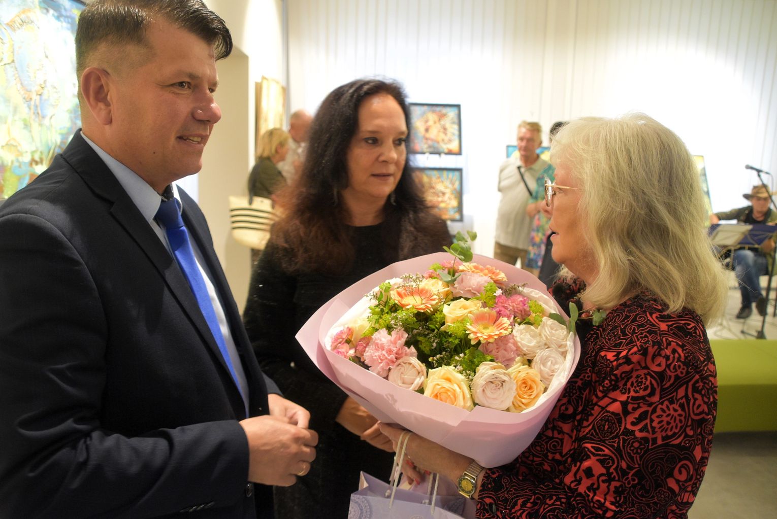 Pani Bożena mówiła, że maluje cyklami, a podstawowym tematem jest upływający czas. - Czas ima się nas wszystkich, ja odczuwam to szczególnie, bo sporo lat już za mną - powiedziała. - Za tydzień kończę osiemdziesiątkę, więc się bardzo cieszę z tego, że mogę przez cały tydzień obchodzić z Wami swój jubileusz. Dziękuję Wam za obecność.