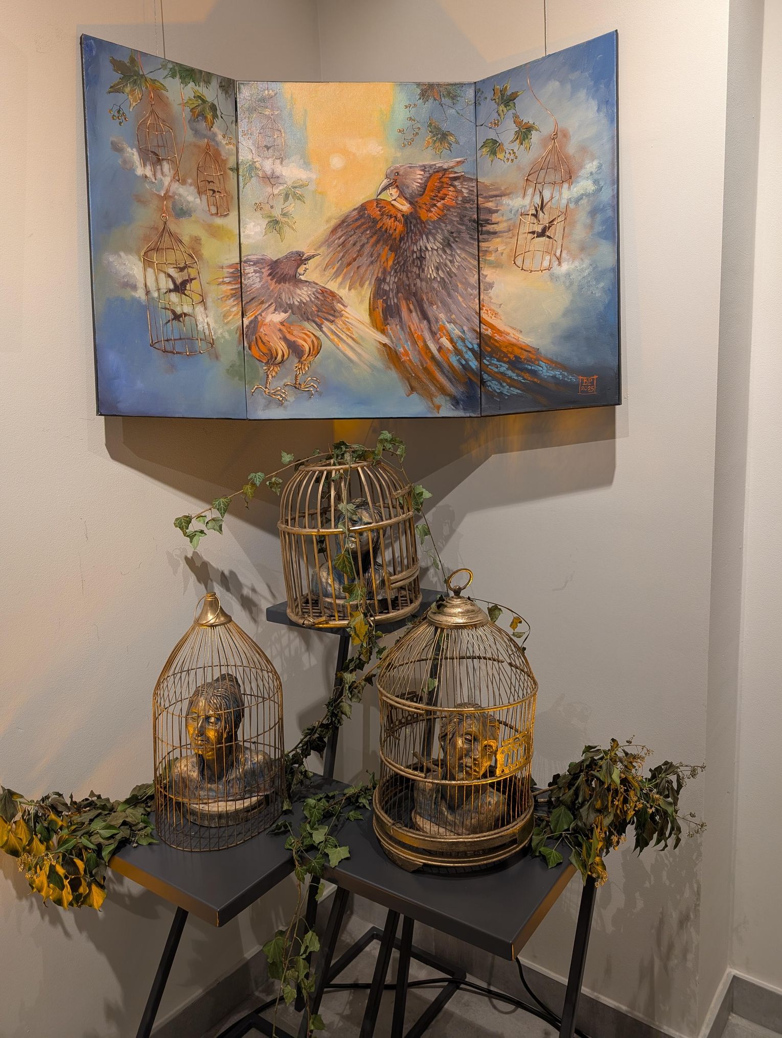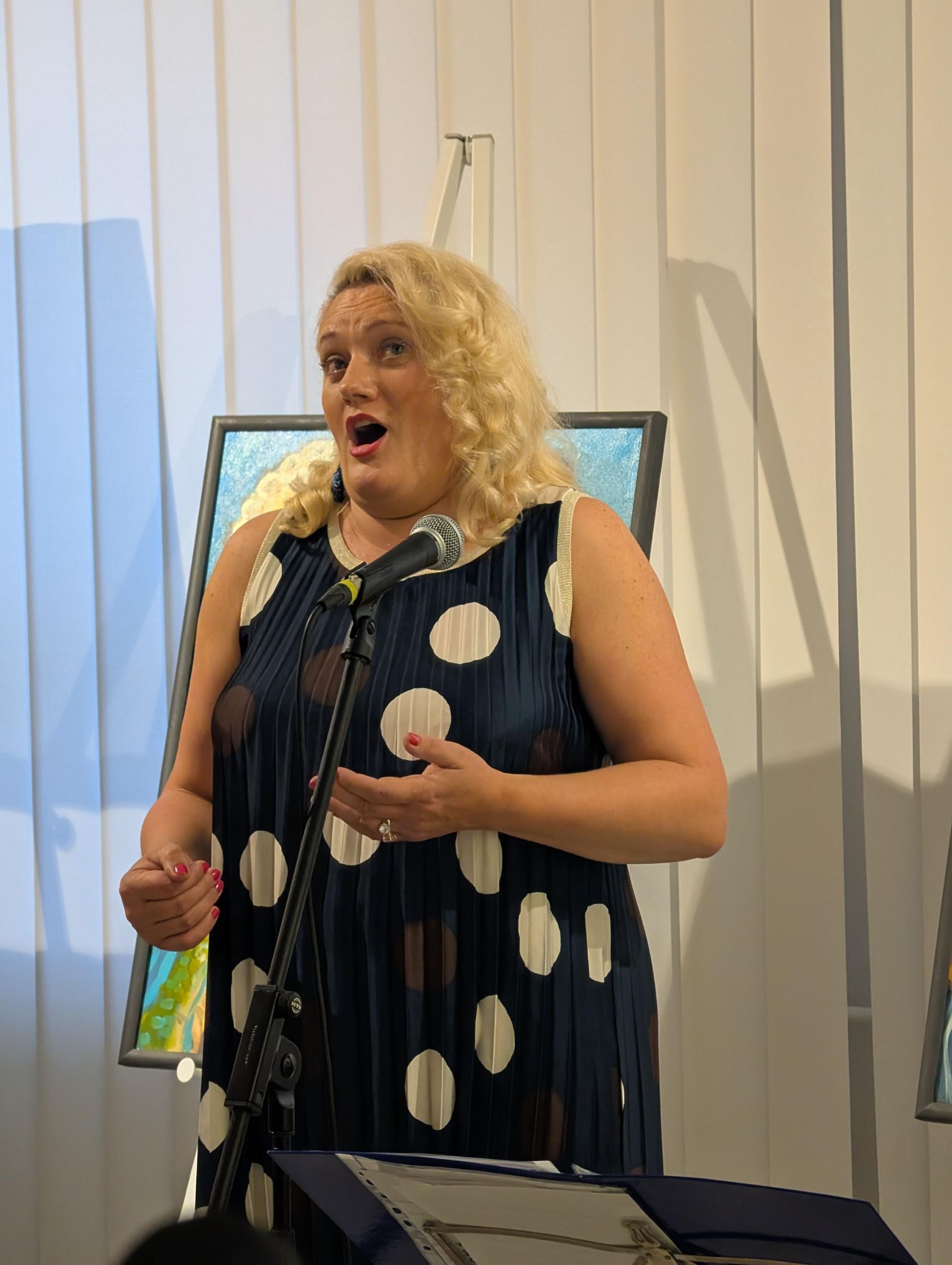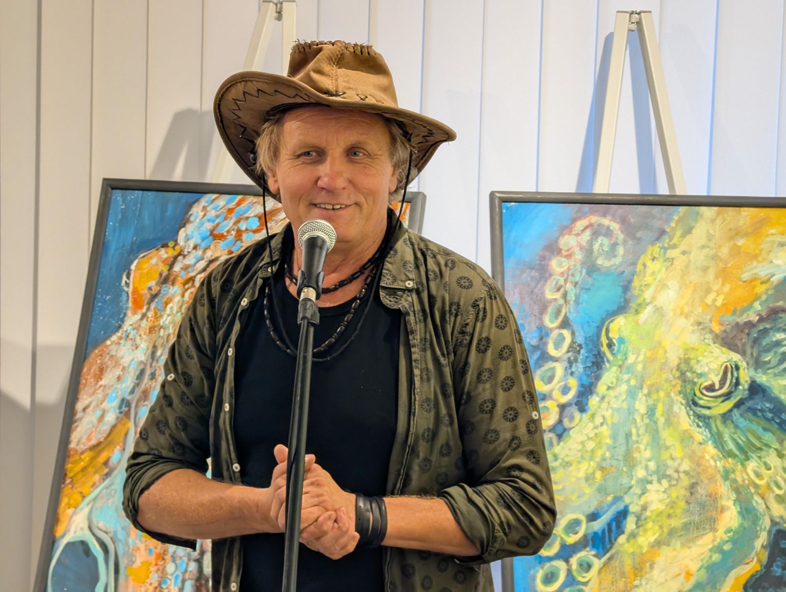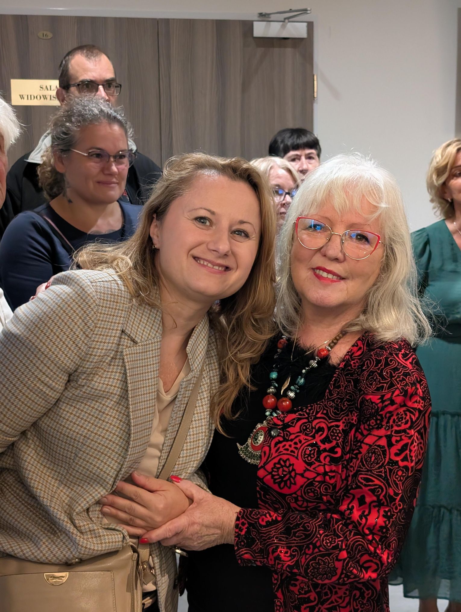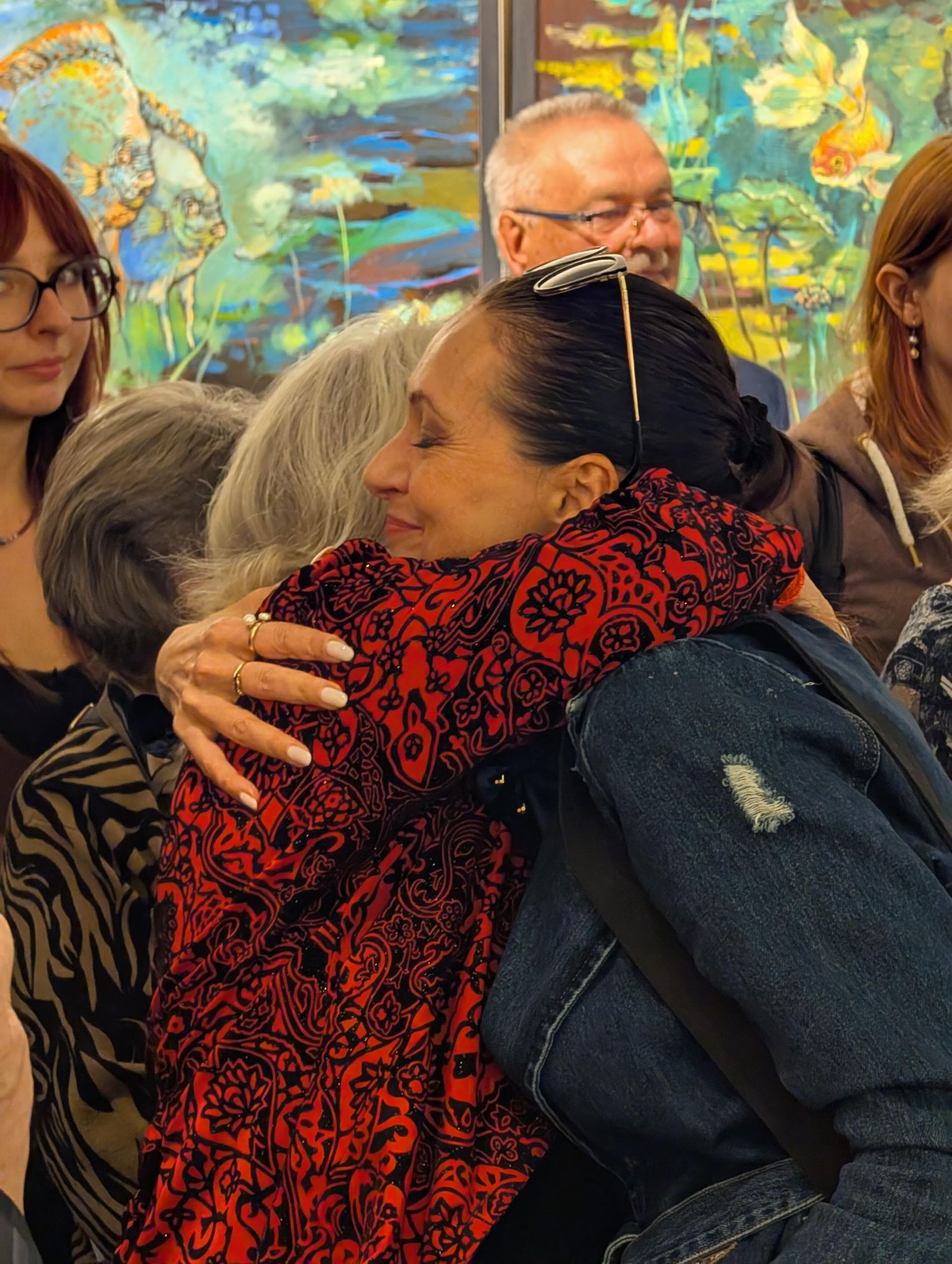 Pani Bożena mówiła, że maluje cyklami, a podstawowym tematem jest upływający czas. - Czas ima się nas wszystkich, ja odczuwam to szczególnie, bo sporo lat już za mną - powiedziała. - Za tydzień kończę osiemdziesiątkę, więc się bardzo cieszę z tego, że mogę przez cały tydzień obchodzić z Wami swój jubileusz. Dziękuję Wam za obecność.