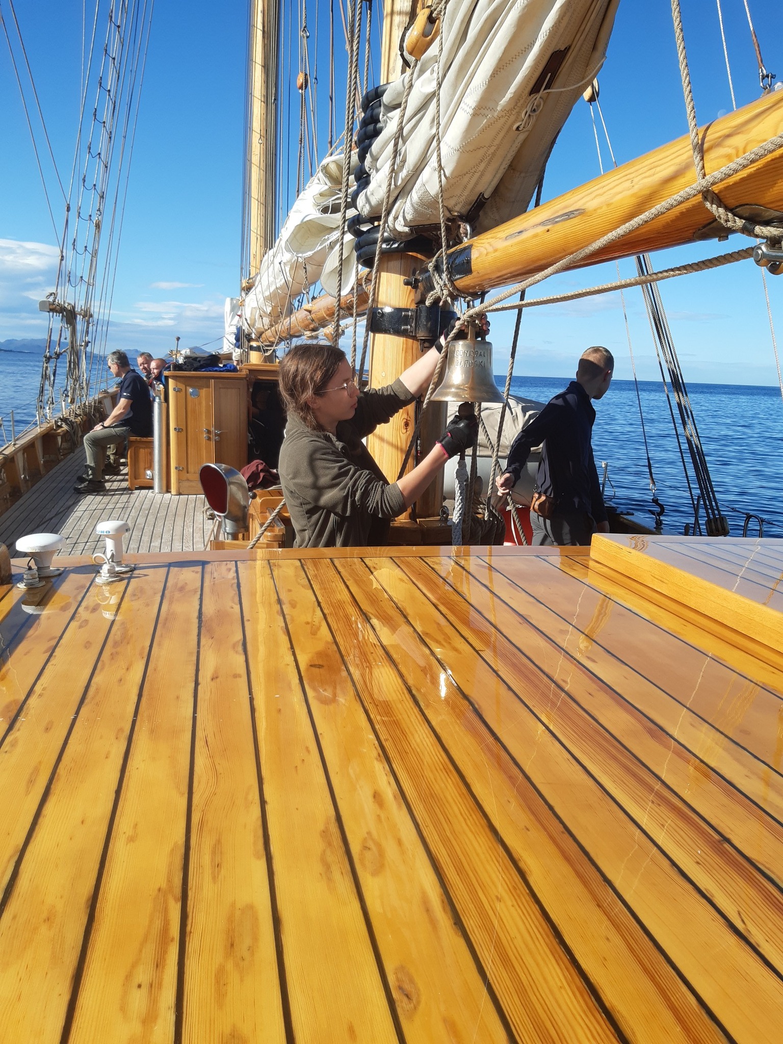 Po zaokrętowaniu, szkoleniu z bezpieczeństwa, pracy z żaglami na żaglowcu Generał Zaruski, 12 września wyszli w morze. Podzieleni na wachty, służbę mieli na wachcie kambuzowej i nawigatorskiej. Wieczorem przycumowali w Honnigsvag. Kolejny dzień, mimo że deszczowy, nie przeszkodził w zwiedzaniu Floro.