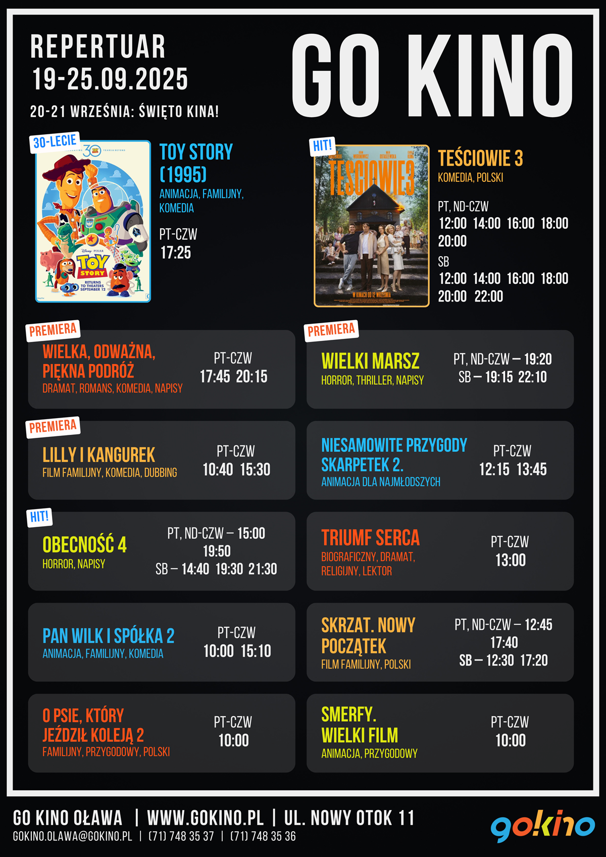 Repertuar od 19 do 25 września 2025. W tym tygodniu, 20 i 21 września, będziecie mogli celebrować Święto Kina. W tych dniach bilety będą znacznie tańsze