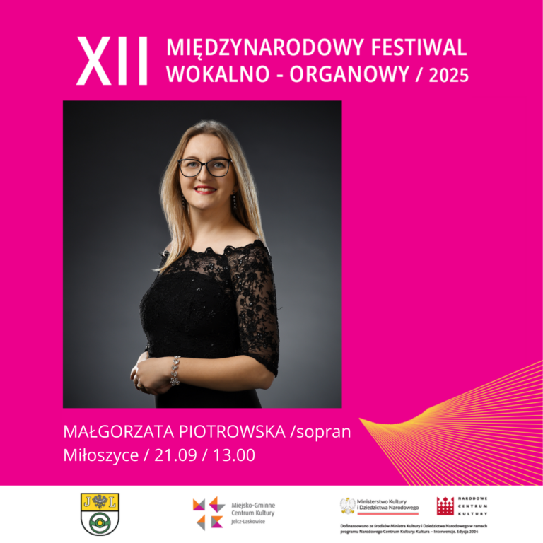 O godzinie 13.00 w kościele w Miłoszycach wystąpią: Łukasz Romanek (organy), Małgorzata Piotrowska (sopran) oraz Wojciech Musiał (trąbka). To spotkanie z muzyką klasyczną w wykonaniu artystów, którzy swoje doświadczenie zdobywali zarówno w Polsce, jak i za granicą.