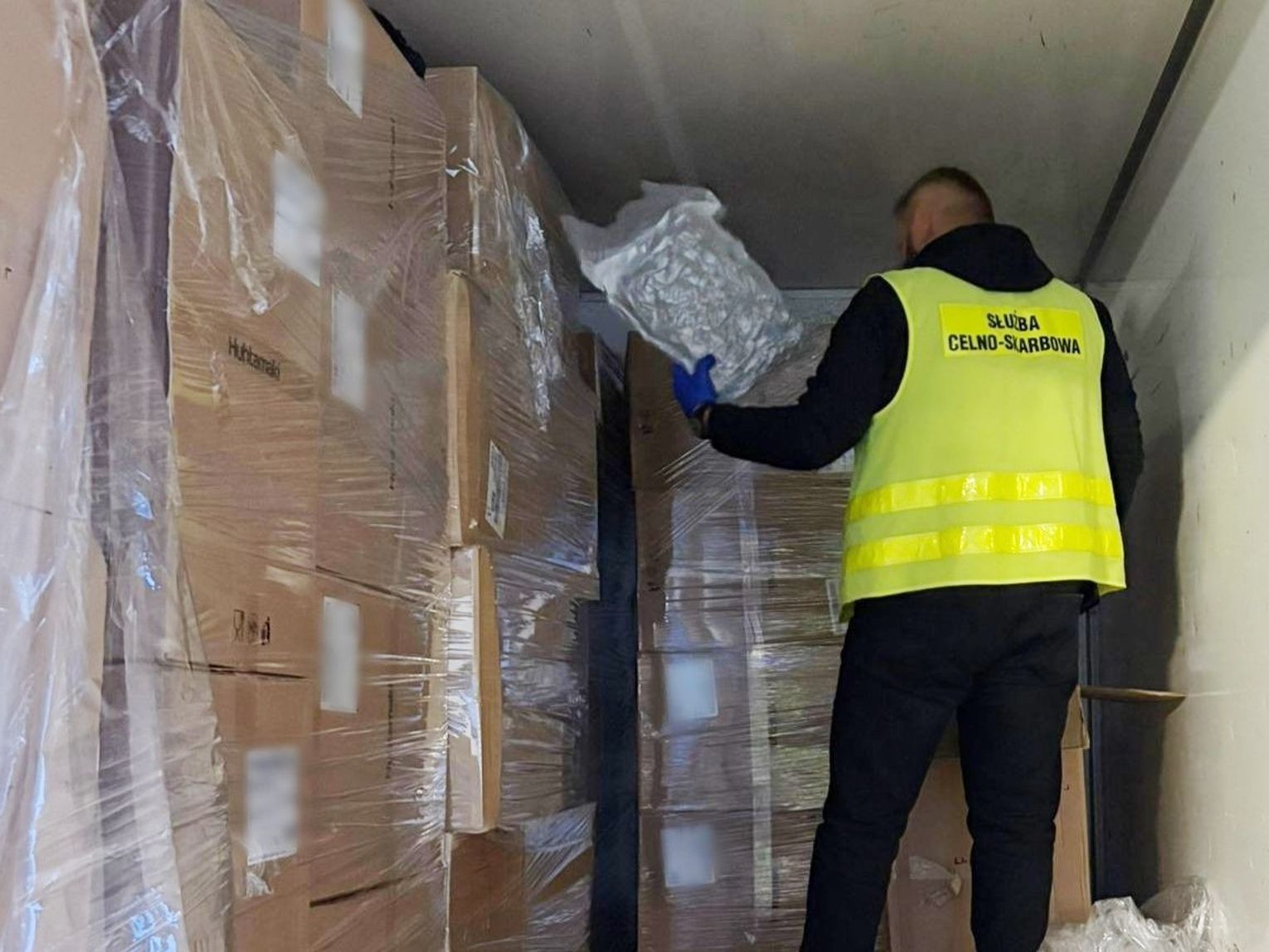 Po przeprowadzeniu kontroli pojazdu, funkcjonariusze w części ładunkowej znaleźli kartony, w których znajdował się susz roślinny koloru zielonego zapakowany próżniowo. Przeprowadzone testy potwierdziły, że jest to marihuana. Funkcjonariusze zabezpieczyli 155 kg narkotyków. Czarnorynkowa wartość zabezpieczonego narkotyku to ponad 7,5 mln zł.