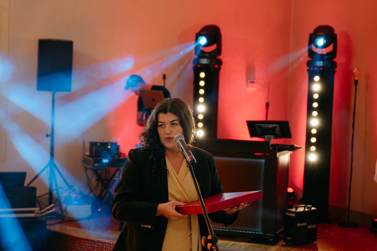 - Szanowni Państwo, w naszej historii nie sposób pominąć jednej osoby - pana Ireneusza Grochowskiego. Przez 36 lat z ogromnym oddaniem kierował naszą spółdzielnią. Był nie tylko prezesem, ale przede wszystkim gospodarzem firmy - człowiekiem, który doskonale znał codzienne życie Społem, znał ludzi i ich potrzeby. To on przeprowadził proces przekształcenia spółdzielni w spółkę, co wymagało determinacji i rozwagi. Nie wszędzie w Polsce podobne zmiany przebiegały tak pomyślnie. W imieniu całej społeczności Społem - pracowników, partnerów i klientów - pragnę dziś Panu - Tato - złożyć najgłębsze podziękowania. To także Pana dzieło świętujemy podczas tego jubileuszu.