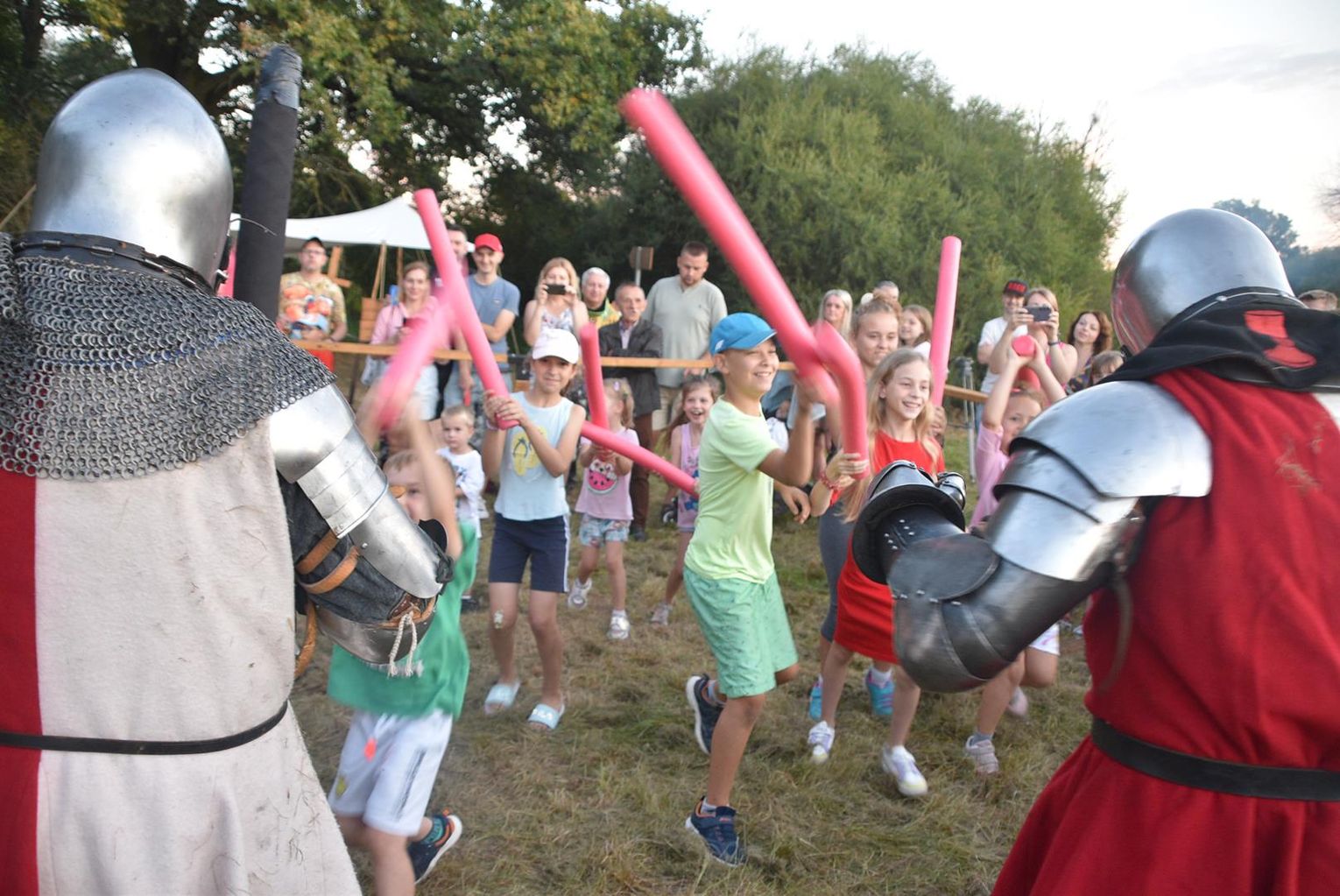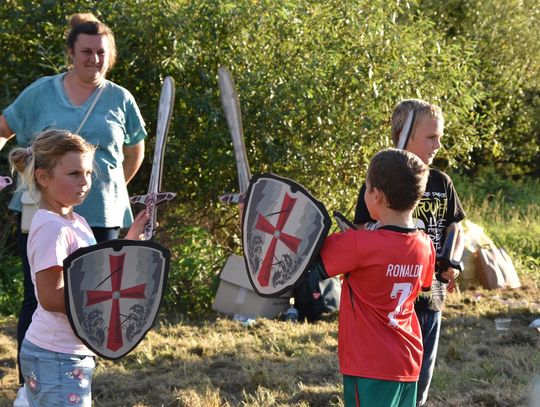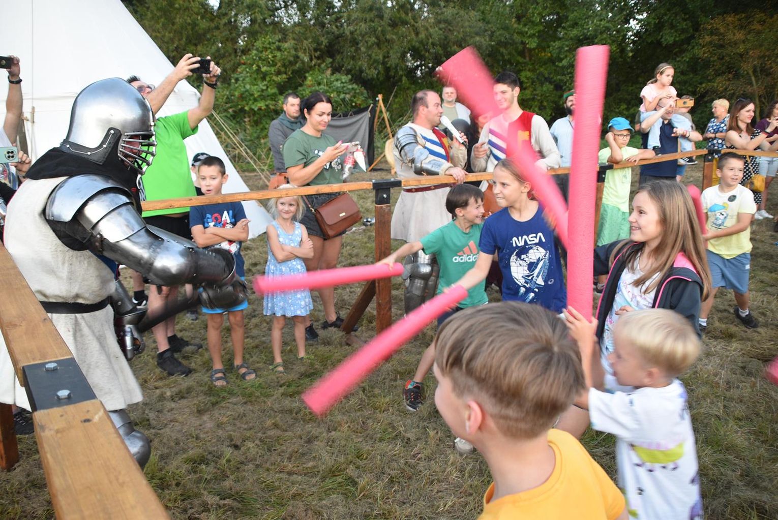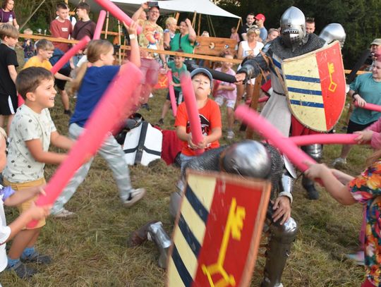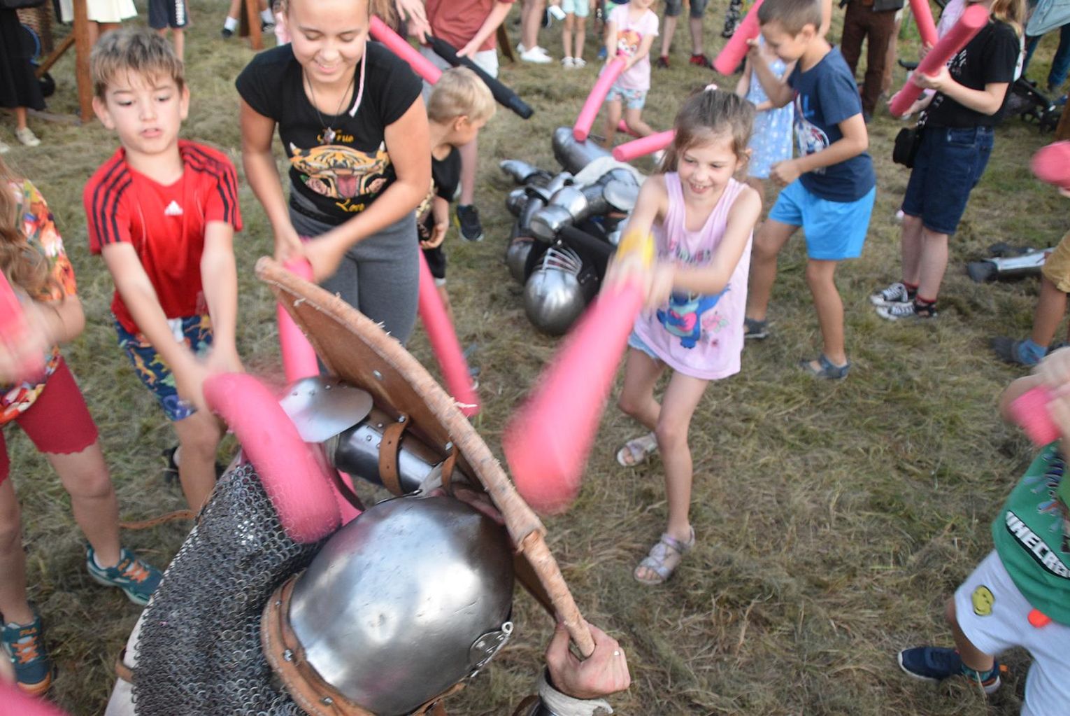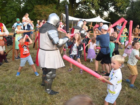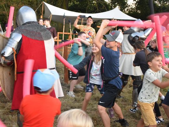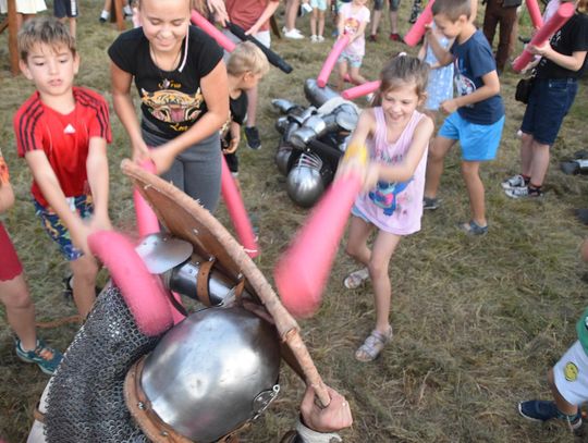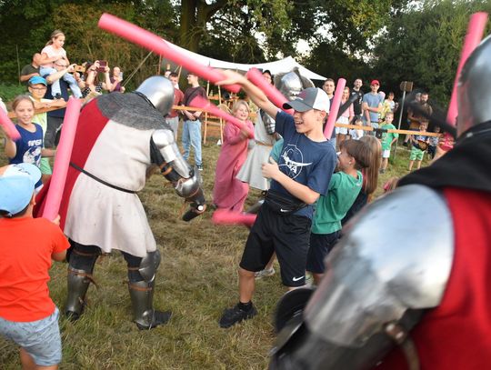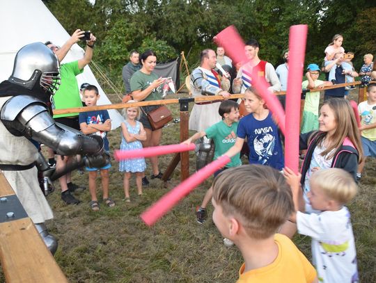 Na pikniku mieliśmy wiele zabaw tematycznych, warsztatów, gier. Można było postrzelać z łuku, wybić sobie okolicznościową monetę czy spróbować sił w rycerskich zmaganiach. O oprawę kulinarną zadbał m.in. Paweł Kuriata. Dotarł na miejsce amerykańskimi wozami bojowymi, co samo w sobie było atrakcją, ale który przede wszystkim zadbał o tradycyjną wojskową grochówkę (ponad 300 gratisowych porcji), do tego ziemniaczki z parnika. Pycha! Nie zabrakło profesjonalnych pokazów walk rycerskich, koncertu zespołu Dziwoludy, a także pięknego pokazu ognia.