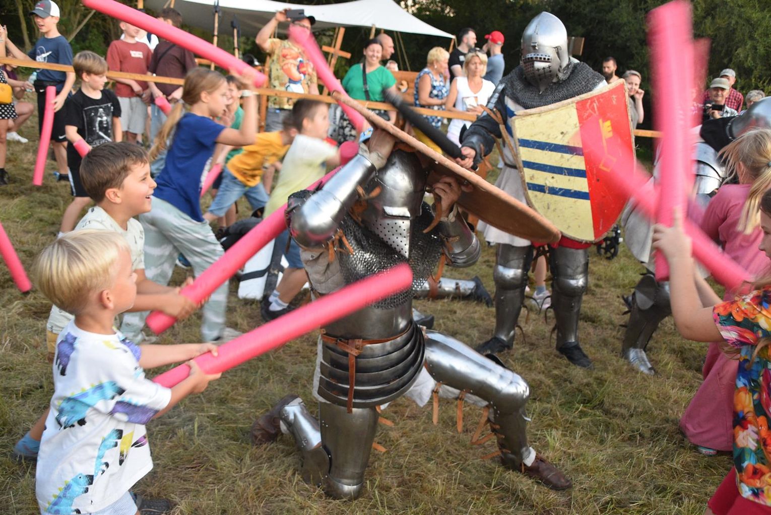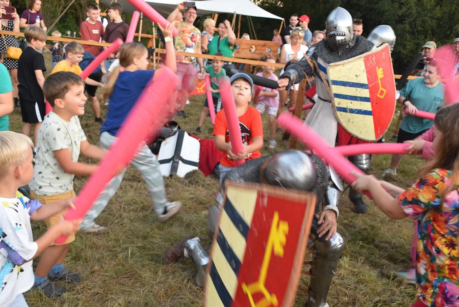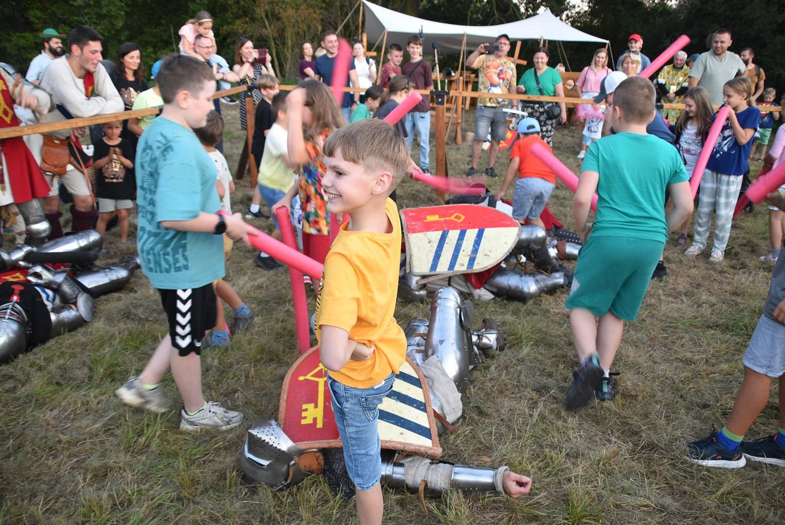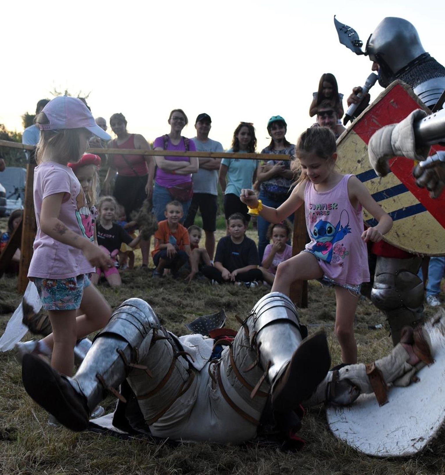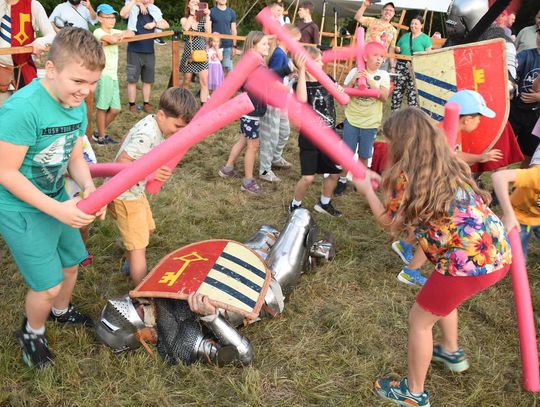 Na pikniku mieliśmy wiele zabaw tematycznych, warsztatów, gier. Można było postrzelać z łuku, wybić sobie okolicznościową monetę czy spróbować sił w rycerskich zmaganiach. O oprawę kulinarną zadbał m.in. Paweł Kuriata. Dotarł na miejsce amerykańskimi wozami bojowymi, co samo w sobie było atrakcją, ale który przede wszystkim zadbał o tradycyjną wojskową grochówkę (ponad 300 gratisowych porcji), do tego ziemniaczki z parnika. Pycha! Nie zabrakło profesjonalnych pokazów walk rycerskich, koncertu zespołu Dziwoludy, a także pięknego pokazu ognia.