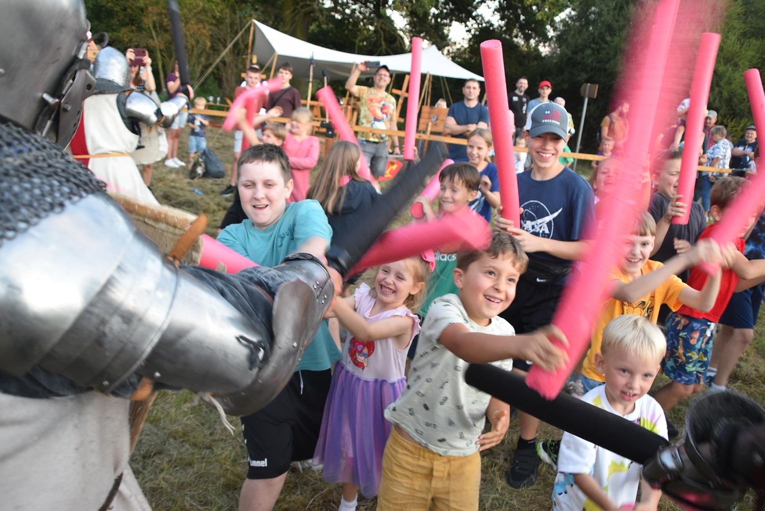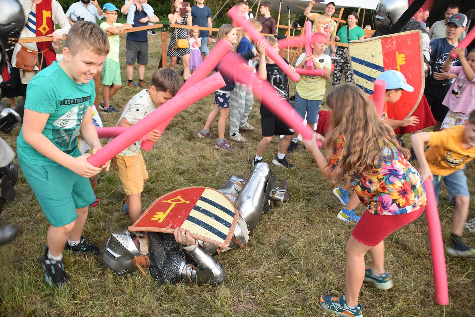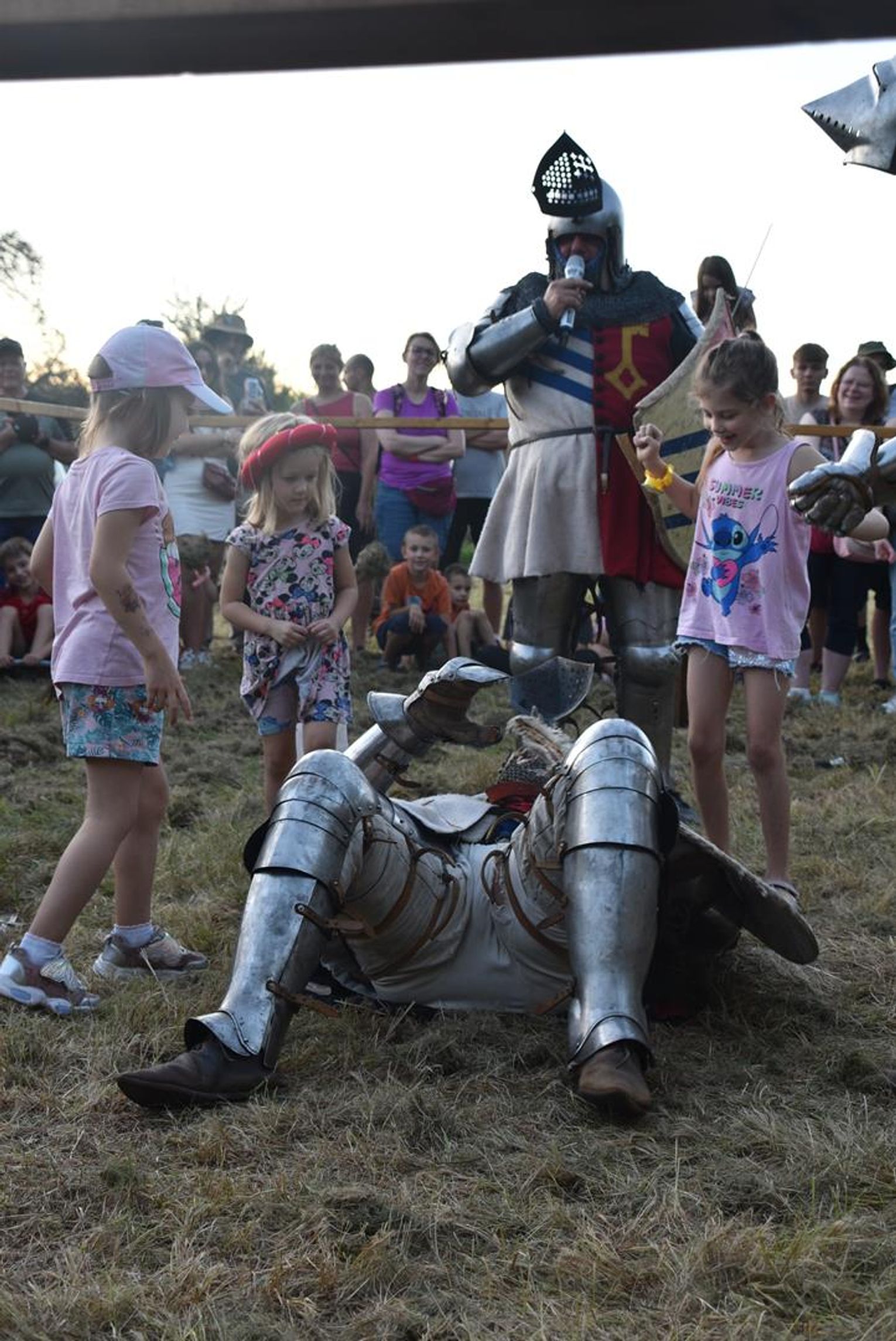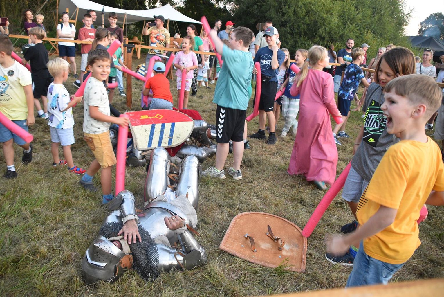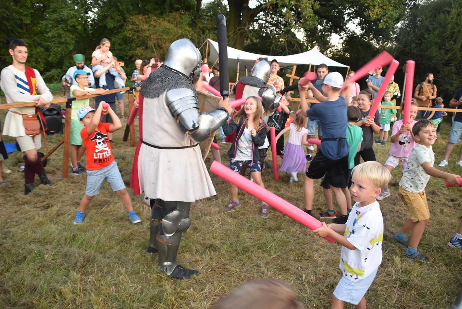 Na pikniku mieliśmy wiele zabaw tematycznych, warsztatów, gier. Można było postrzelać z łuku, wybić sobie okolicznościową monetę czy spróbować sił w rycerskich zmaganiach. O oprawę kulinarną zadbał m.in. Paweł Kuriata. Dotarł na miejsce amerykańskimi wozami bojowymi, co samo w sobie było atrakcją, ale który przede wszystkim zadbał o tradycyjną wojskową grochówkę (ponad 300 gratisowych porcji), do tego ziemniaczki z parnika. Pycha! Nie zabrakło profesjonalnych pokazów walk rycerskich, koncertu zespołu Dziwoludy, a także pięknego pokazu ognia.