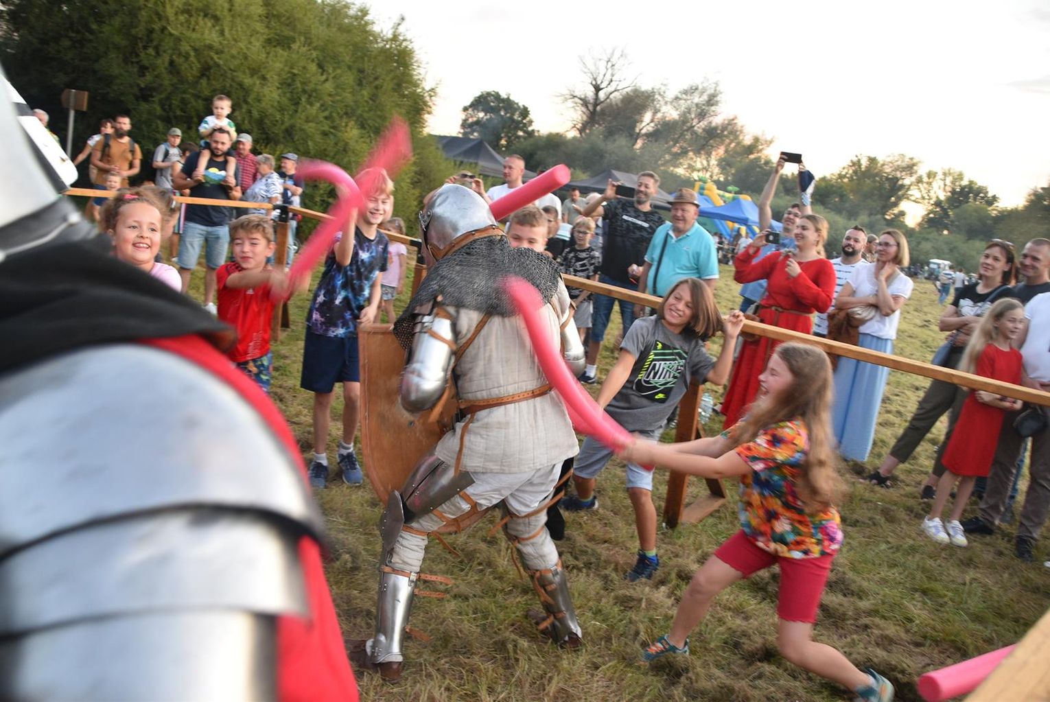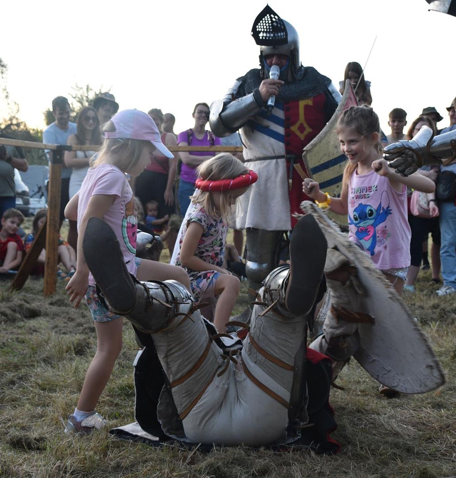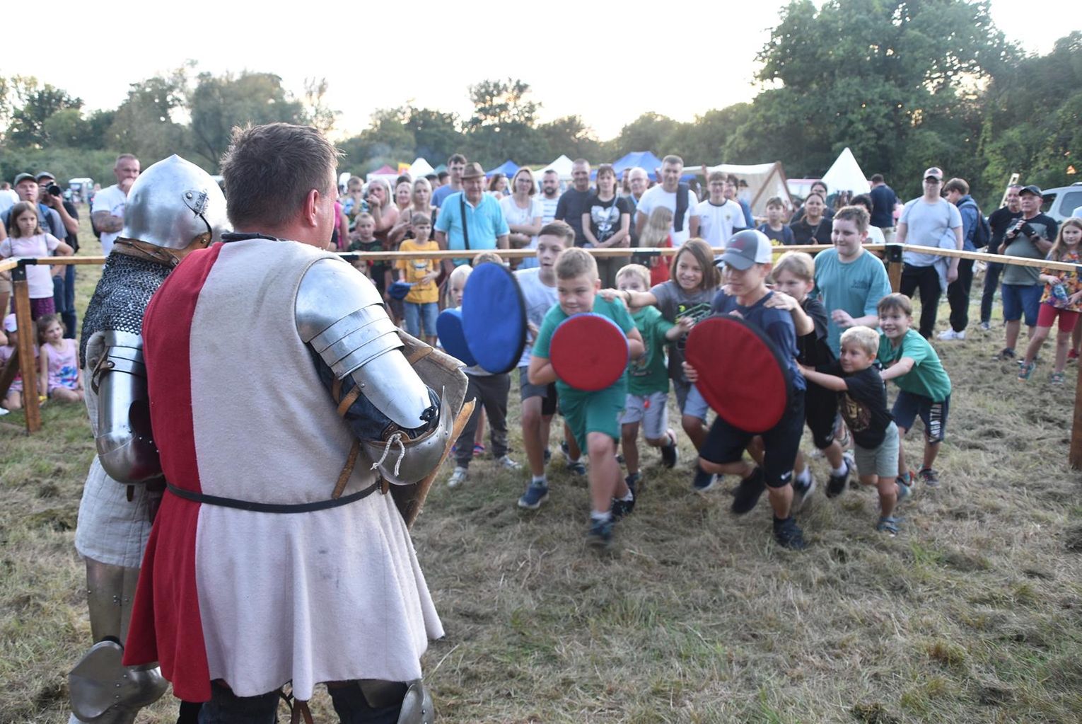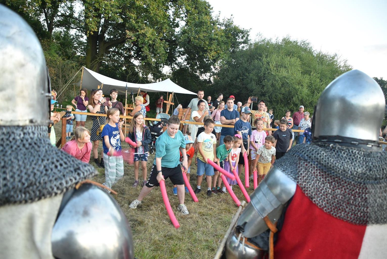 Na pikniku mieliśmy wiele zabaw tematycznych, warsztatów, gier. Można było postrzelać z łuku, wybić sobie okolicznościową monetę czy spróbować sił w rycerskich zmaganiach. O oprawę kulinarną zadbał m.in. Paweł Kuriata. Dotarł na miejsce amerykańskimi wozami bojowymi, co samo w sobie było atrakcją, ale który przede wszystkim zadbał o tradycyjną wojskową grochówkę (ponad 300 gratisowych porcji), do tego ziemniaczki z parnika. Pycha! Nie zabrakło profesjonalnych pokazów walk rycerskich, koncertu zespołu Dziwoludy, a także pięknego pokazu ognia.