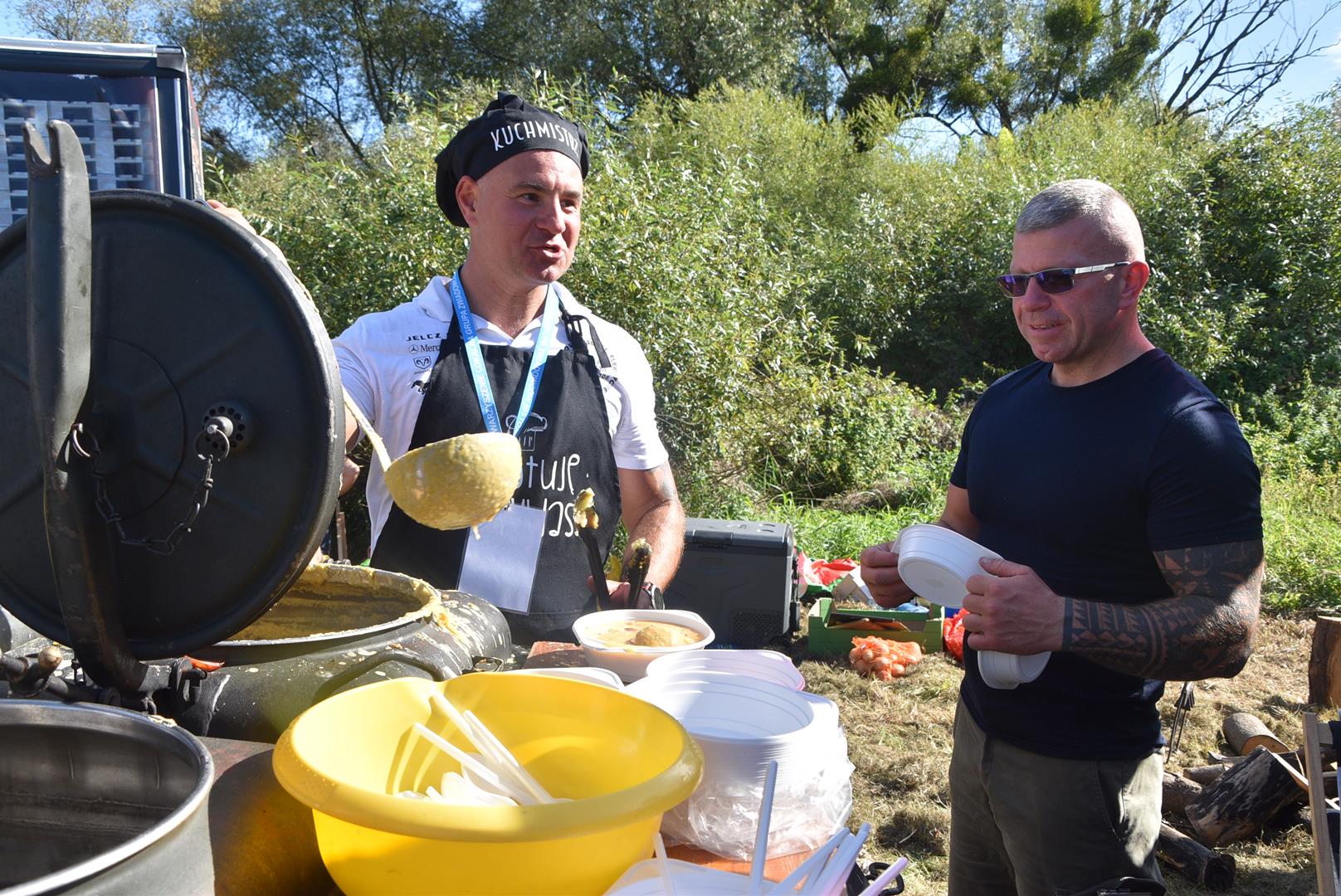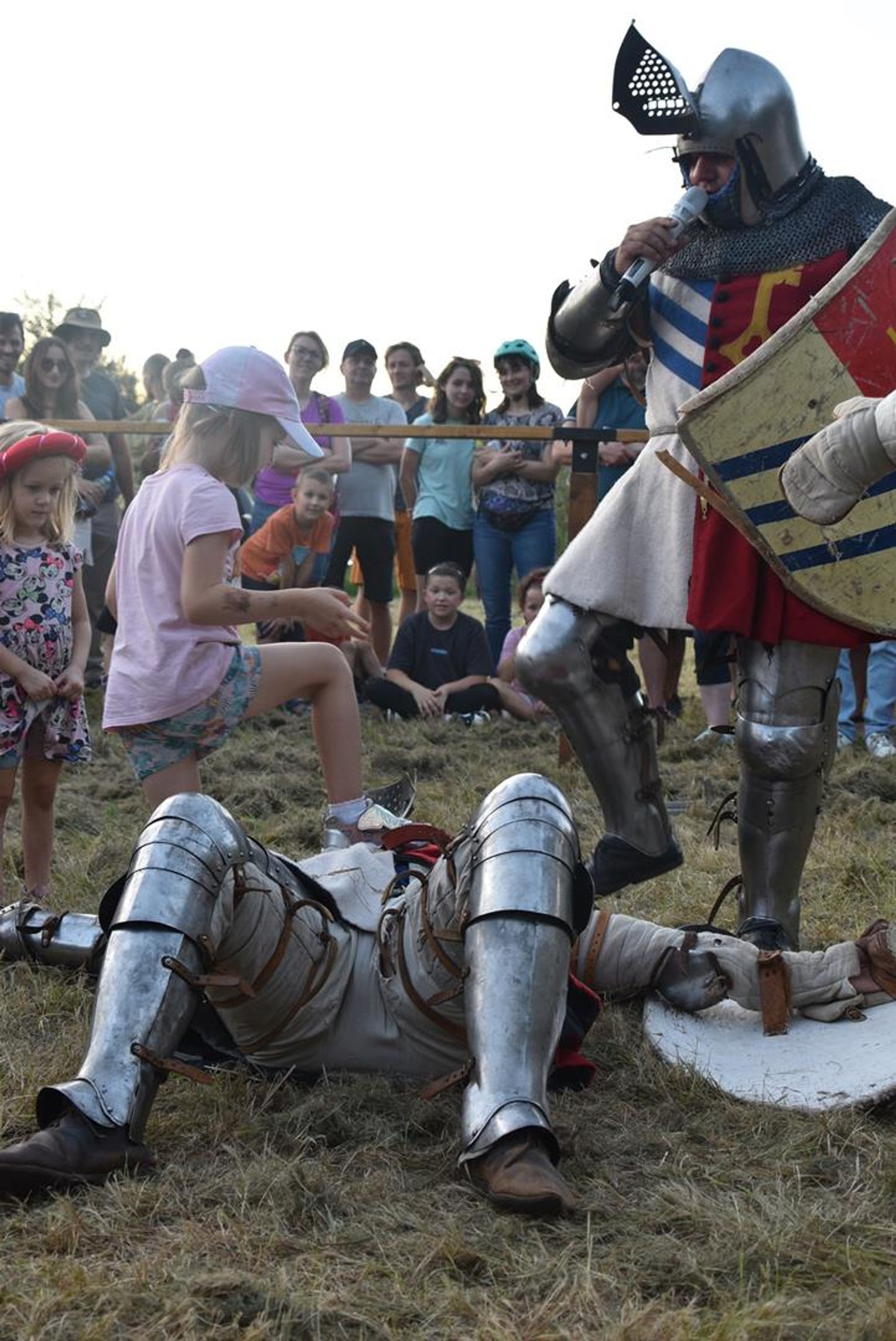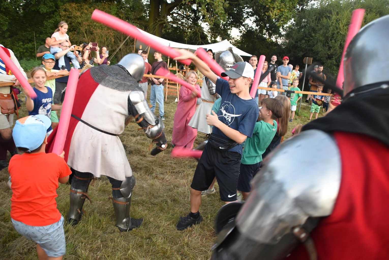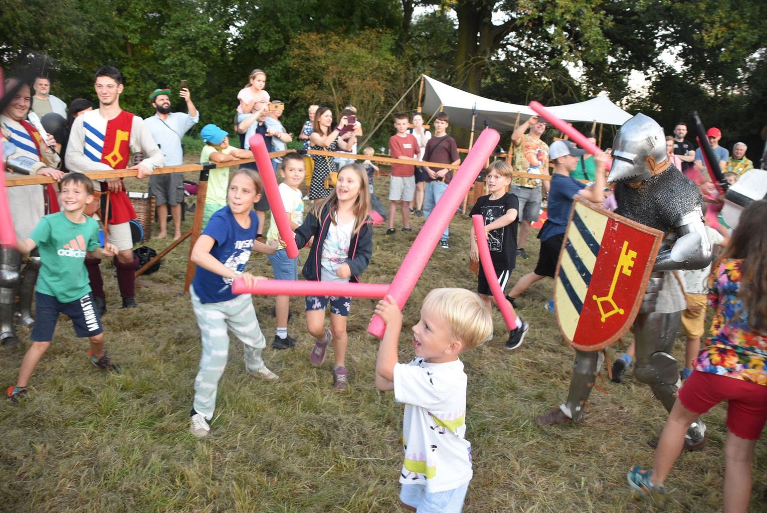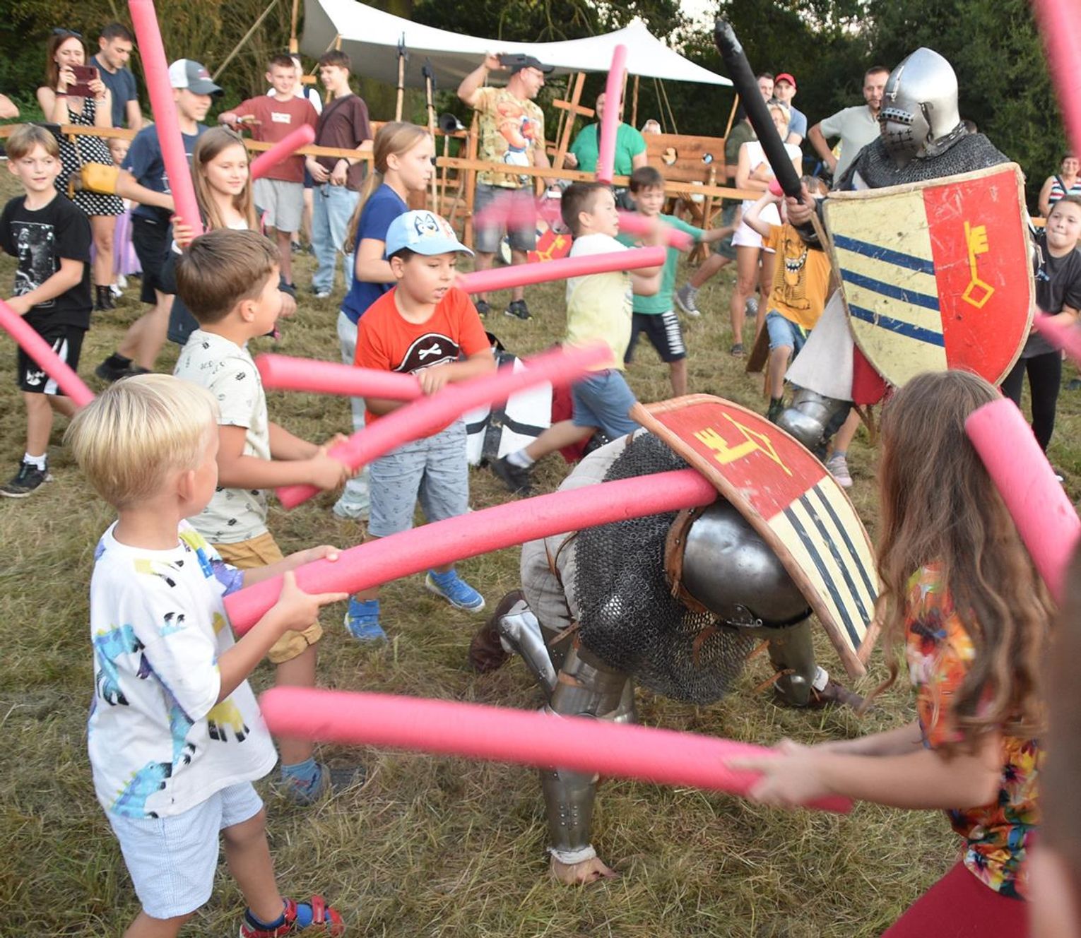 Na pikniku mieliśmy wiele zabaw tematycznych, warsztatów, gier. Można było postrzelać z łuku, wybić sobie okolicznościową monetę czy spróbować sił w rycerskich zmaganiach. O oprawę kulinarną zadbał m.in. Paweł Kuriata. Dotarł na miejsce amerykańskimi wozami bojowymi, co samo w sobie było atrakcją, ale który przede wszystkim zadbał o tradycyjną wojskową grochówkę (ponad 300 gratisowych porcji), do tego ziemniaczki z parnika. Pycha! Nie zabrakło profesjonalnych pokazów walk rycerskich, koncertu zespołu Dziwoludy, a także pięknego pokazu ognia.