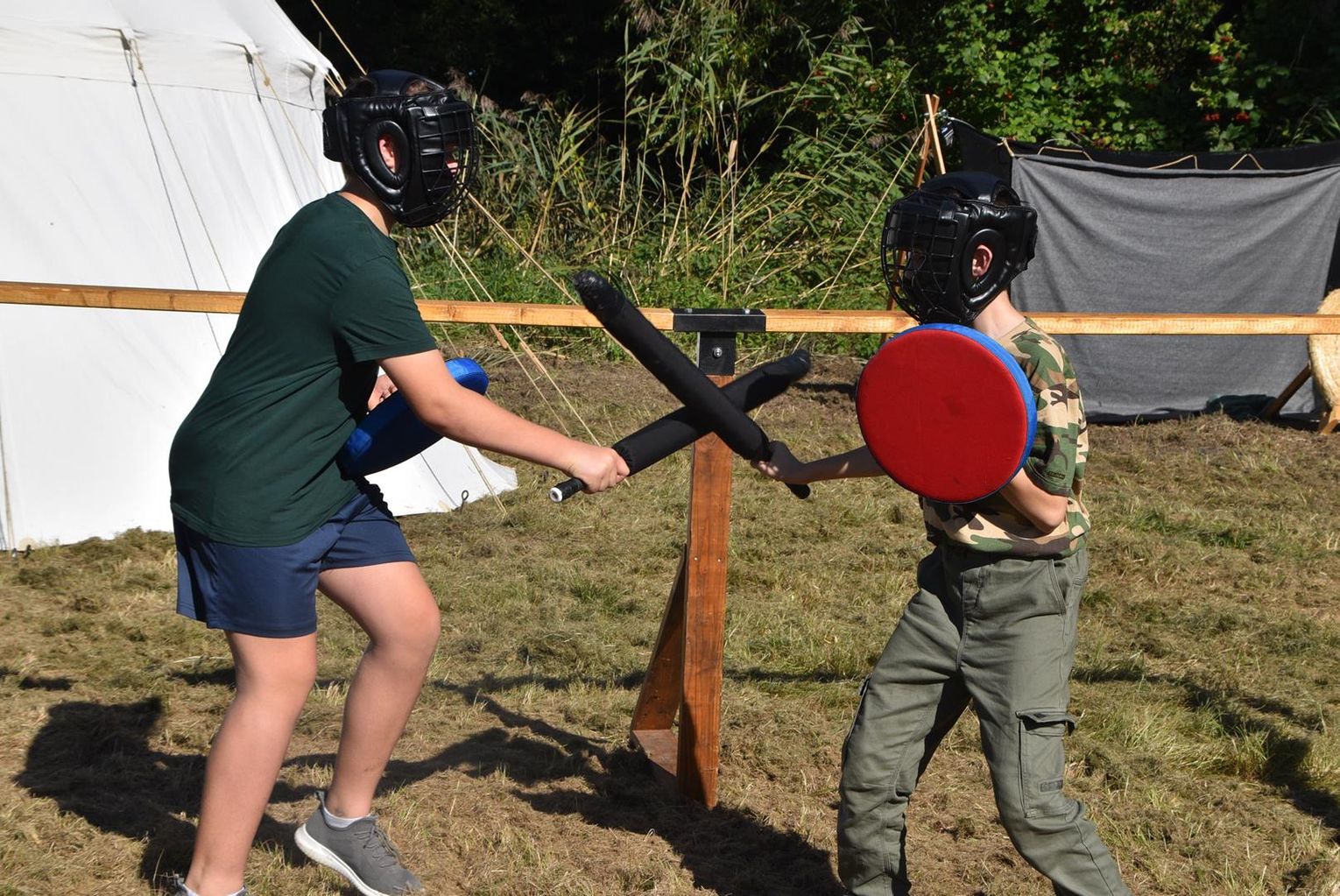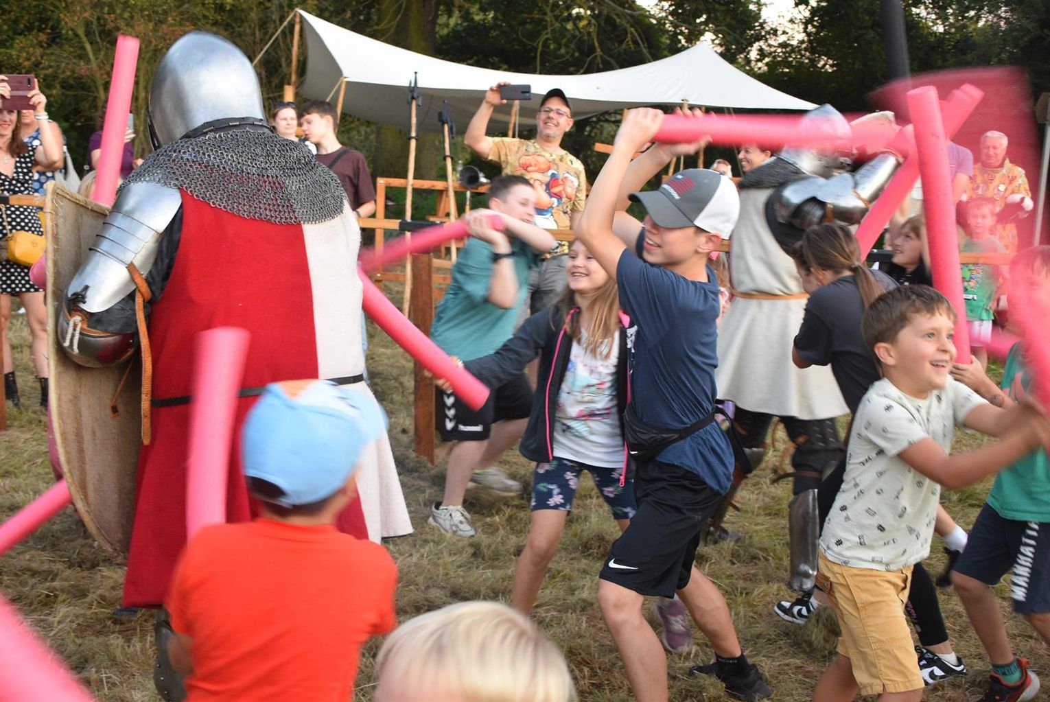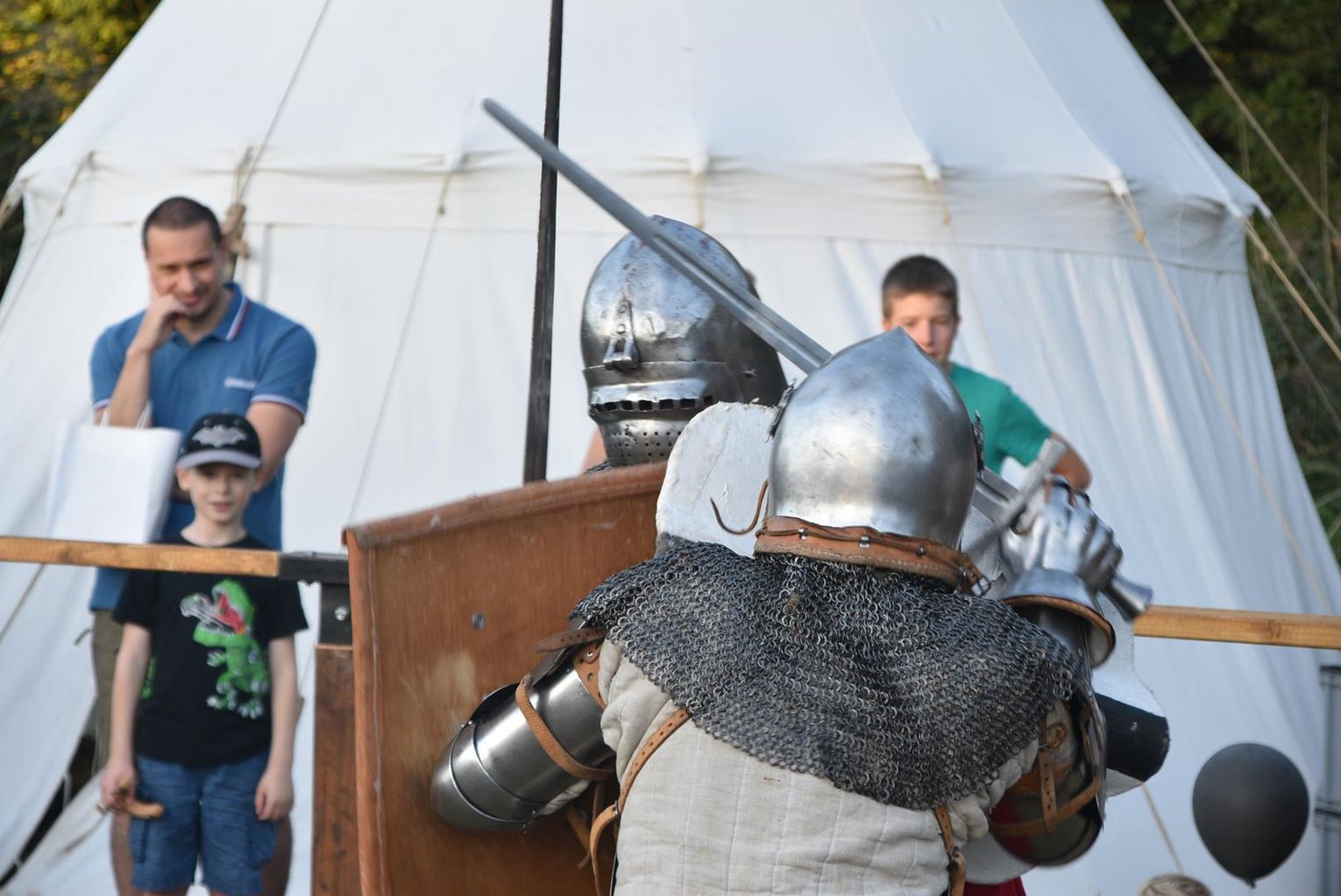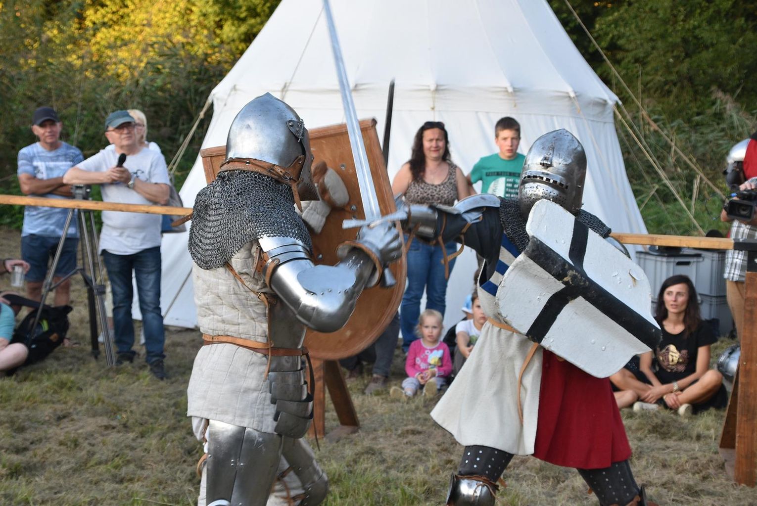 Na pikniku mieliśmy wiele zabaw tematycznych, warsztatów, gier. Można było postrzelać z łuku, wybić sobie okolicznościową monetę czy spróbować sił w rycerskich zmaganiach. O oprawę kulinarną zadbał m.in. Paweł Kuriata. Dotarł na miejsce amerykańskimi wozami bojowymi, co samo w sobie było atrakcją, ale który przede wszystkim zadbał o tradycyjną wojskową grochówkę (ponad 300 gratisowych porcji), do tego ziemniaczki z parnika. Pycha! Nie zabrakło profesjonalnych pokazów walk rycerskich, koncertu zespołu Dziwoludy, a także pięknego pokazu ognia.