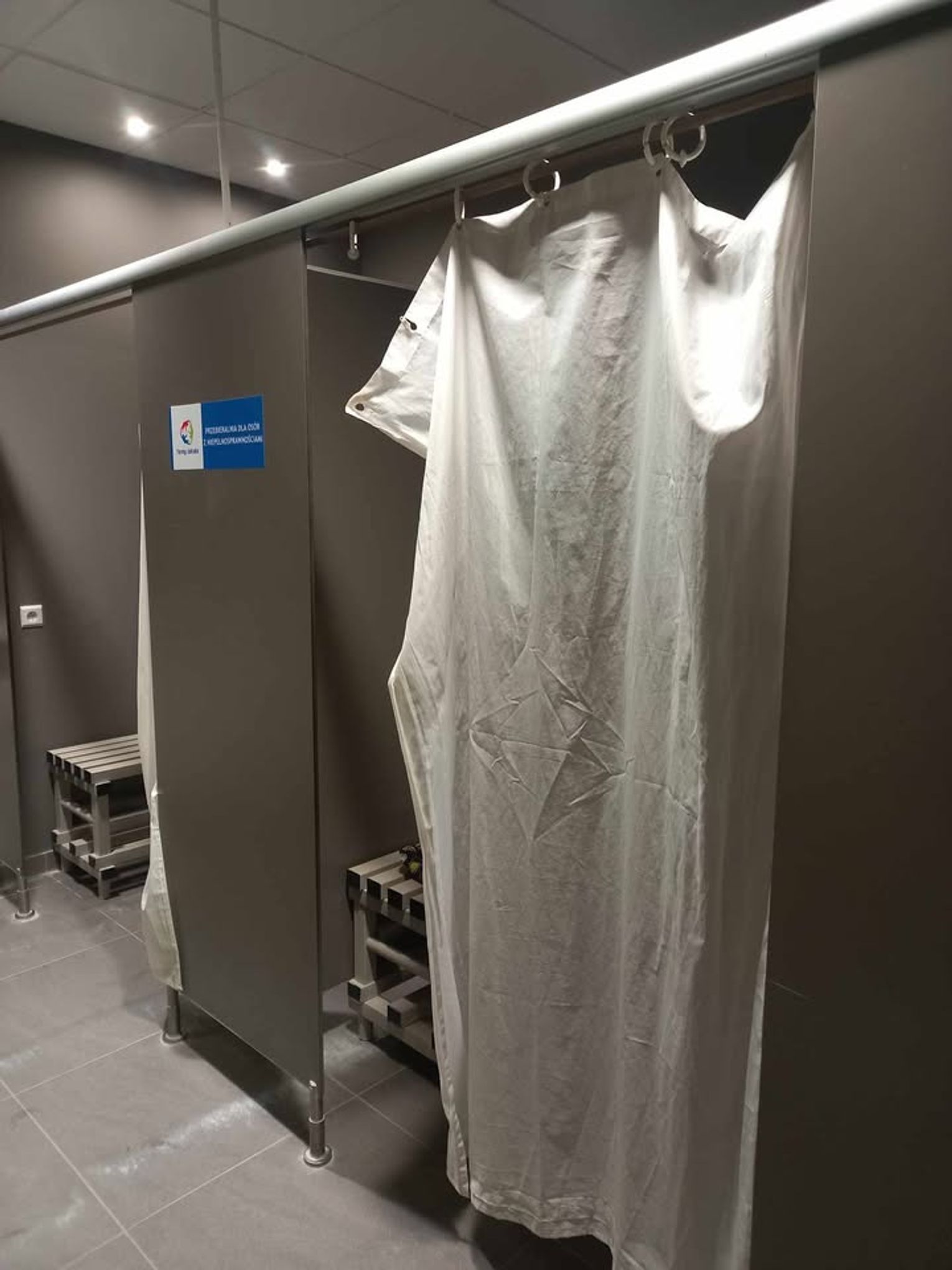 - Jakiś czas temu zgłaszałam już uwagi dotyczące braków w tej przebieralni – oberwane zasłonki nie dawały poczucia intymności i bezpieczeństwa. Ten problem został rozwiązany poprzez zamontowanie drzwi zamykanych. Niestety wciąż pozostaje inny, poważniejszy: przebieralnia jest często traktowana przez wielu użytkowników jako przechodnia do wyjścia, wygodna przestrzeń do przebrania się lub miejsce, w którym „akurat wolna jest suszarka”.