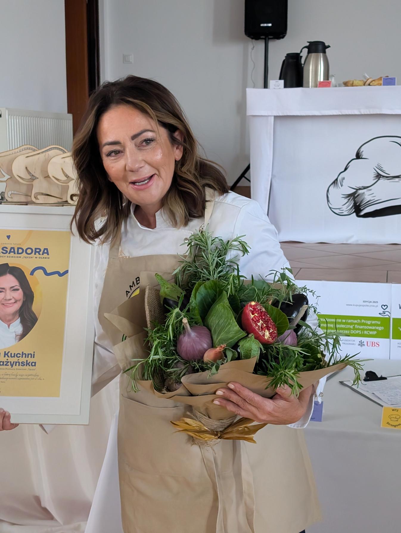 Anna Strażyńska oprócz aktu nadania otrzymała specjalny fartuch ambasadora, a także wyjątkowy bukiet z warzyw, z rąk Jarosława Marciniaka, wiceprezesa stowarzyszenia "Tęcza".